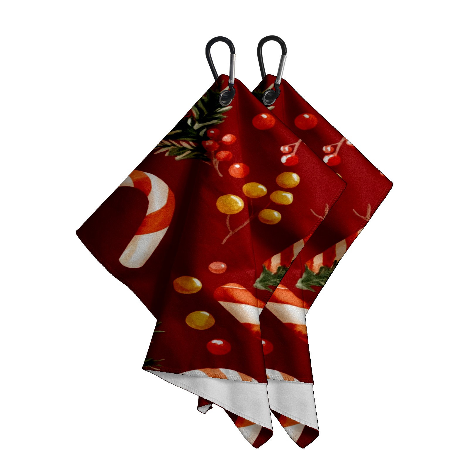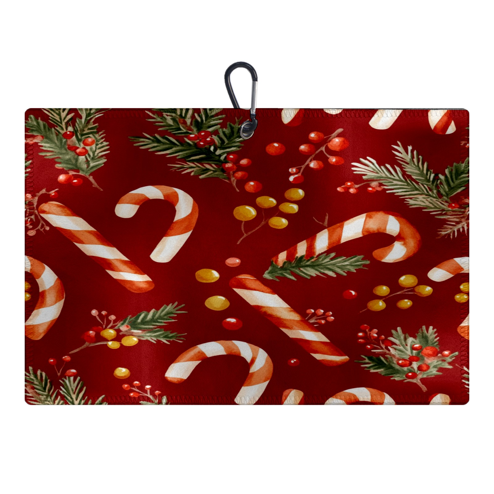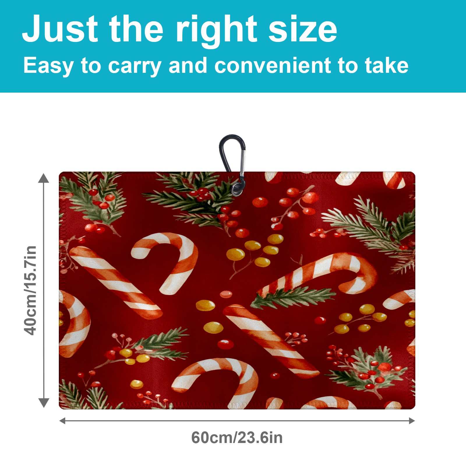 Golf Towel Microfiber Pocket Towels with Buckle Clip, Quick Dry Golf Ball Cleaner Accessories for Course Exercise TowelChristmas Candy Cane Pattern