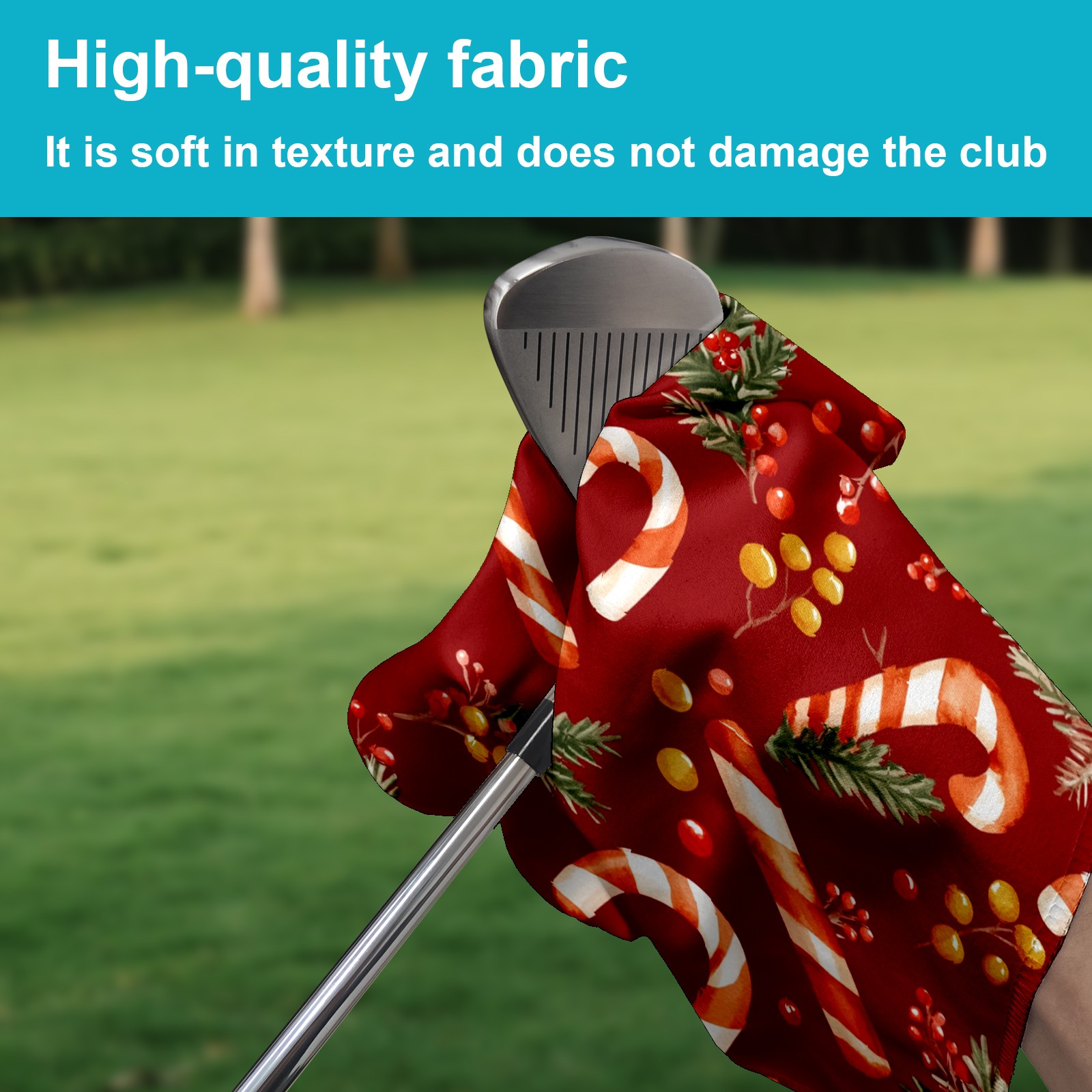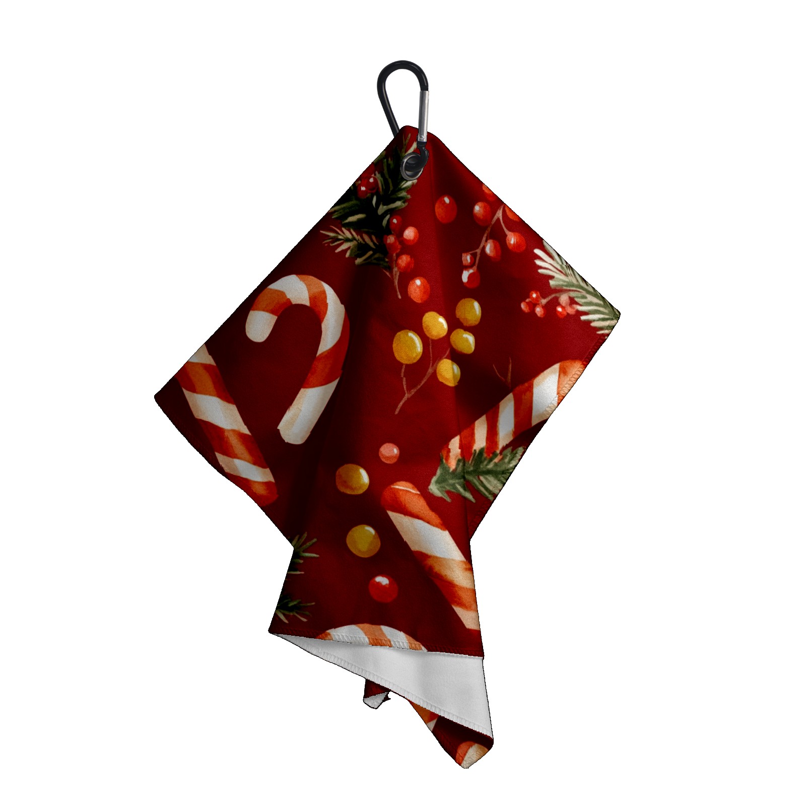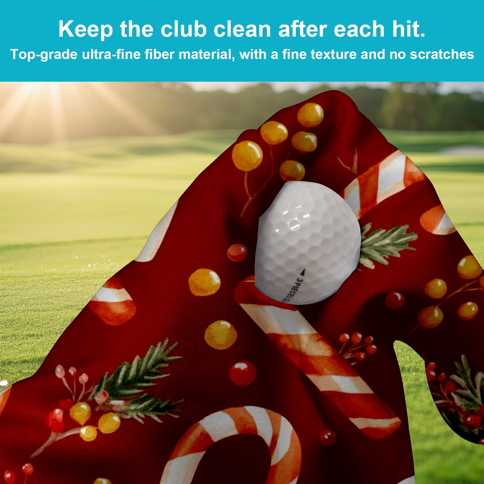 Golf Towel Microfiber Pocket Towels with Buckle Clip, Quick Dry Golf Ball Cleaner Accessories for Course Exercise TowelChristmas Candy Cane Pattern
