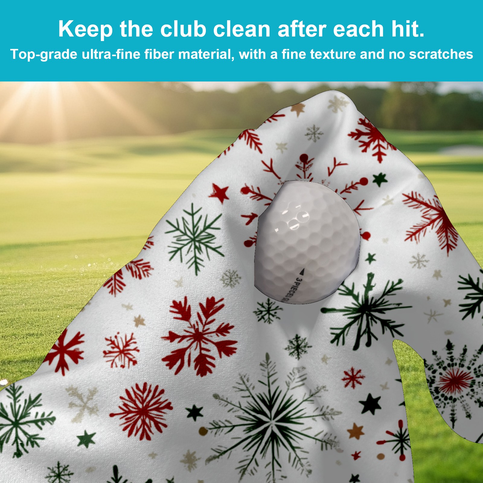 Golf Towel Microfiber Pocket Towels with Buckle Clip, Quick Dry Golf Ball Cleaner Accessories for Course Exercise TowelSnowflake Pattern