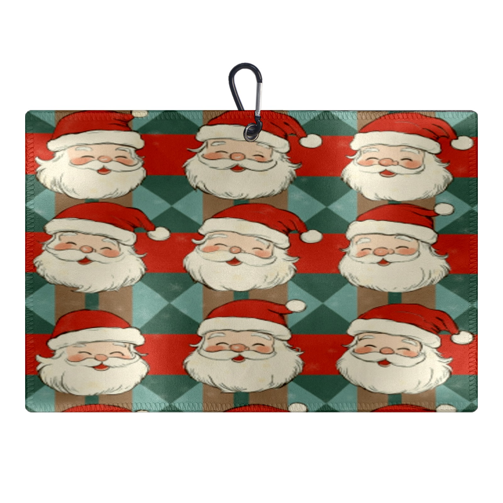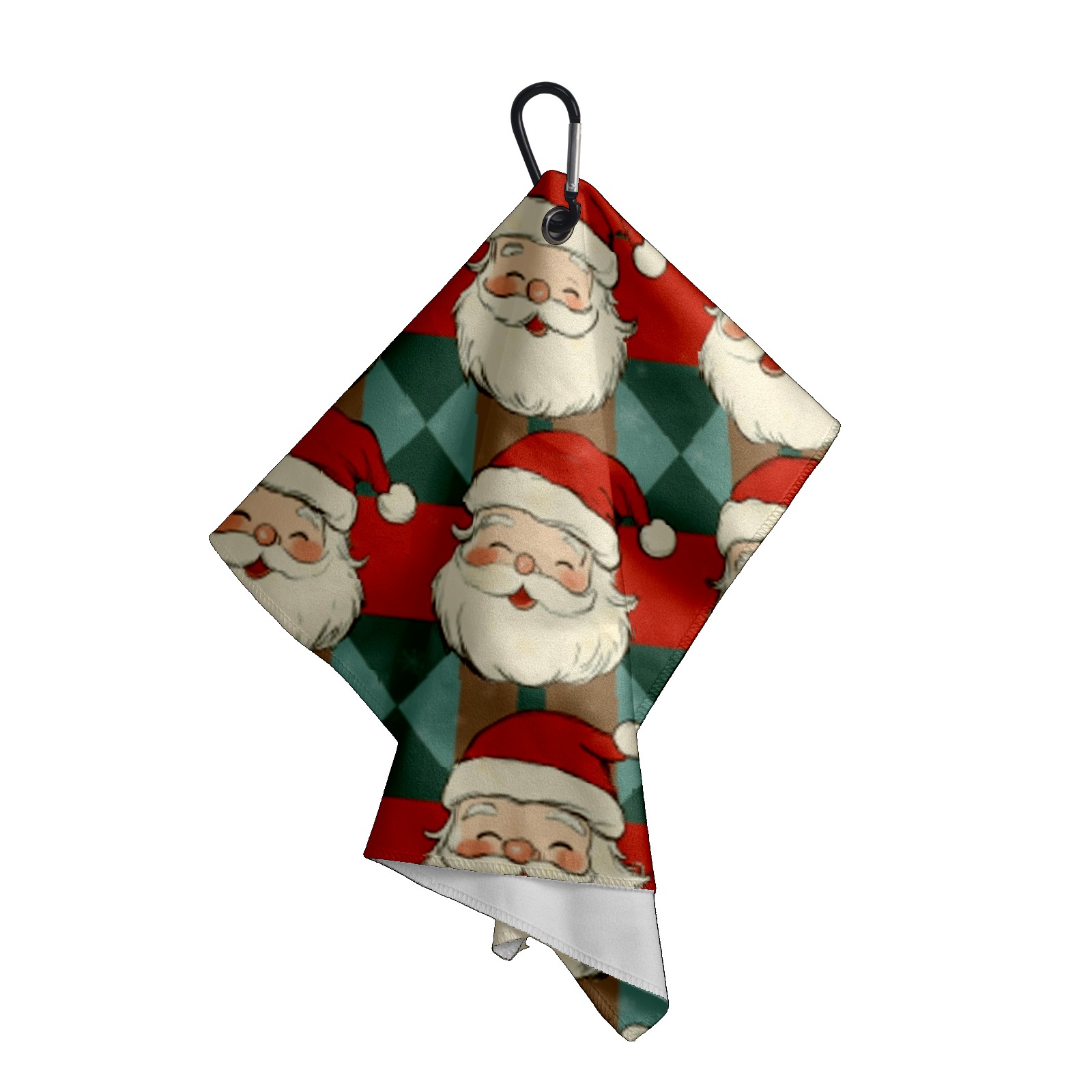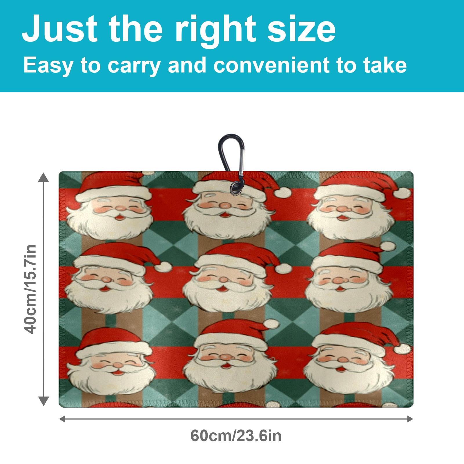 Golf Towel Microfiber Pocket Towels with Buckle Clip, Quick Dry Golf Ball Cleaner Accessories for Course Exercise TowelVintage Santa Pattern