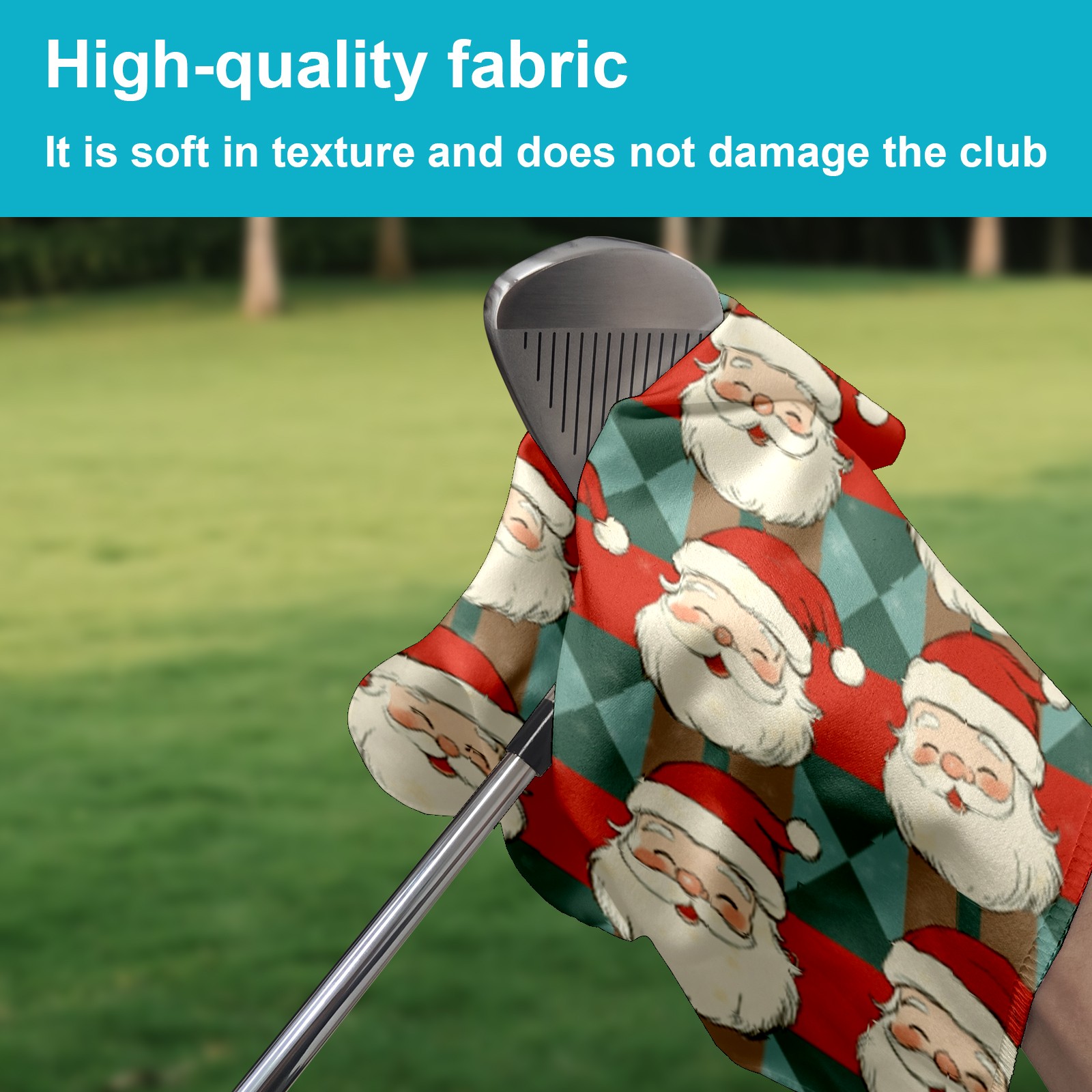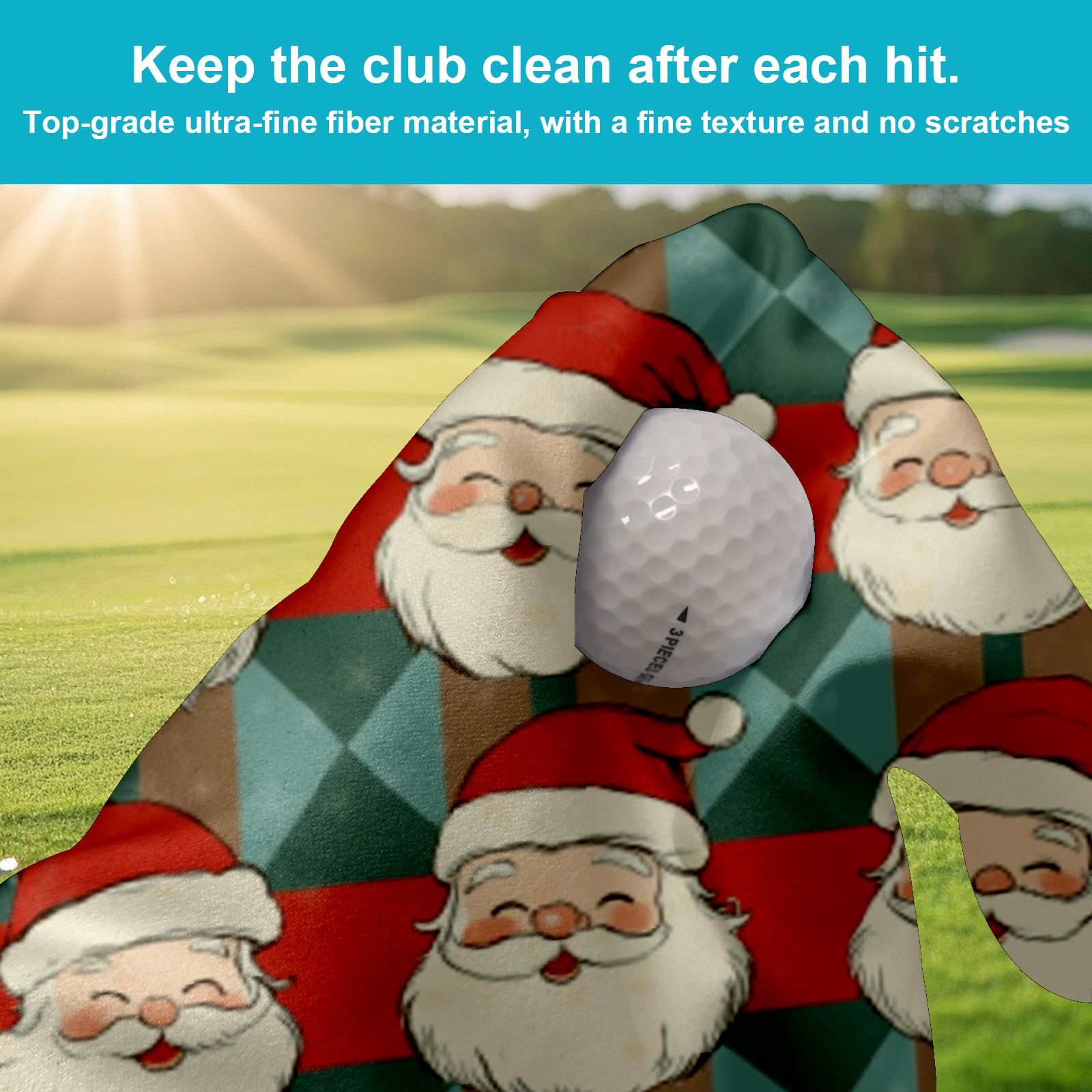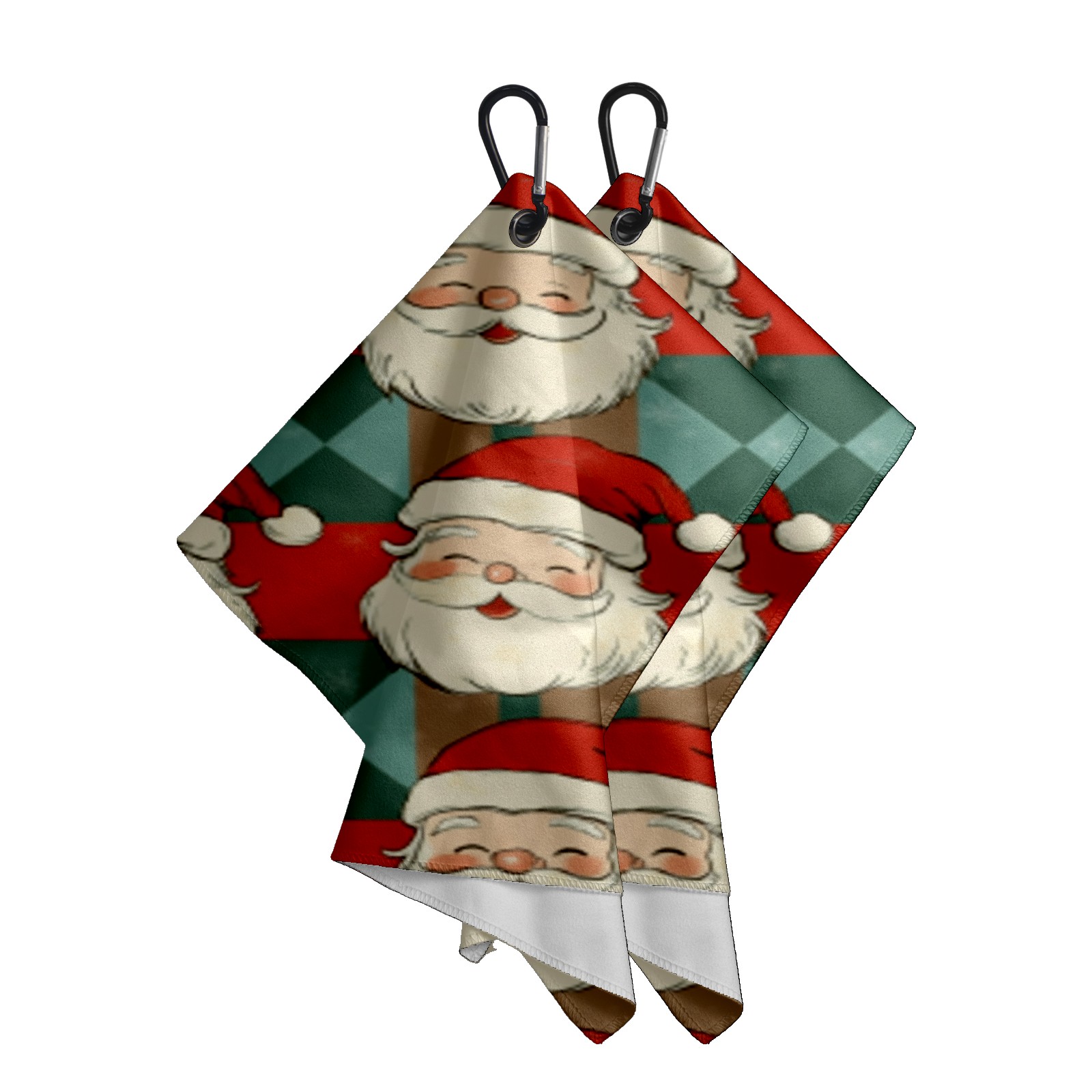 Golf Towel Microfiber Pocket Towels with Buckle Clip, Quick Dry Golf Ball Cleaner Accessories for Course Exercise TowelVintage Santa Pattern
