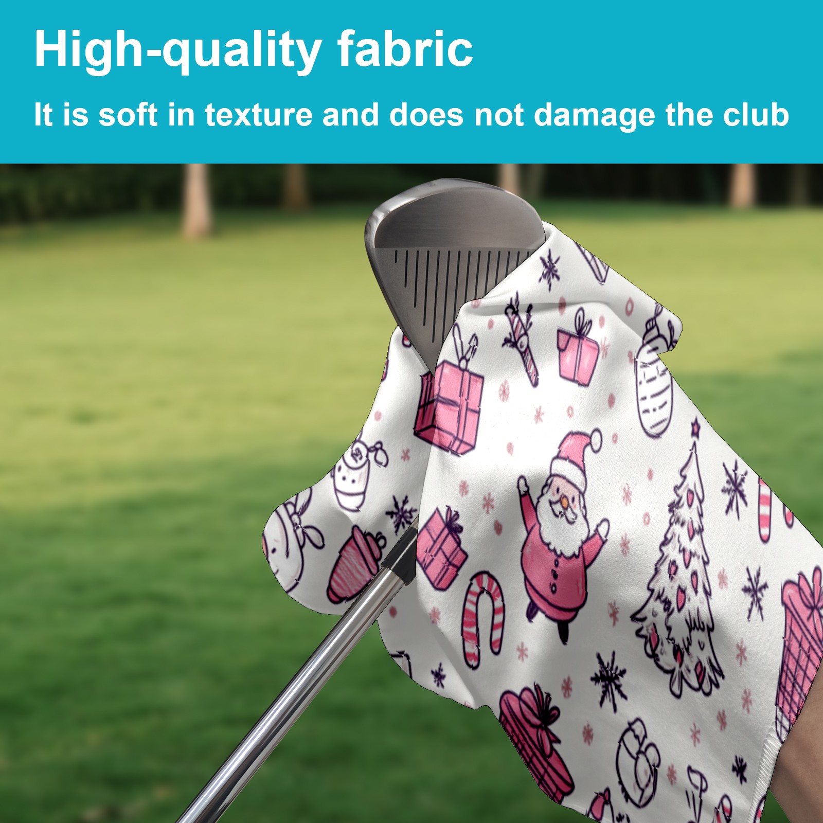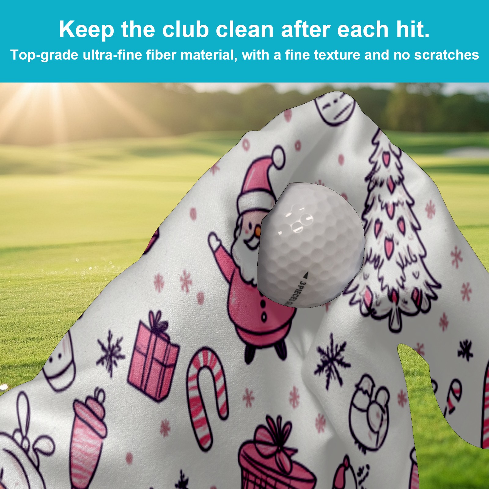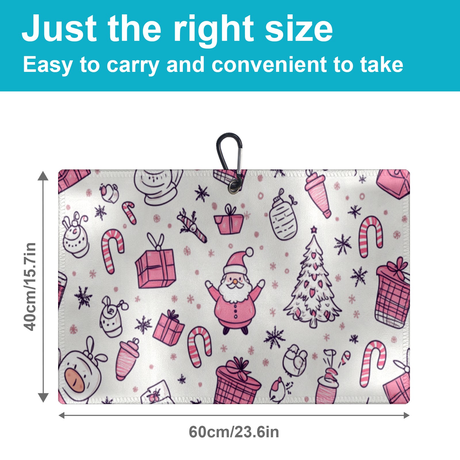 Golf Towel Microfiber Pocket Towels with Buckle Clip, Quick Dry Golf Ball Cleaner Accessories for Course Exercise TowelPink Christmas Gift Pattern