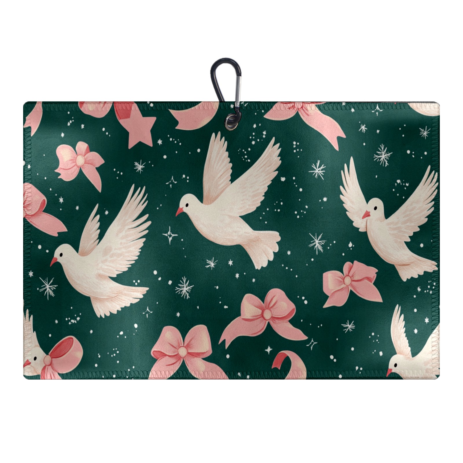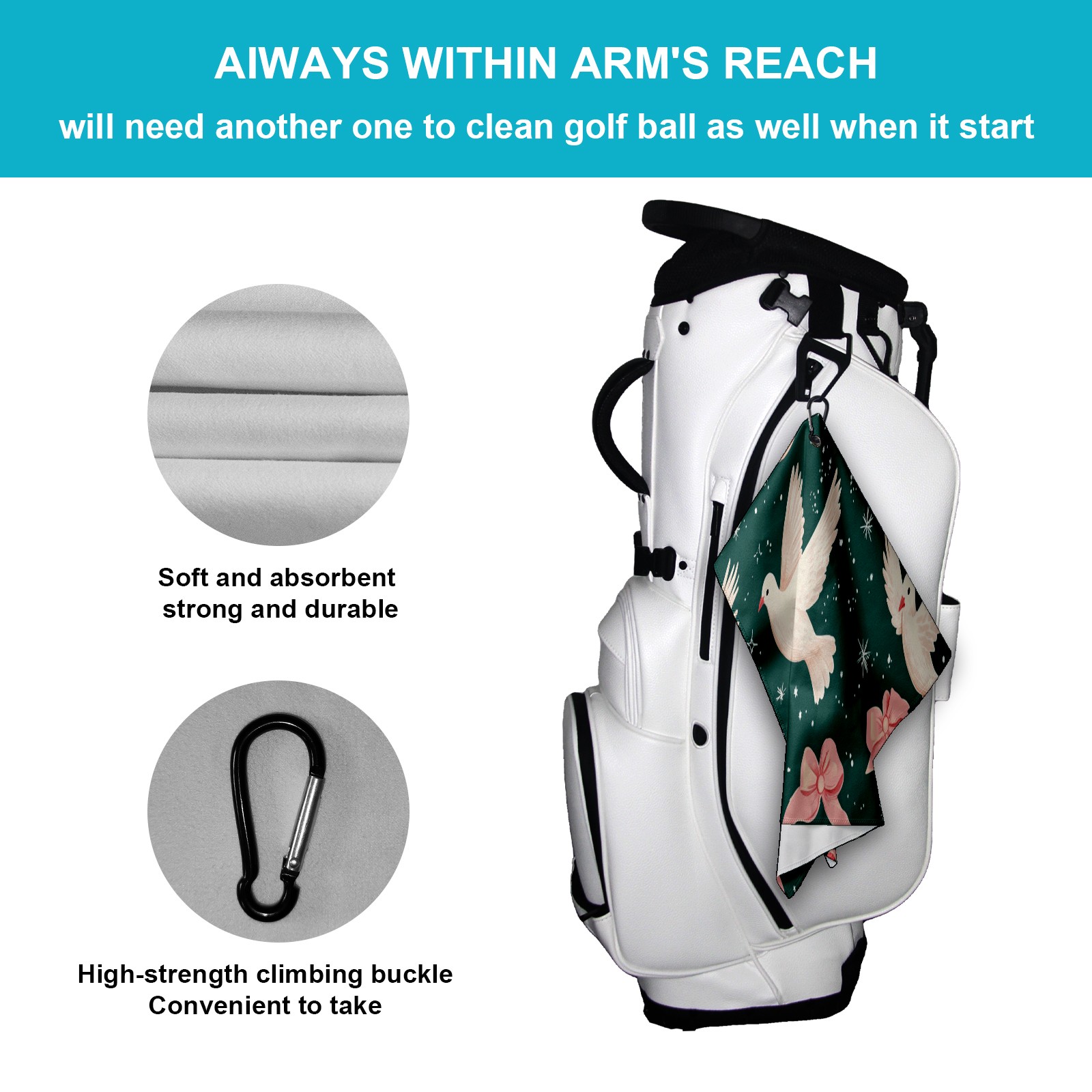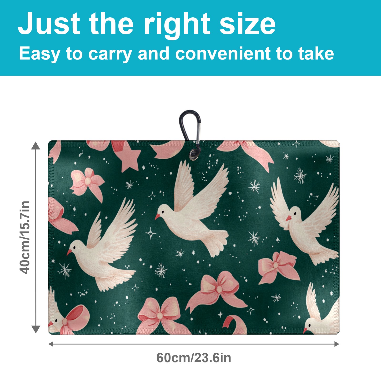 Golf Towel Microfiber Pocket Towels with Buckle Clip, Quick Dry Golf Ball Cleaner Accessories for Course Exercise TowelChristmas Doves