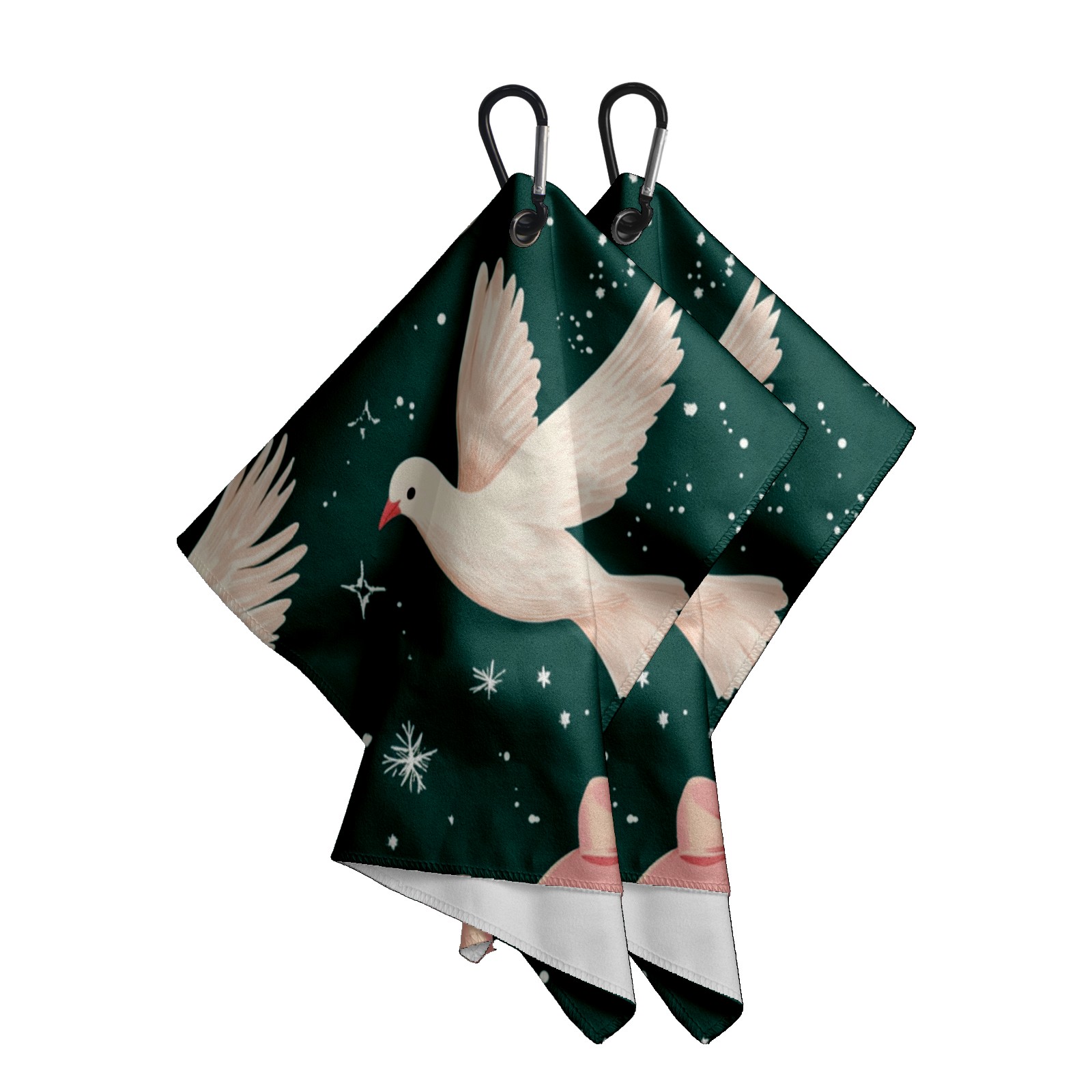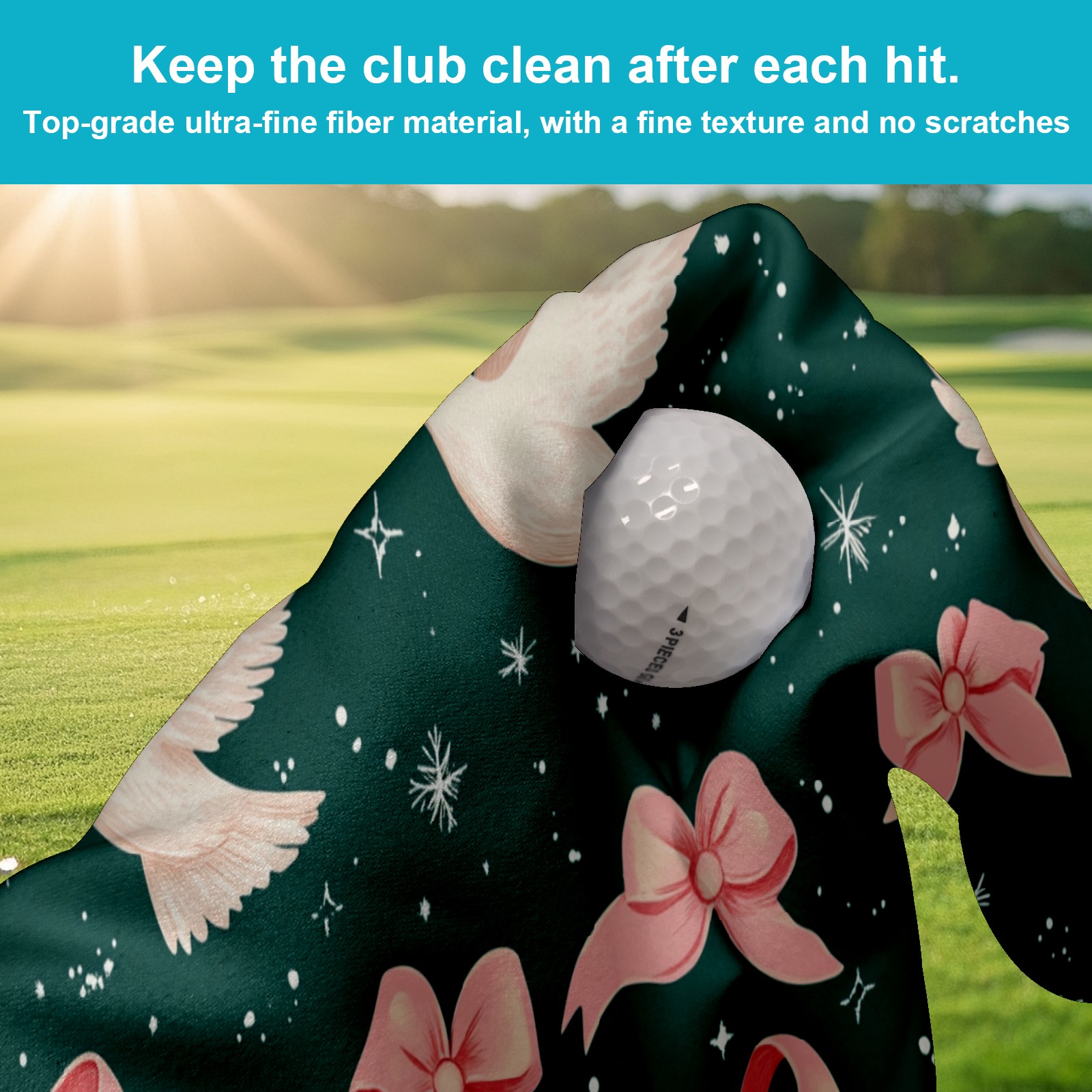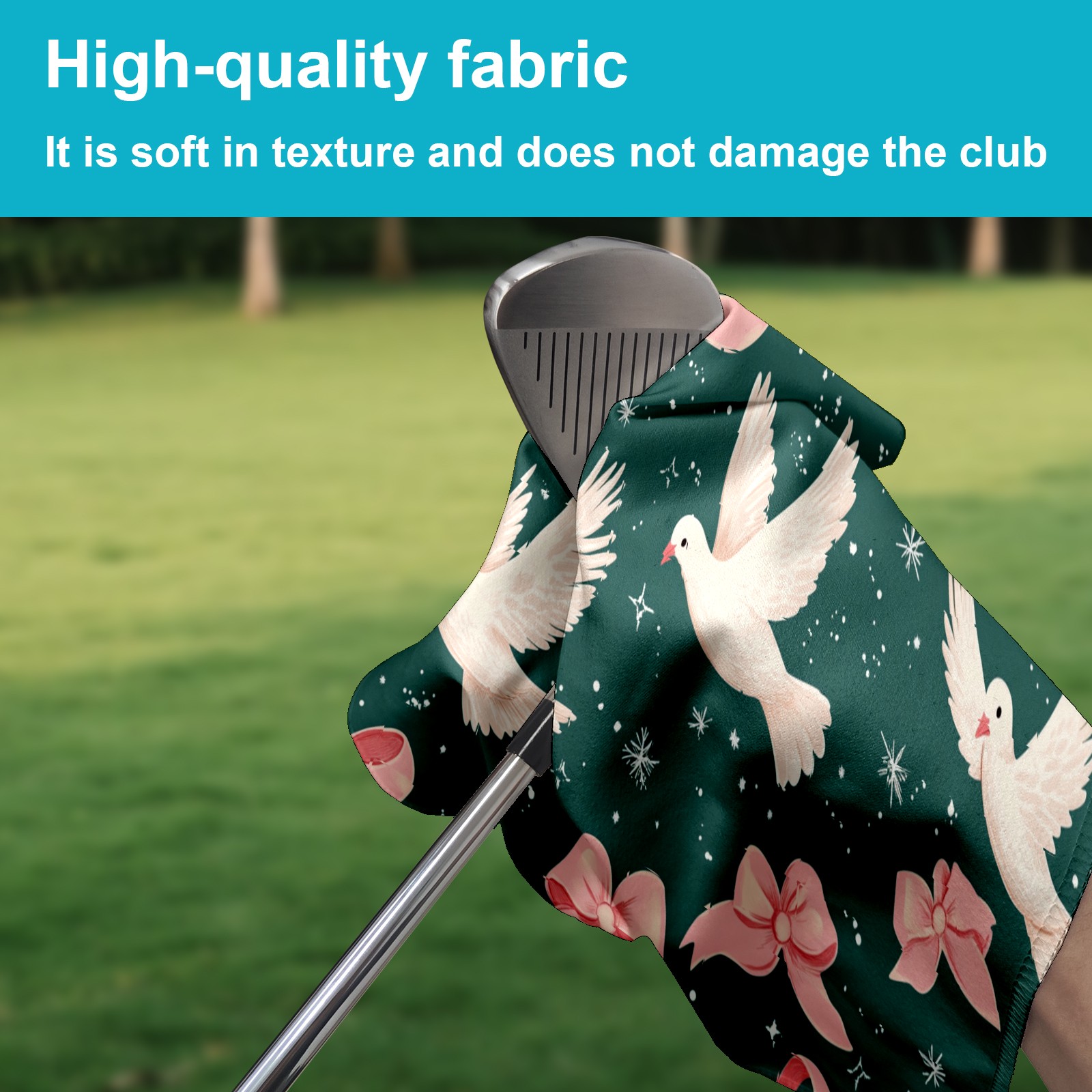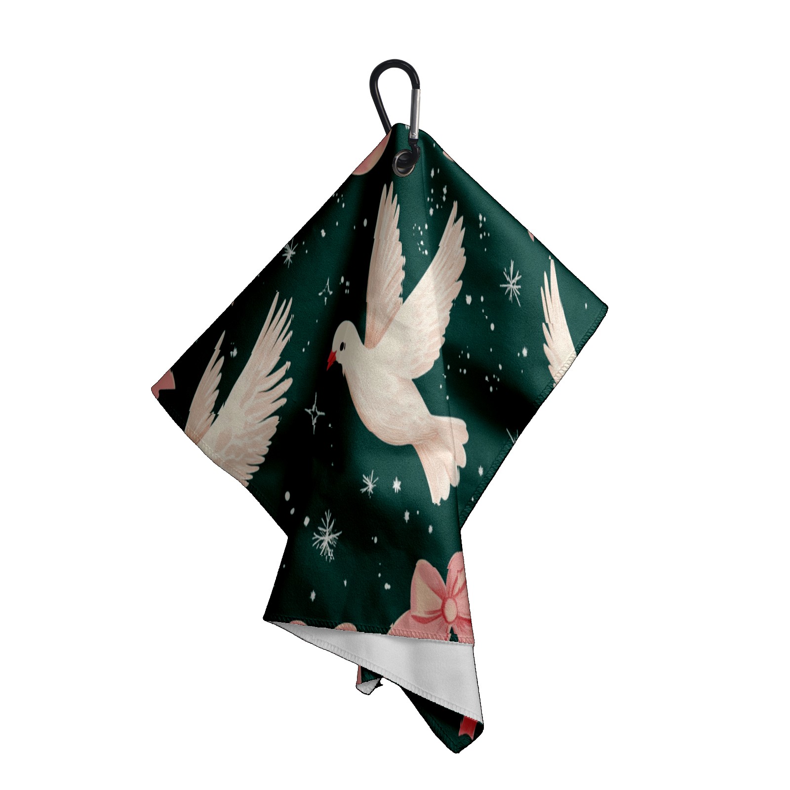 Golf Towel Microfiber Pocket Towels with Buckle Clip, Quick Dry Golf Ball Cleaner Accessories for Course Exercise TowelChristmas Doves
