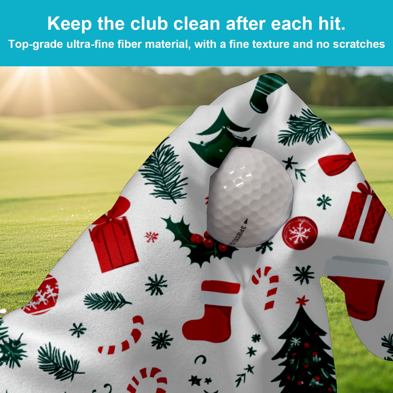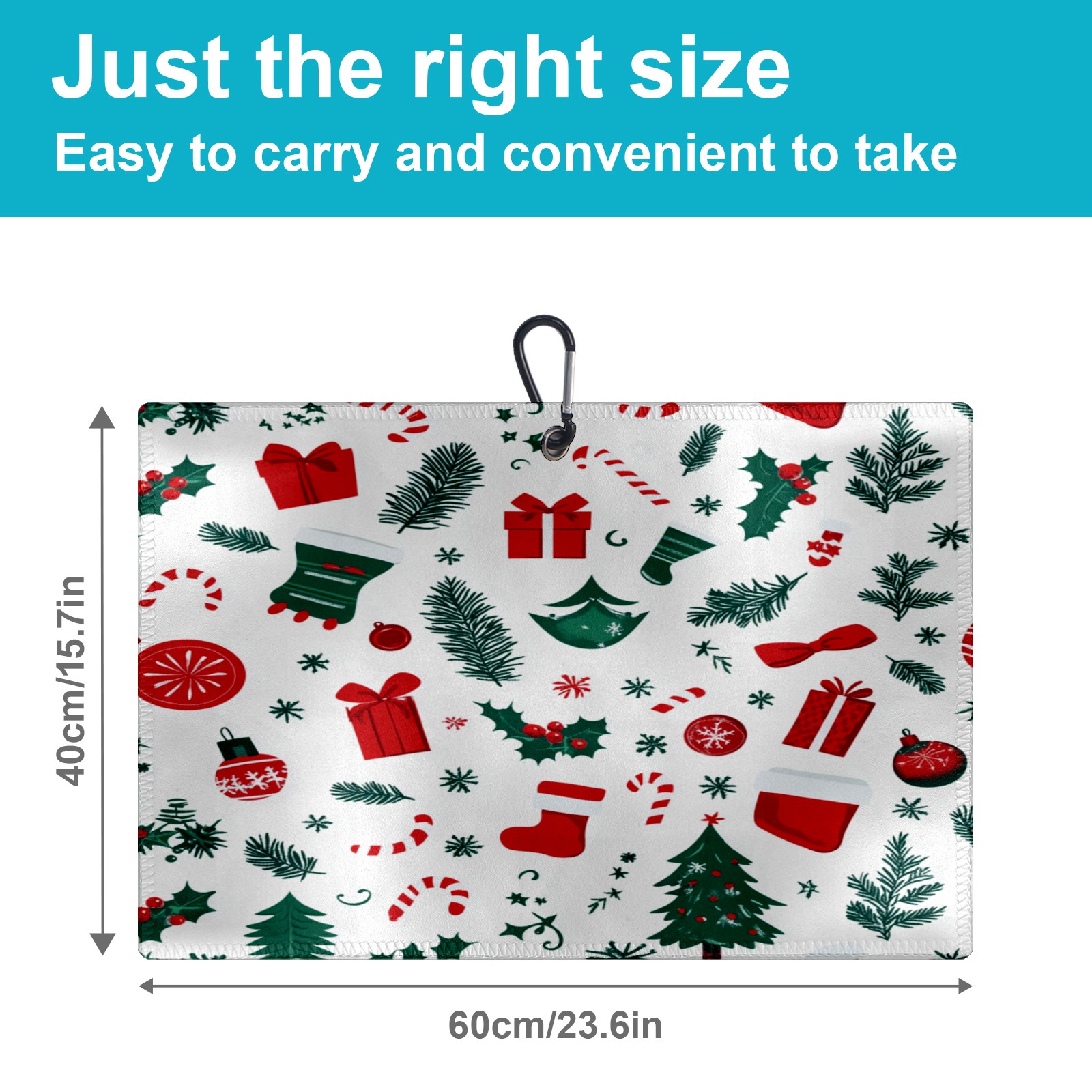 Golf Towel Microfiber Pocket Towels with Buckle Clip, Quick Dry Golf Ball Cleaner Accessories for Course Exercise TowelChristmas Candy Gift Pattern