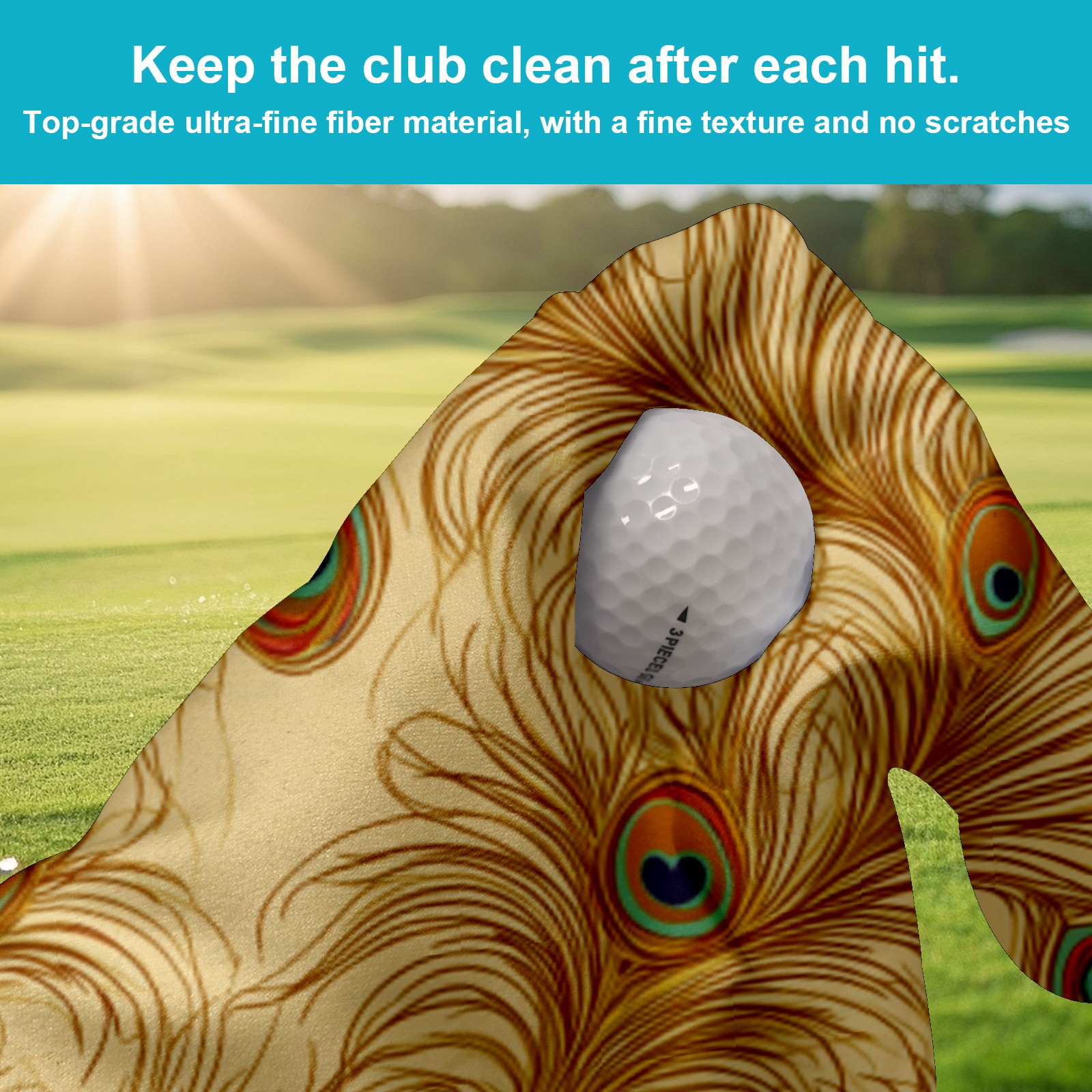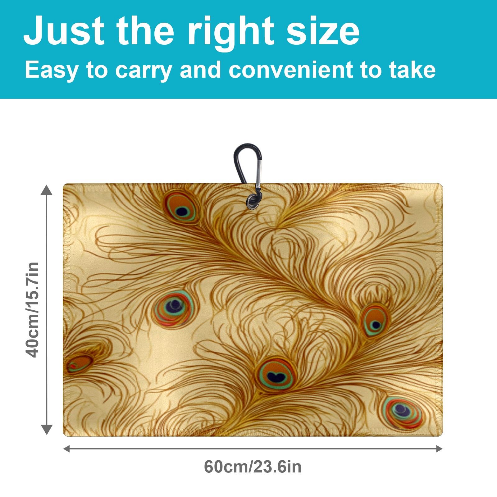Golf Towel Microfiber Pocket Towels with Buckle Clip, Quick Dry Golf Ball Cleaner Accessories for Course Exercise TowelPeacock Feather Pattern