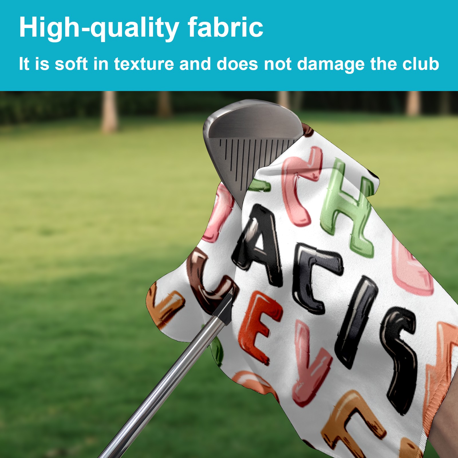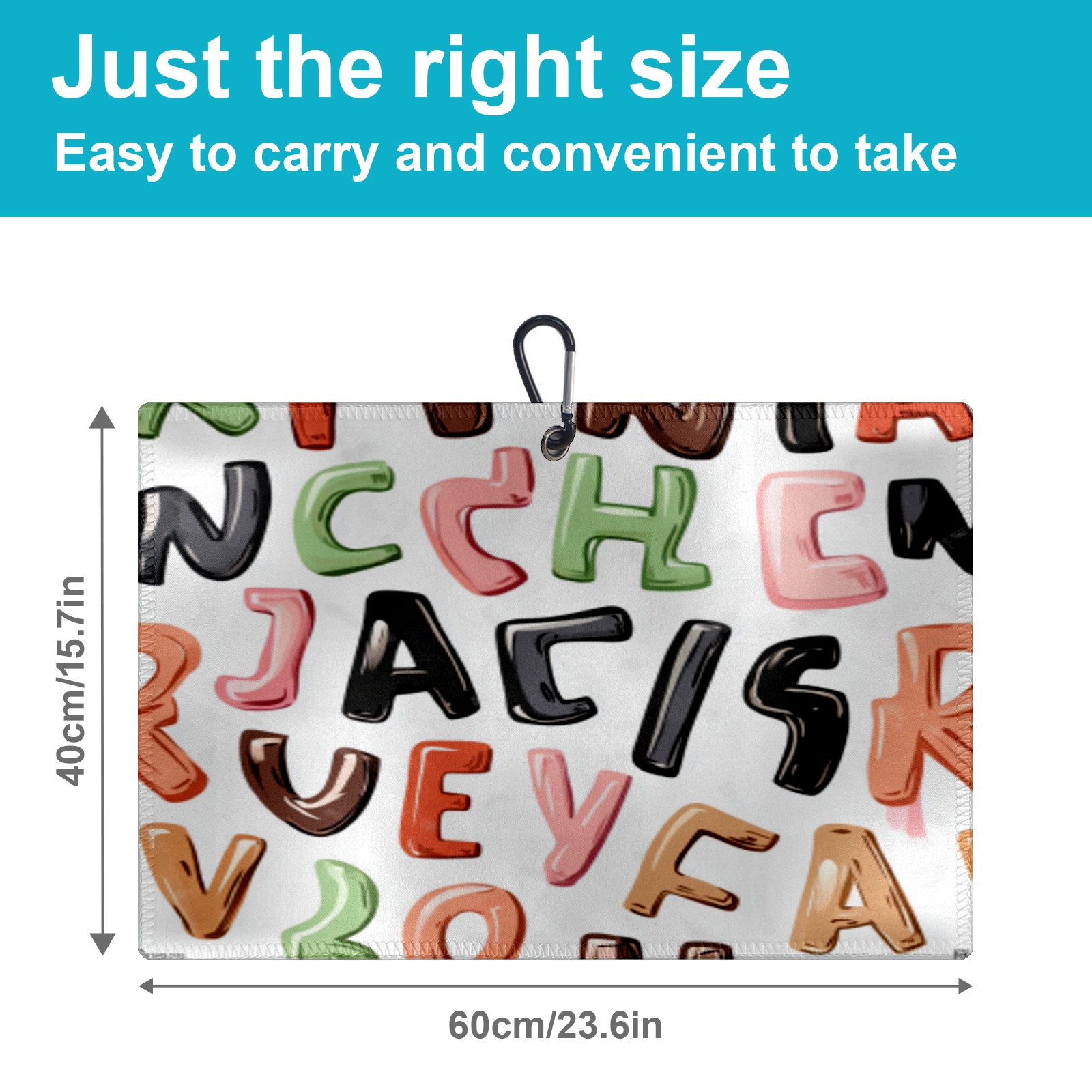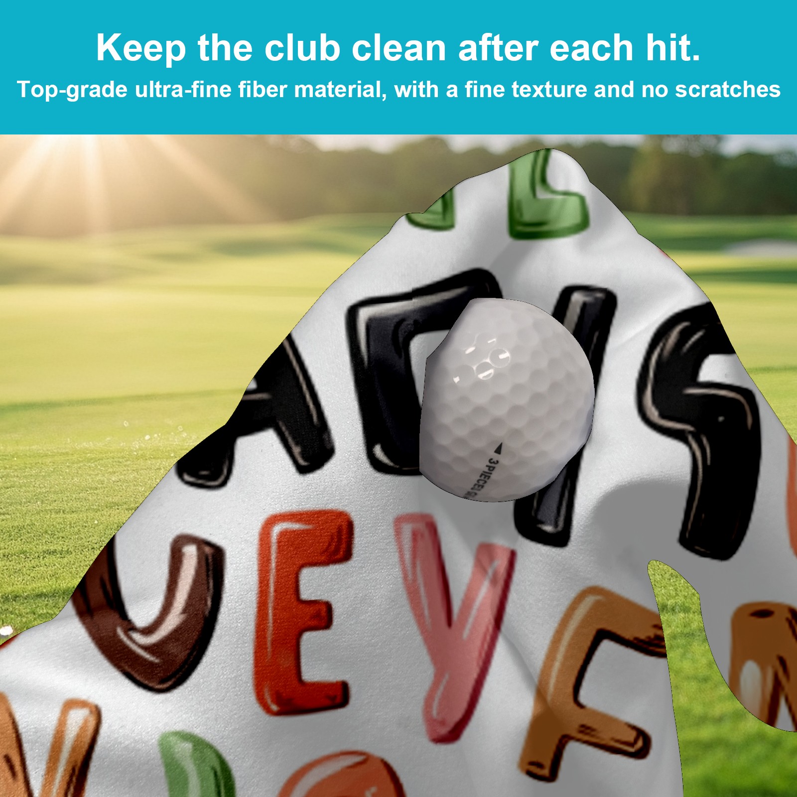 Golf Towel Microfiber Pocket Towels with Buckle Clip, Quick Dry Golf Ball Cleaner Accessories for Course Exercise TowelRandom Alphabet Pattern