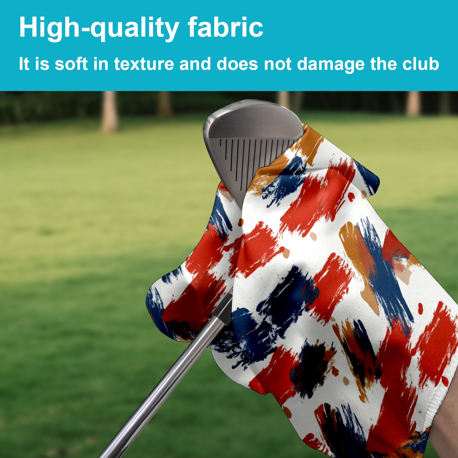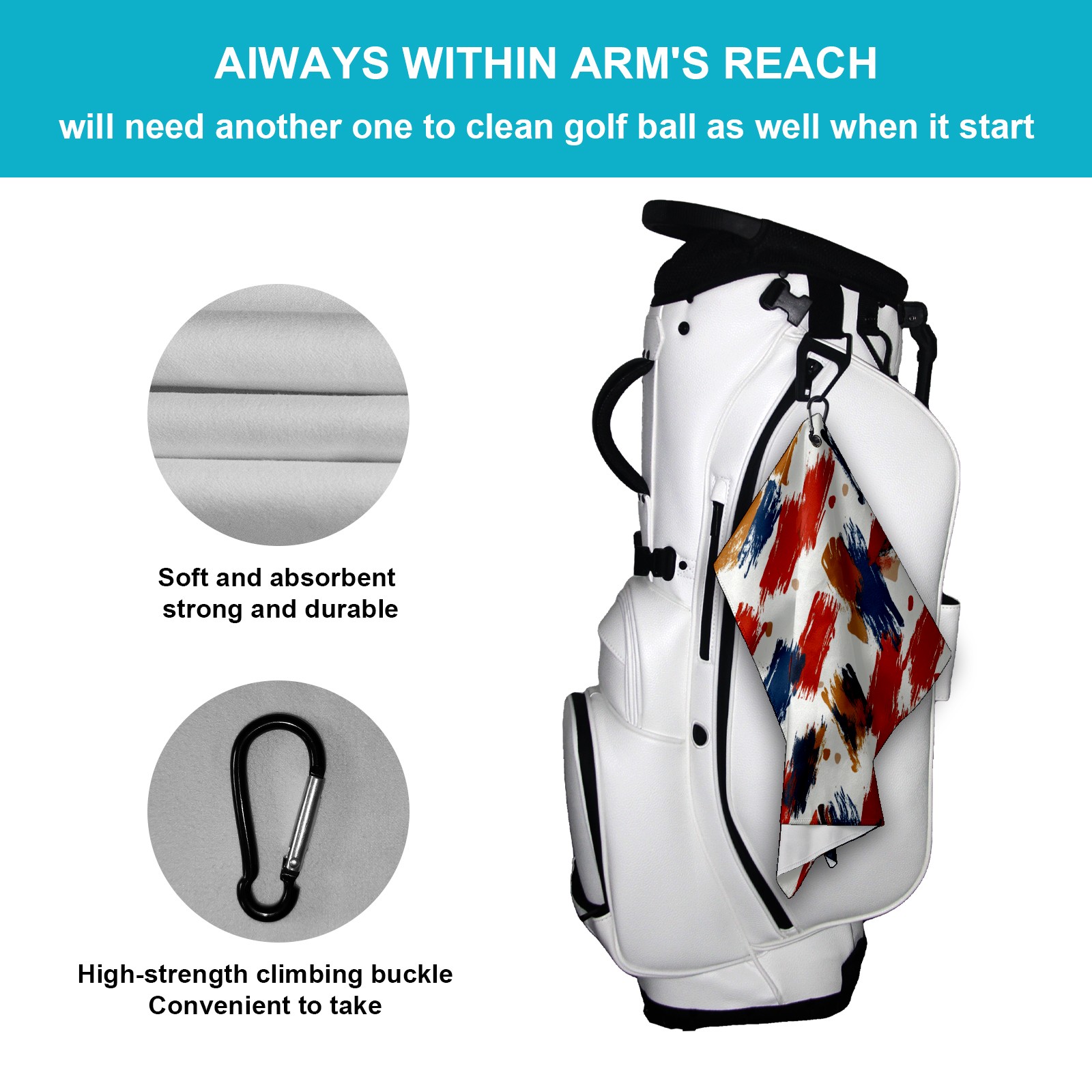 Golf Towel Microfiber Pocket Towels with Buckle Clip, Quick Dry Golf Ball Cleaner Accessories for Course Exercise TowelBrushstroke Pattern