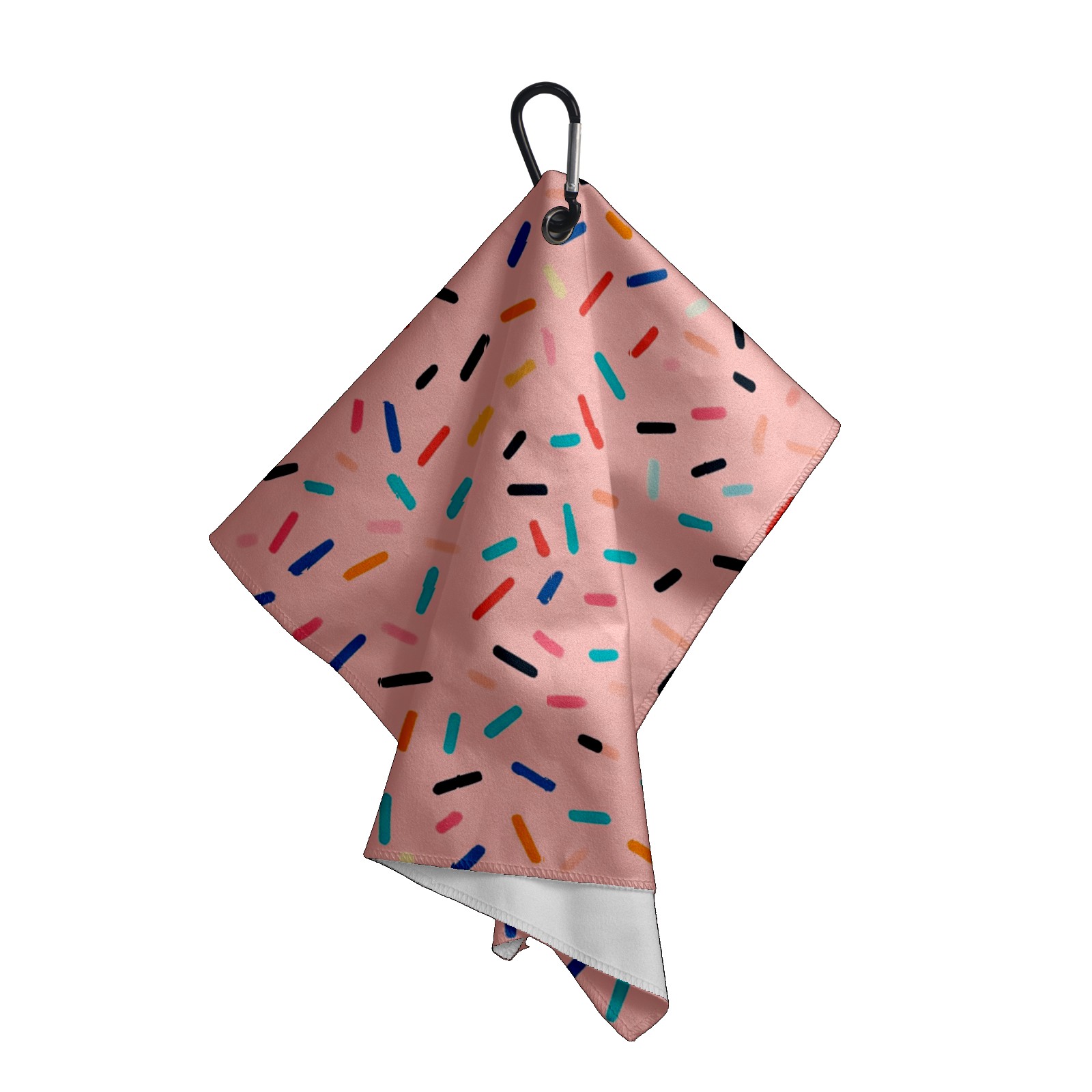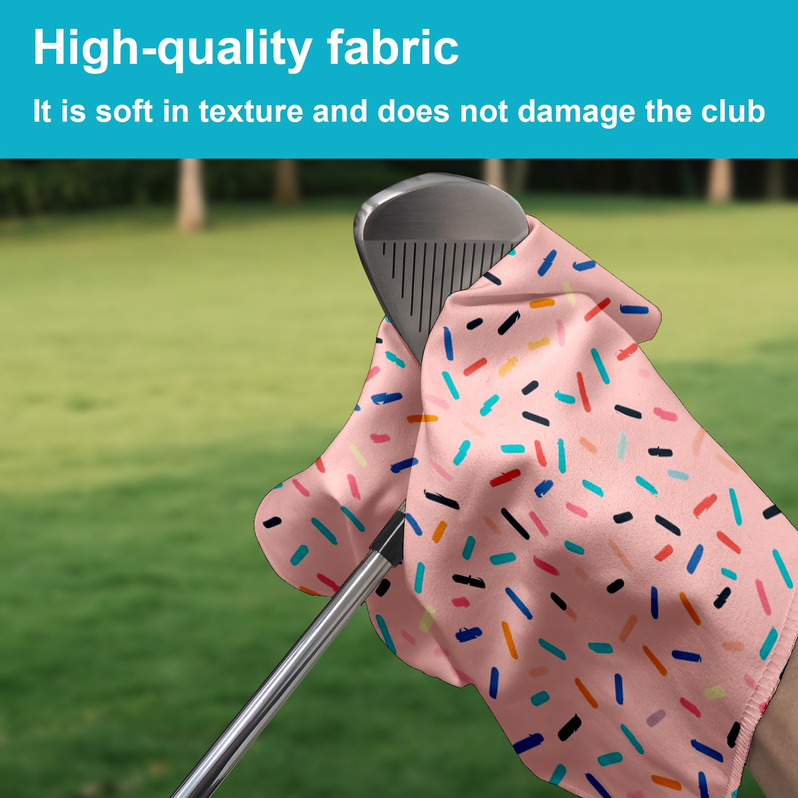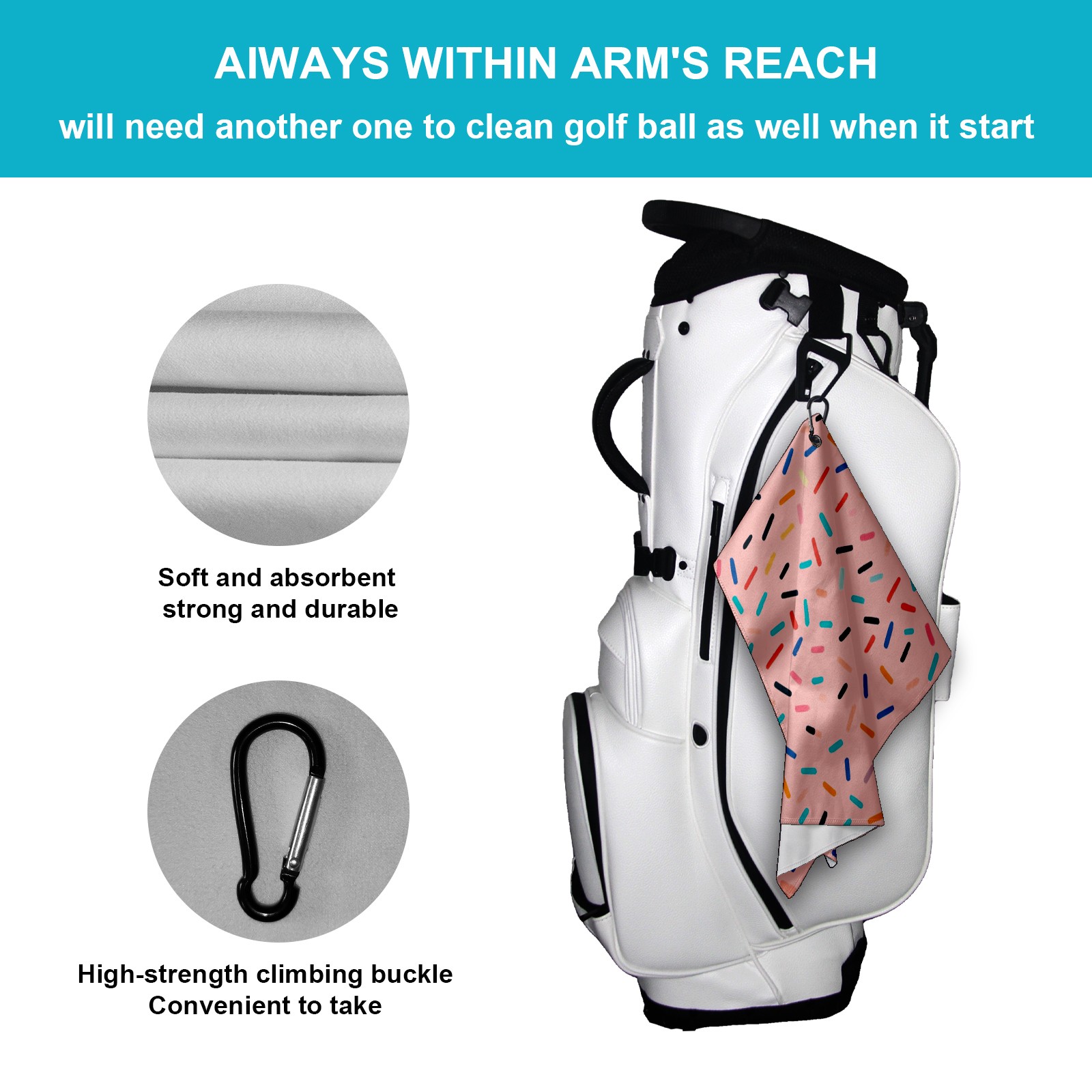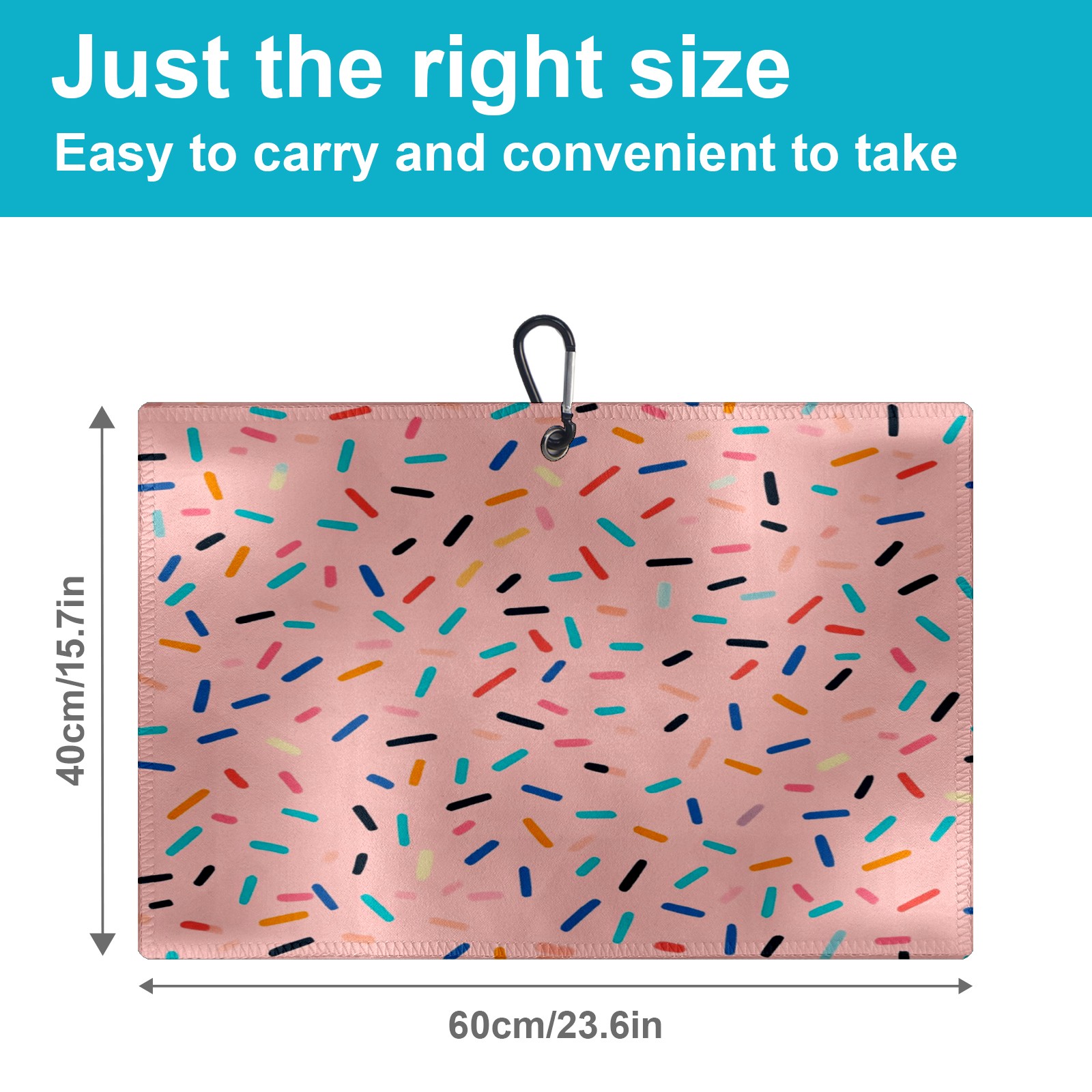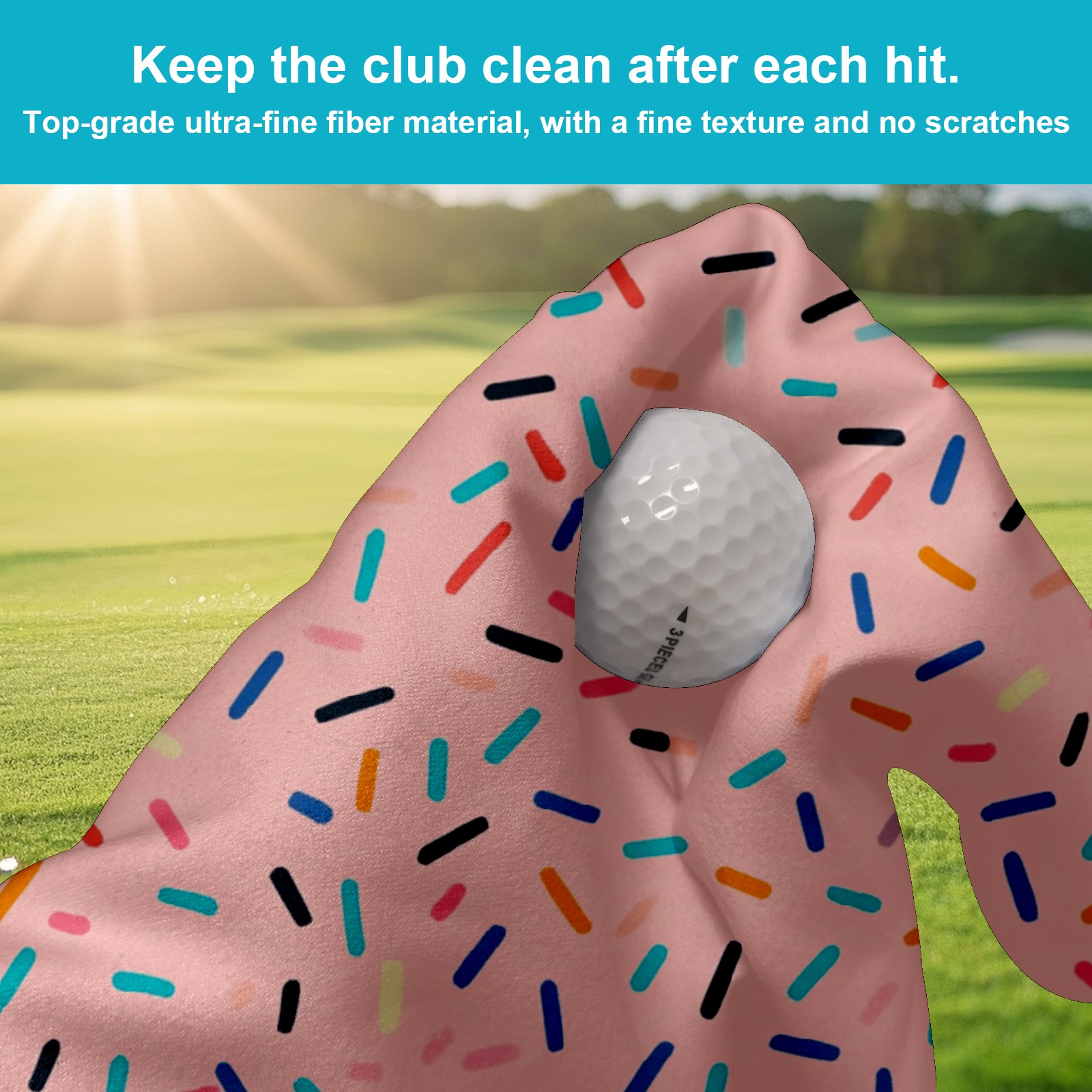 Golf Towel Microfiber Pocket Towels with Buckle Clip, Quick Dry Golf Ball Cleaner Accessories for Course Exercise TowelPink Sprinkle Pattern