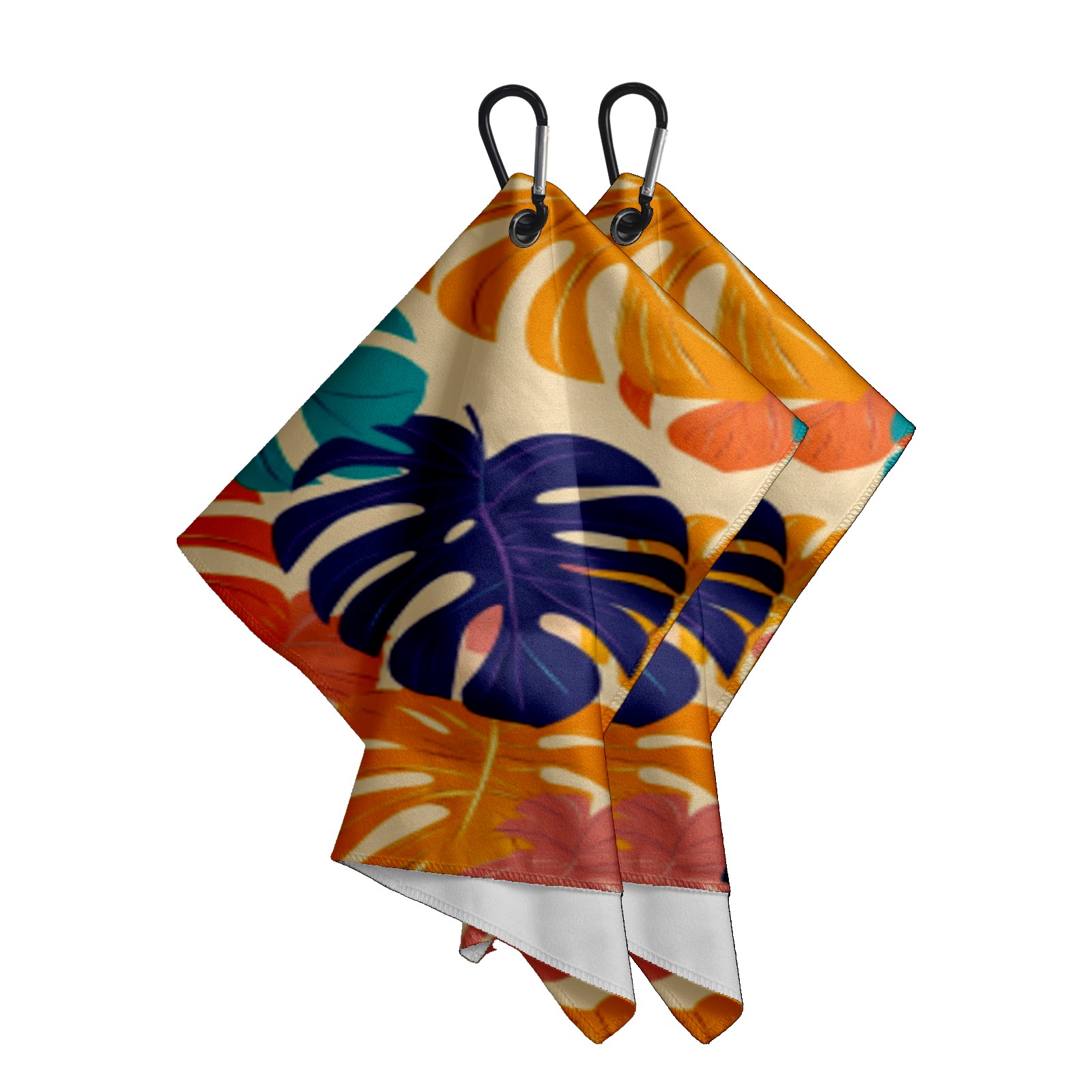 Golf Towel Microfiber Pocket Towels with Buckle Clip, Quick Dry Golf Ball Cleaner Accessories for Course Exercise TowelTropical Leaf Pattern