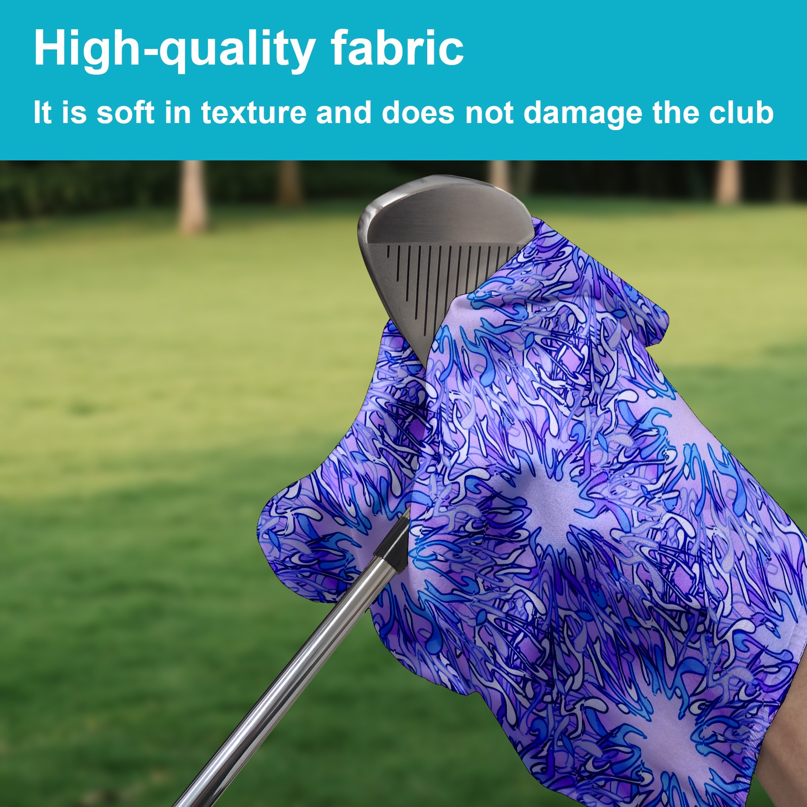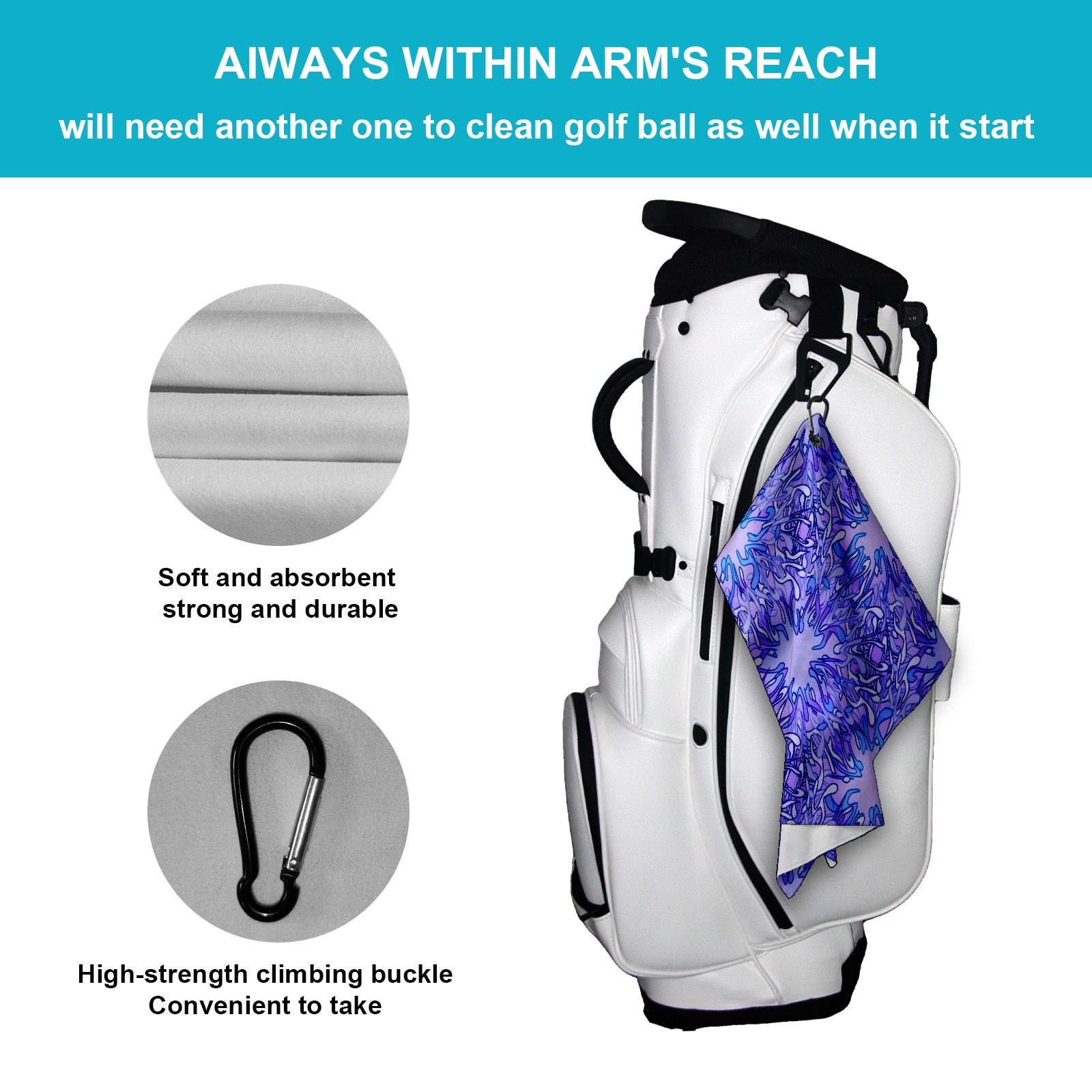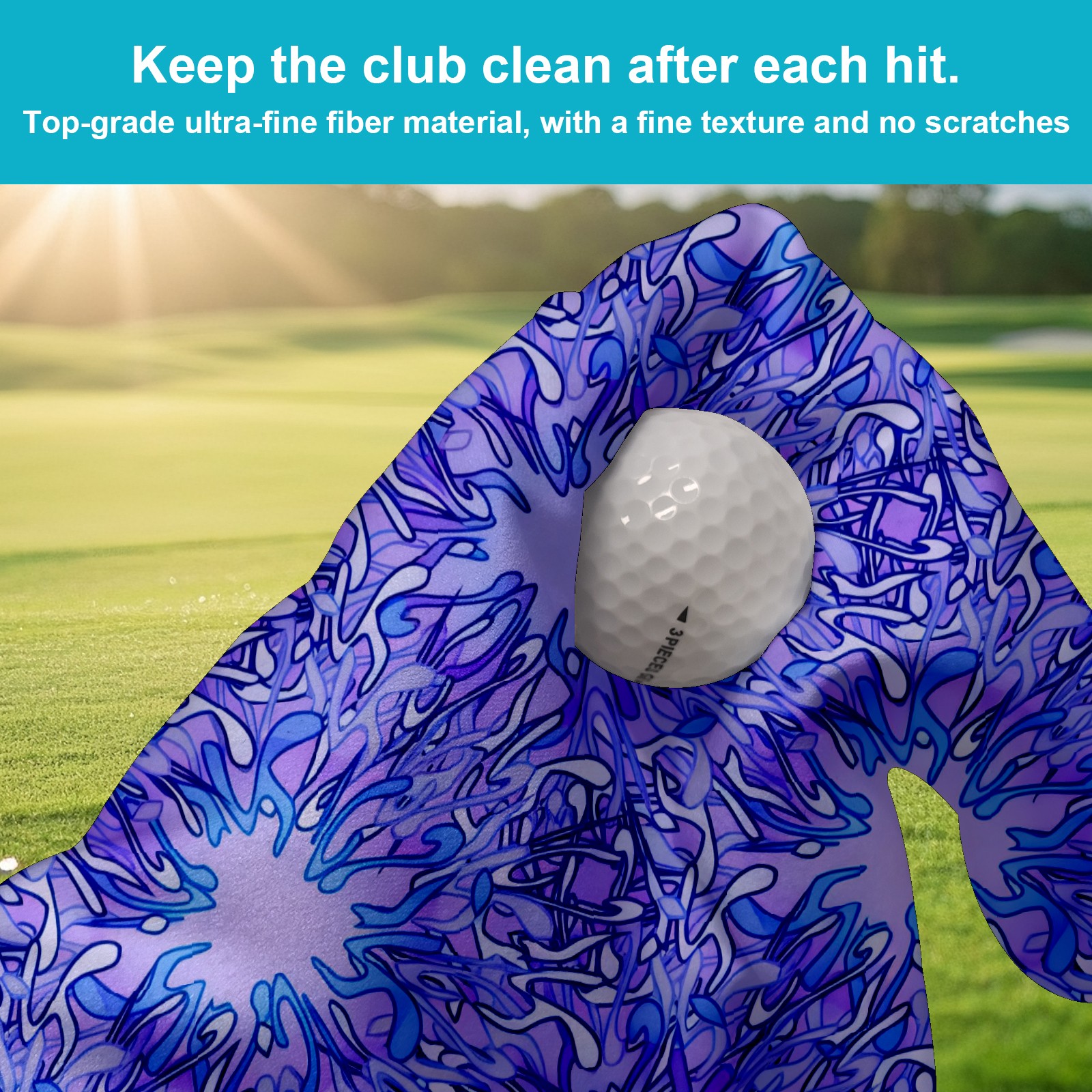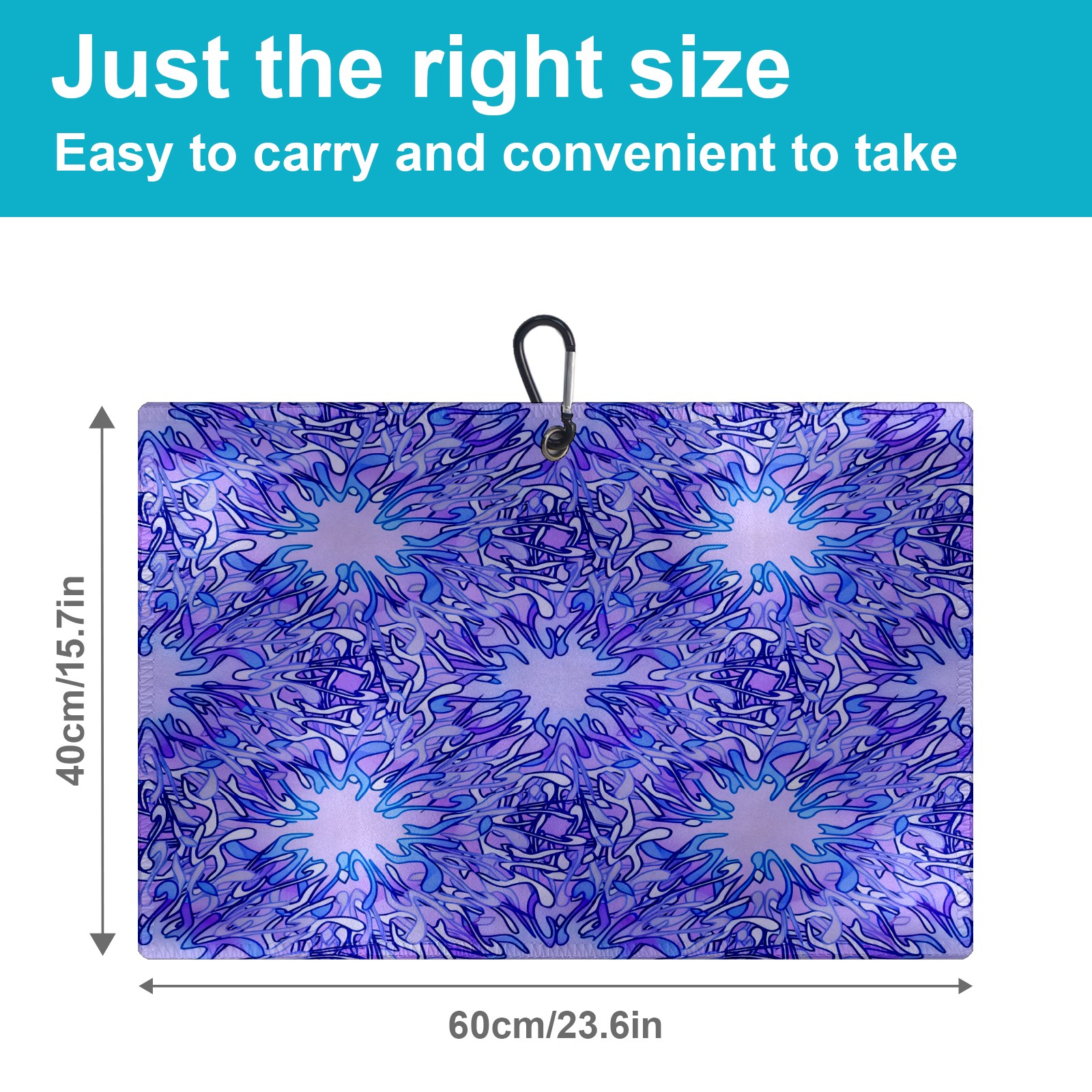 Golf Towel Microfiber Pocket Towels with Buckle Clip, Quick Dry Golf Ball Cleaner Accessories for Course Exercise TowelPurple Fractal Pattern
