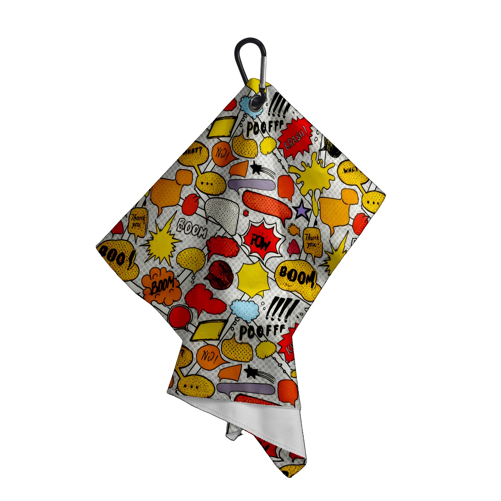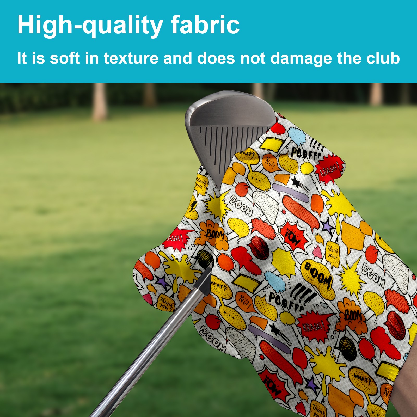 Golf Towel Microfiber Pocket Towels with Buckle Clip, Quick Dry Golf Ball Cleaner Accessories for Course Exercise TowelYellow Bubble Pattern