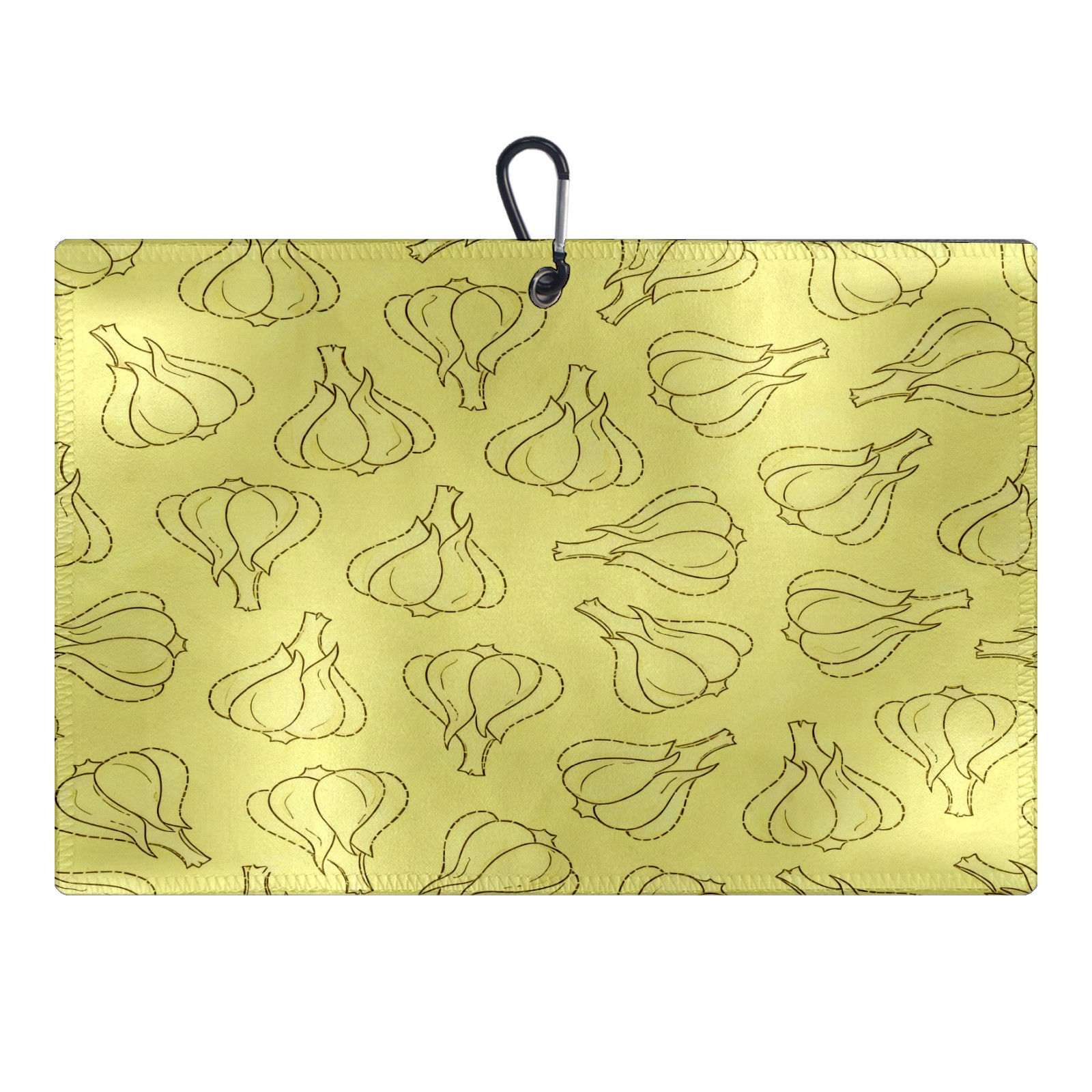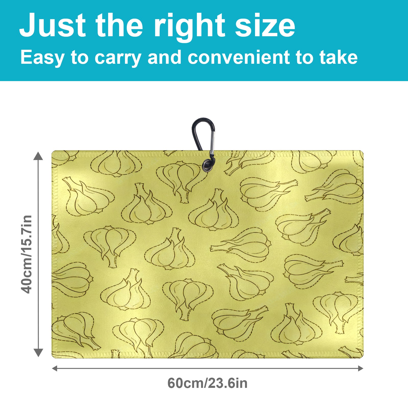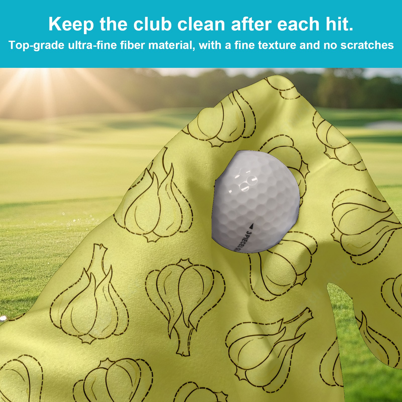 Golf Towel Microfiber Pocket Towels with Buckle Clip, Quick Dry Golf Ball Cleaner Accessories for Course Exercise TowelYellow Garlic Pattern