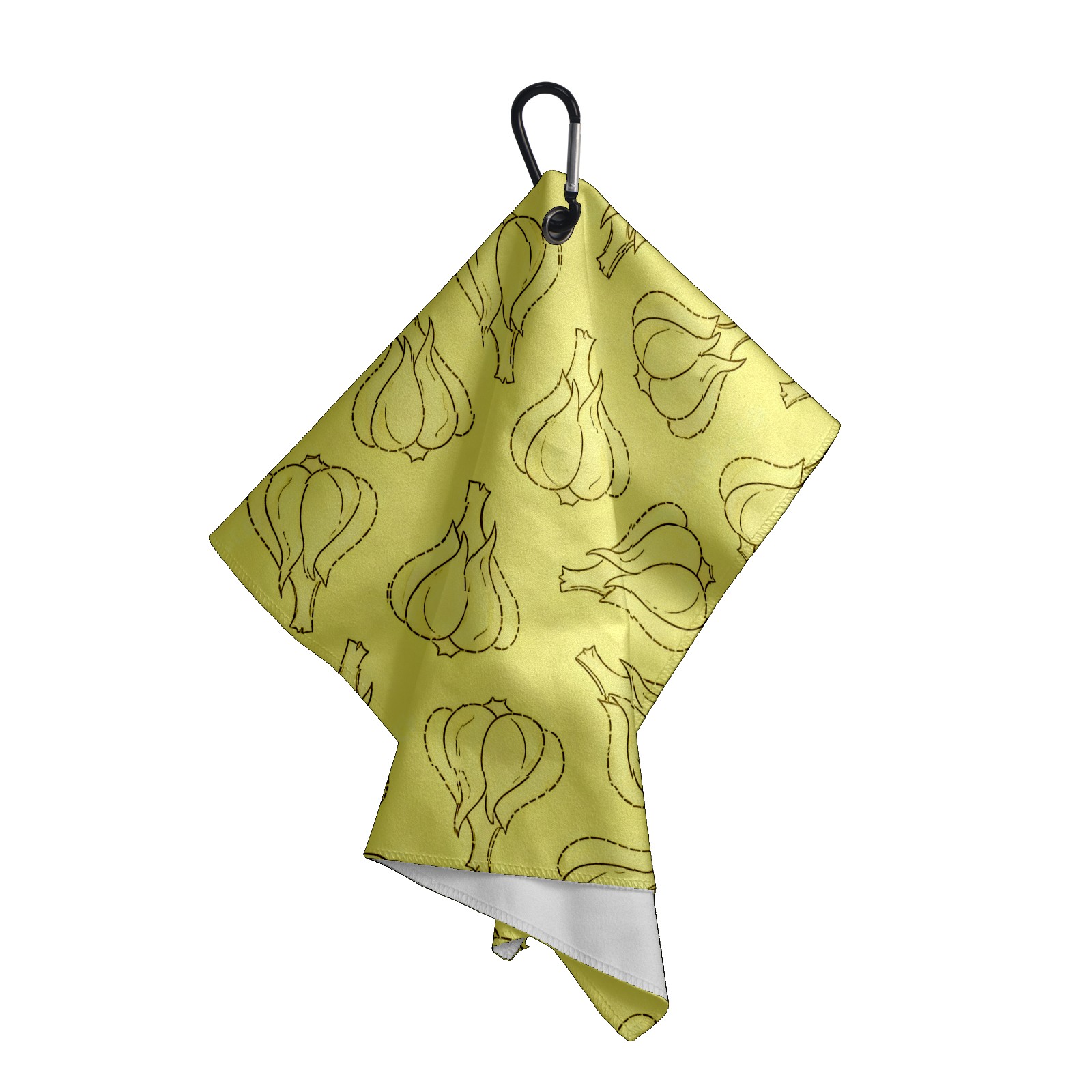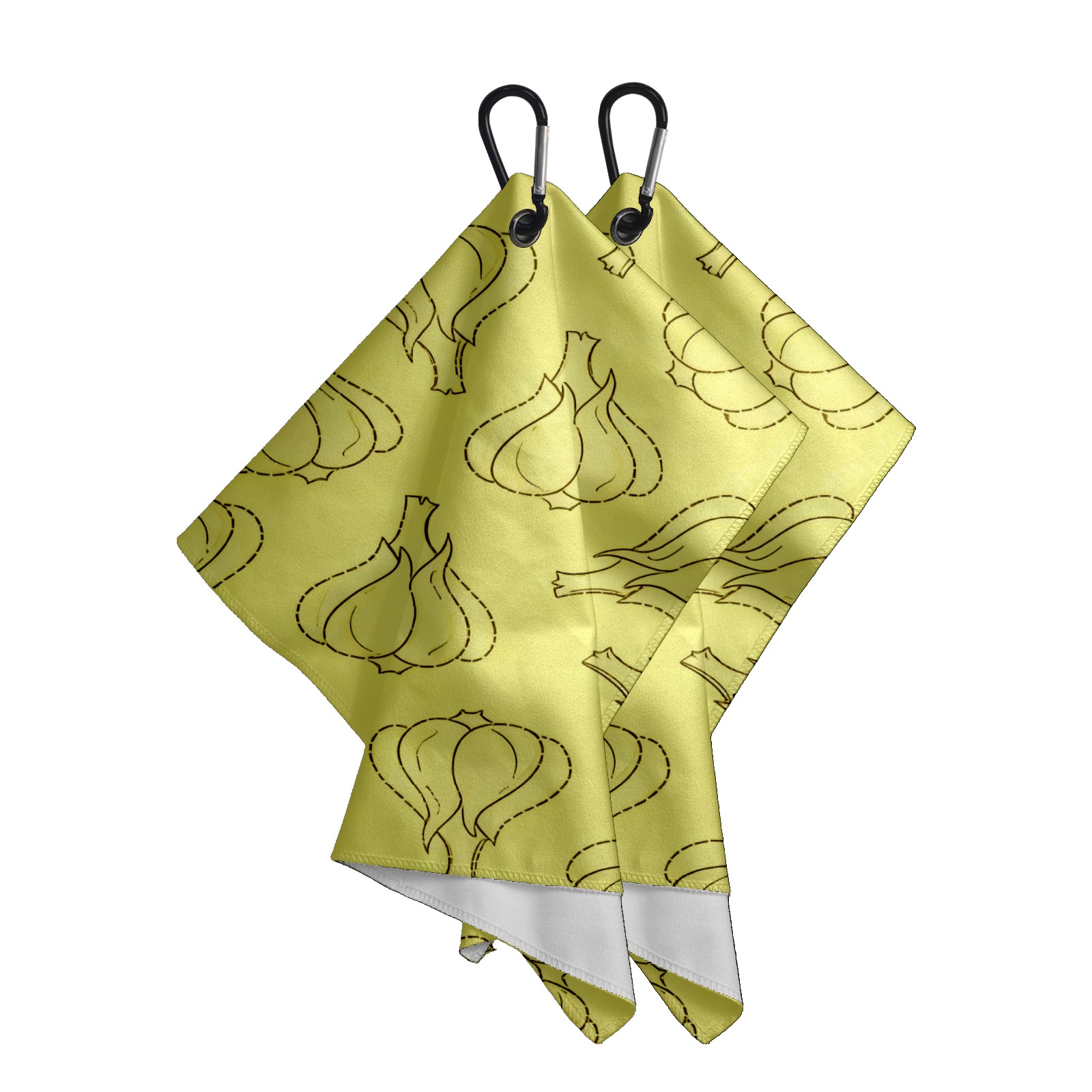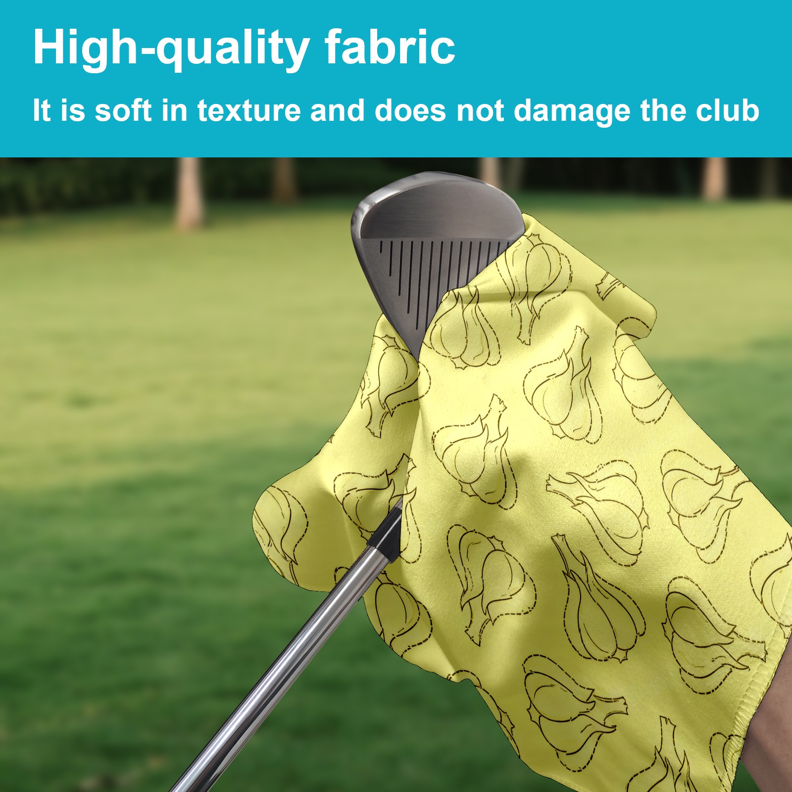 Golf Towel Microfiber Pocket Towels with Buckle Clip, Quick Dry Golf Ball Cleaner Accessories for Course Exercise TowelYellow Garlic Pattern