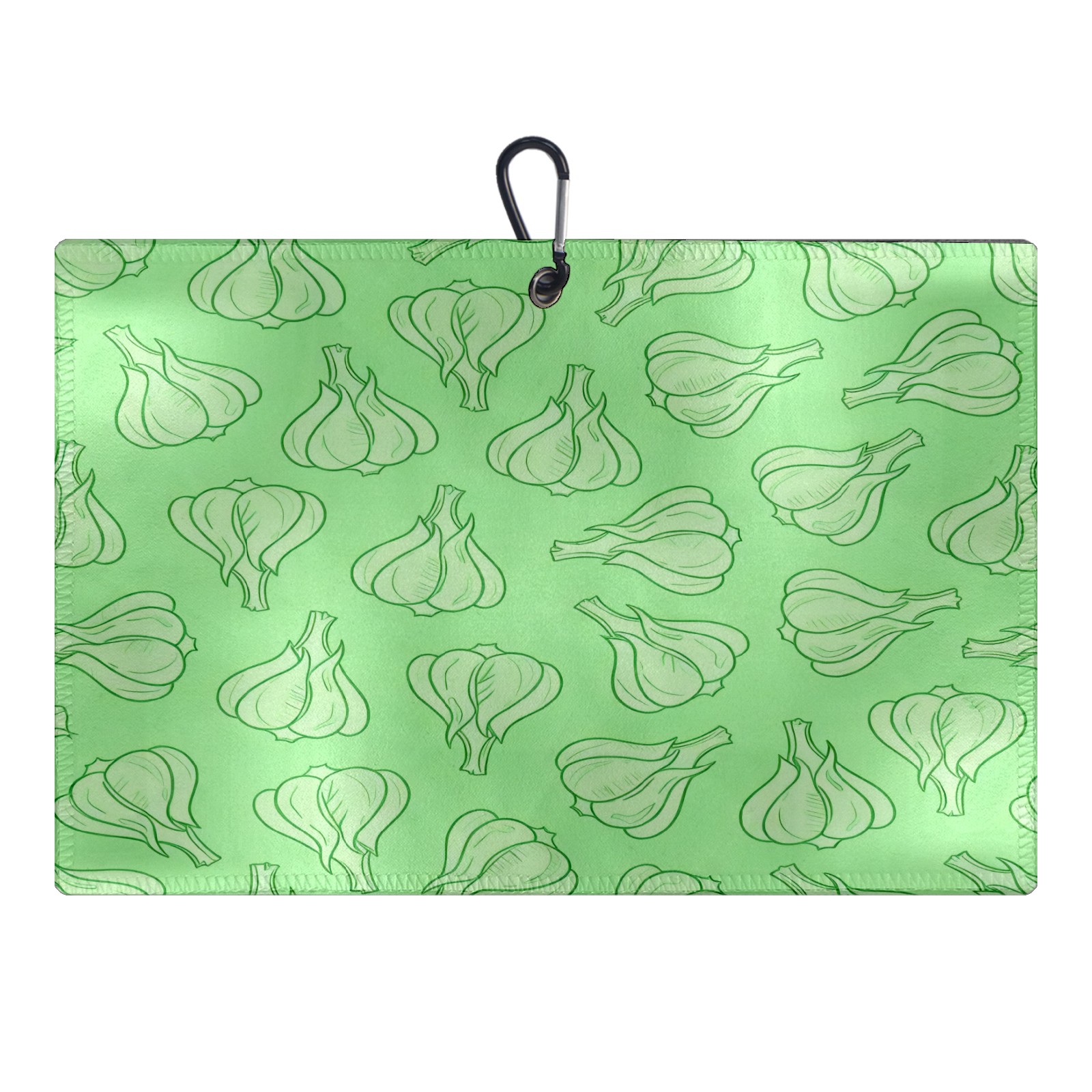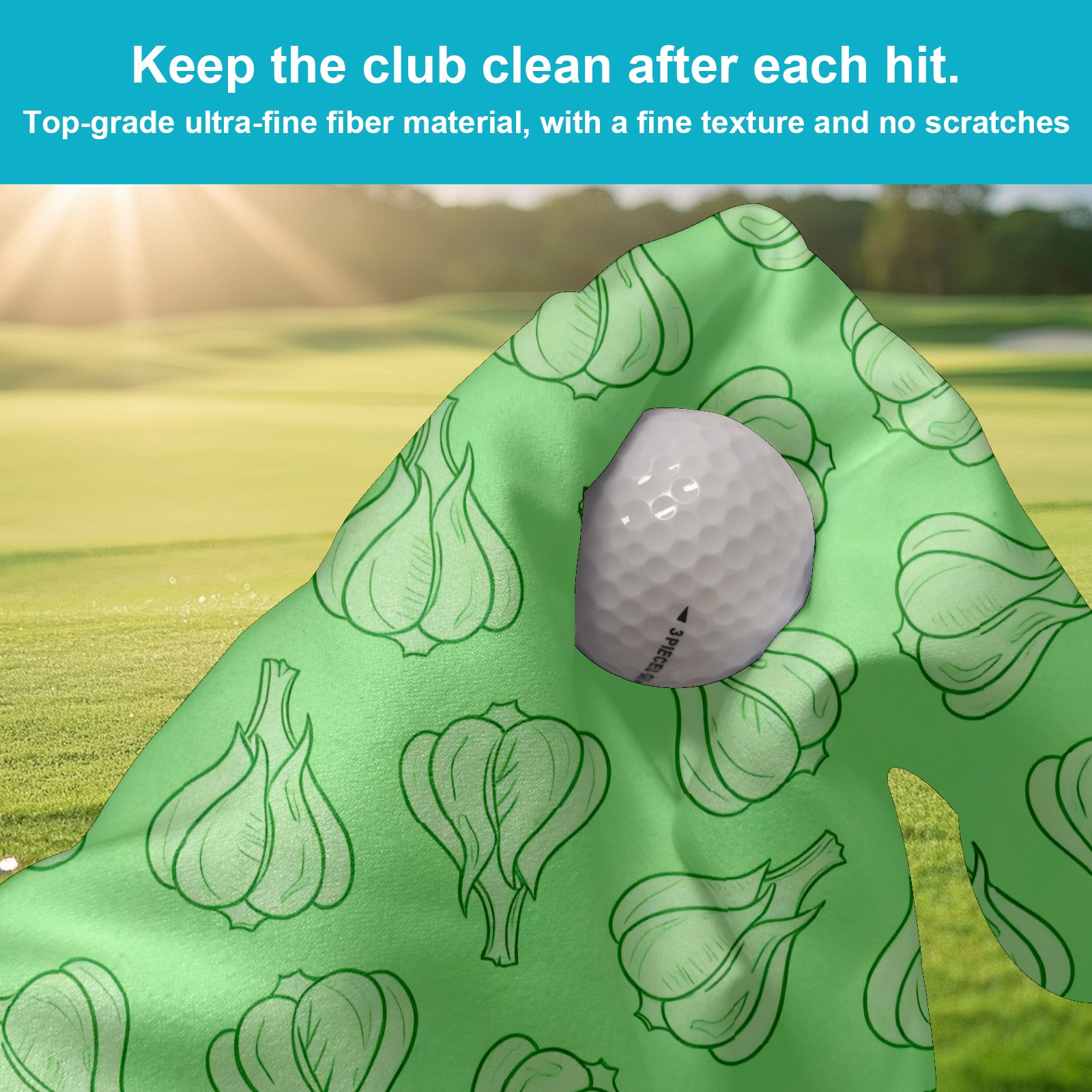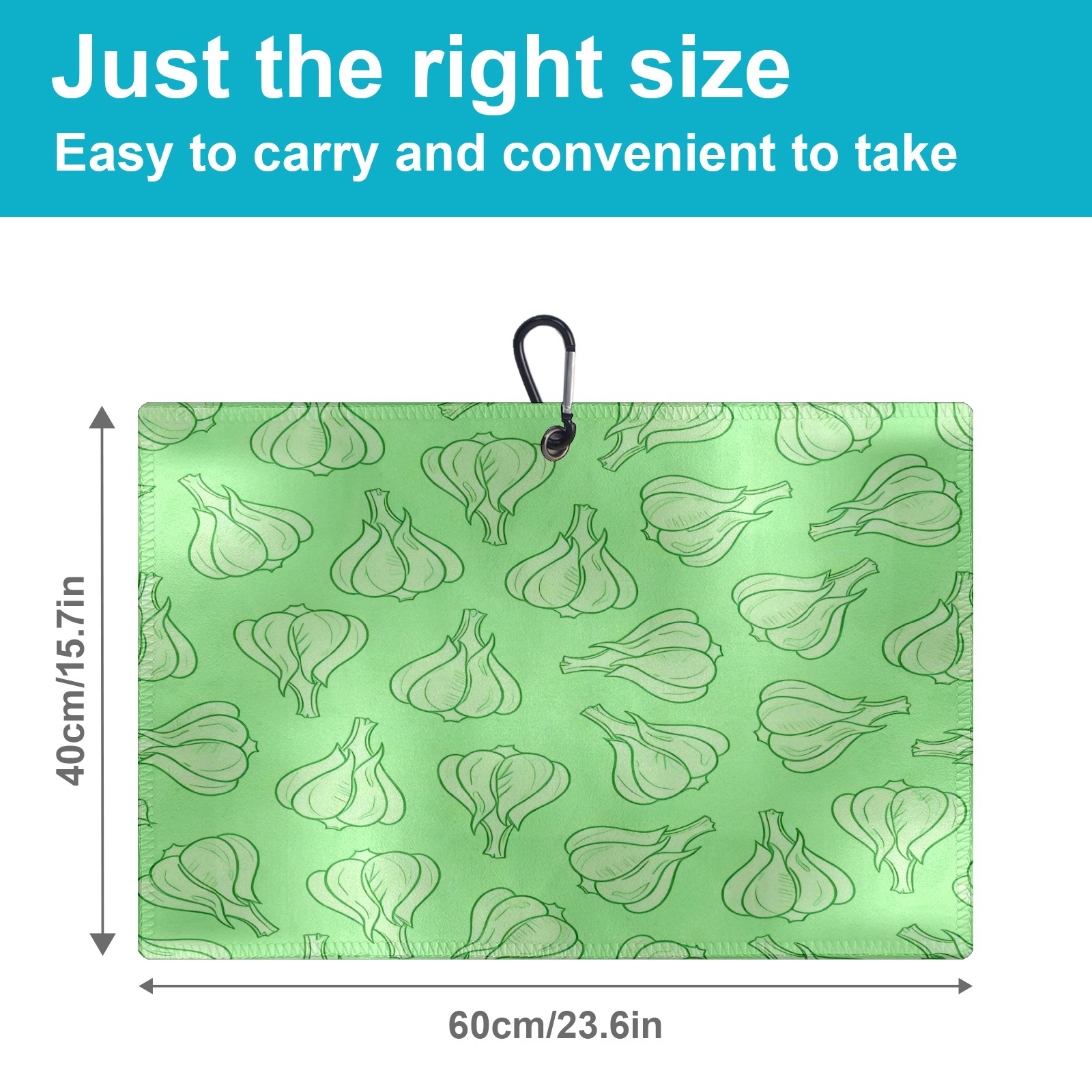 Golf Towel Microfiber Pocket Towels with Buckle Clip, Quick Dry Golf Ball Cleaner Accessories for Course Exercise TowelGreen Garlic Pattern