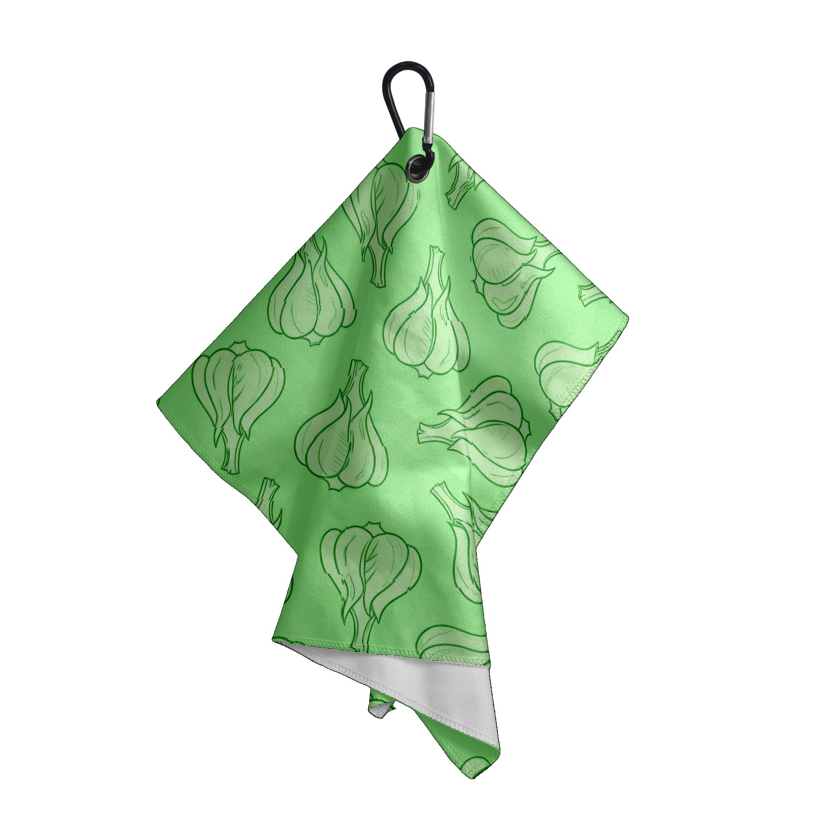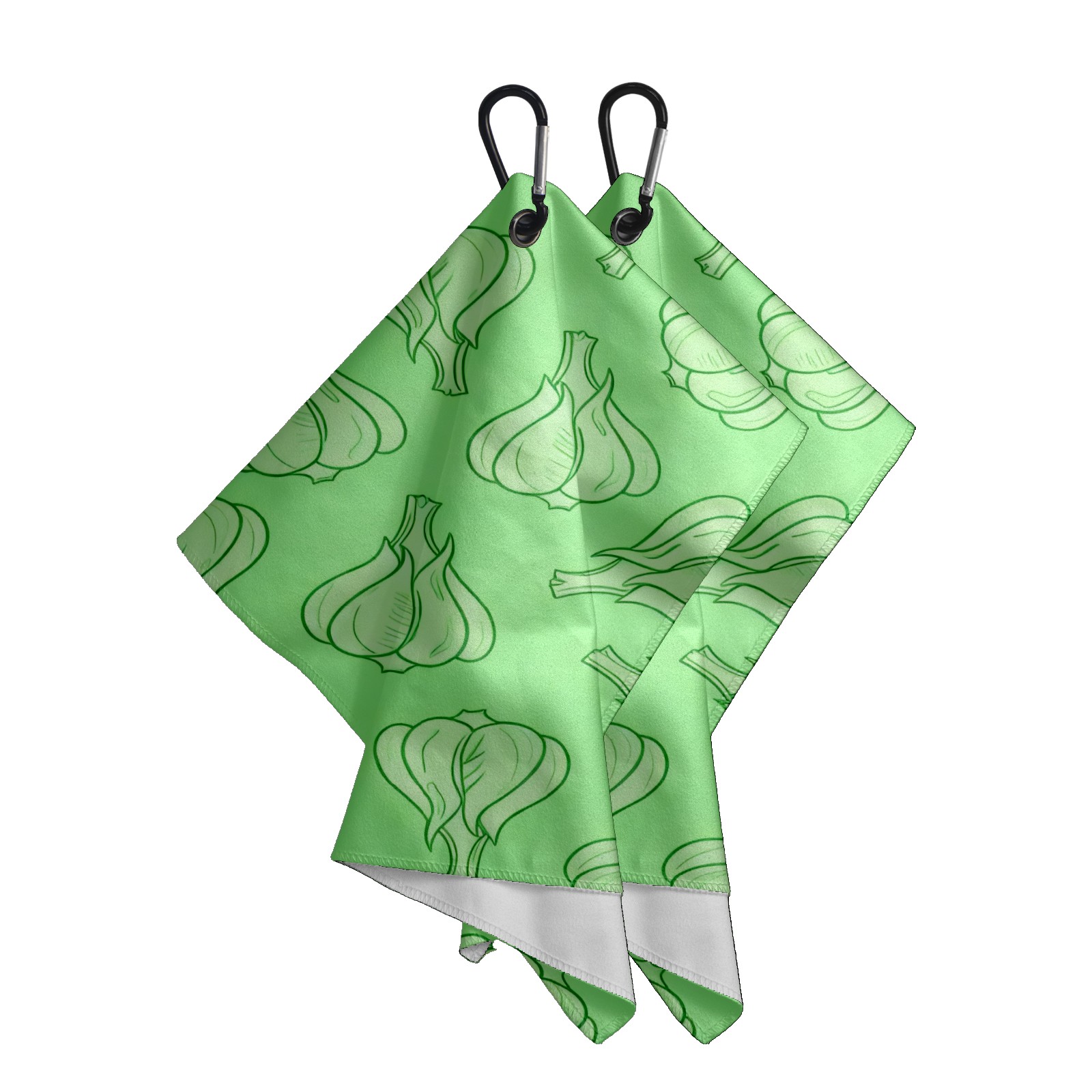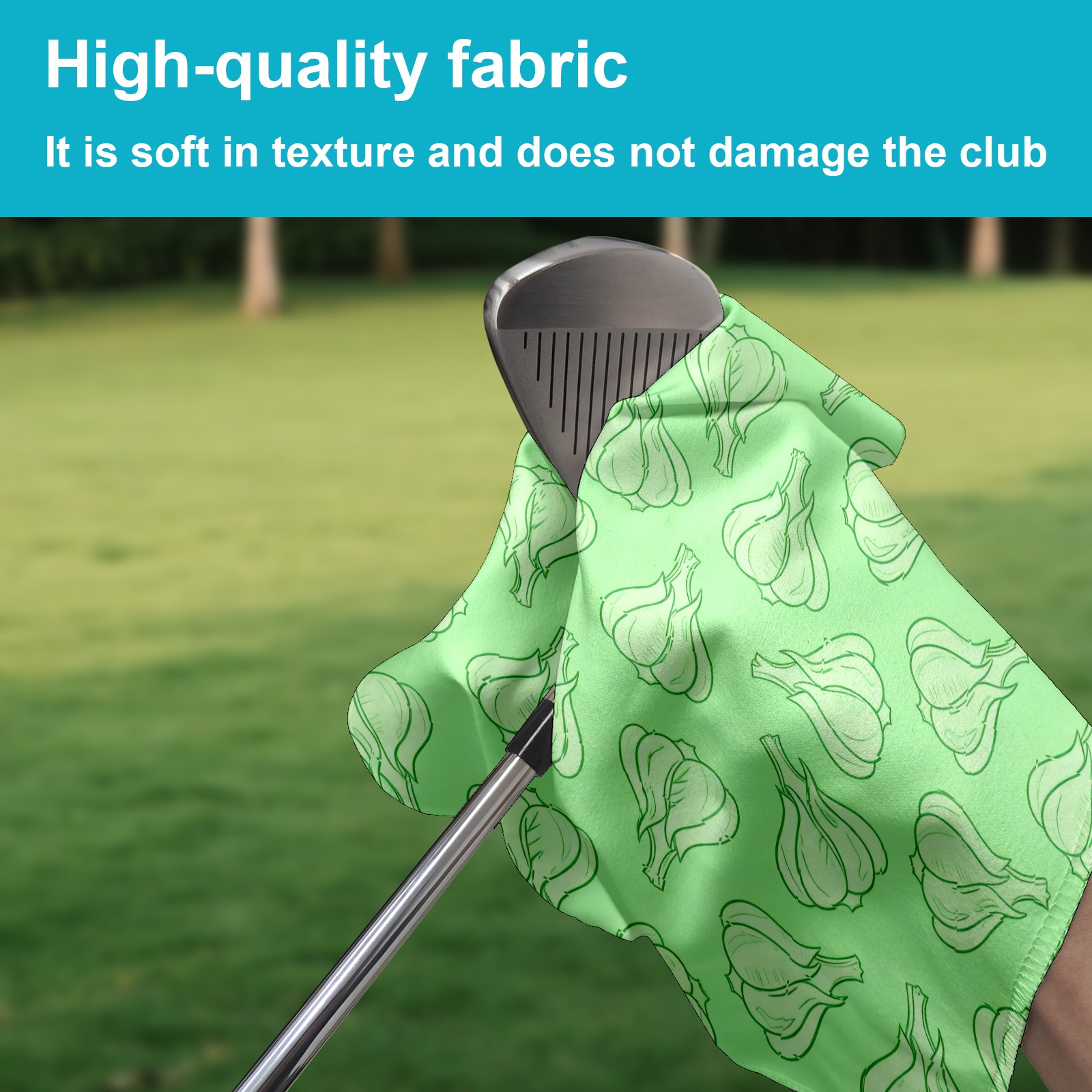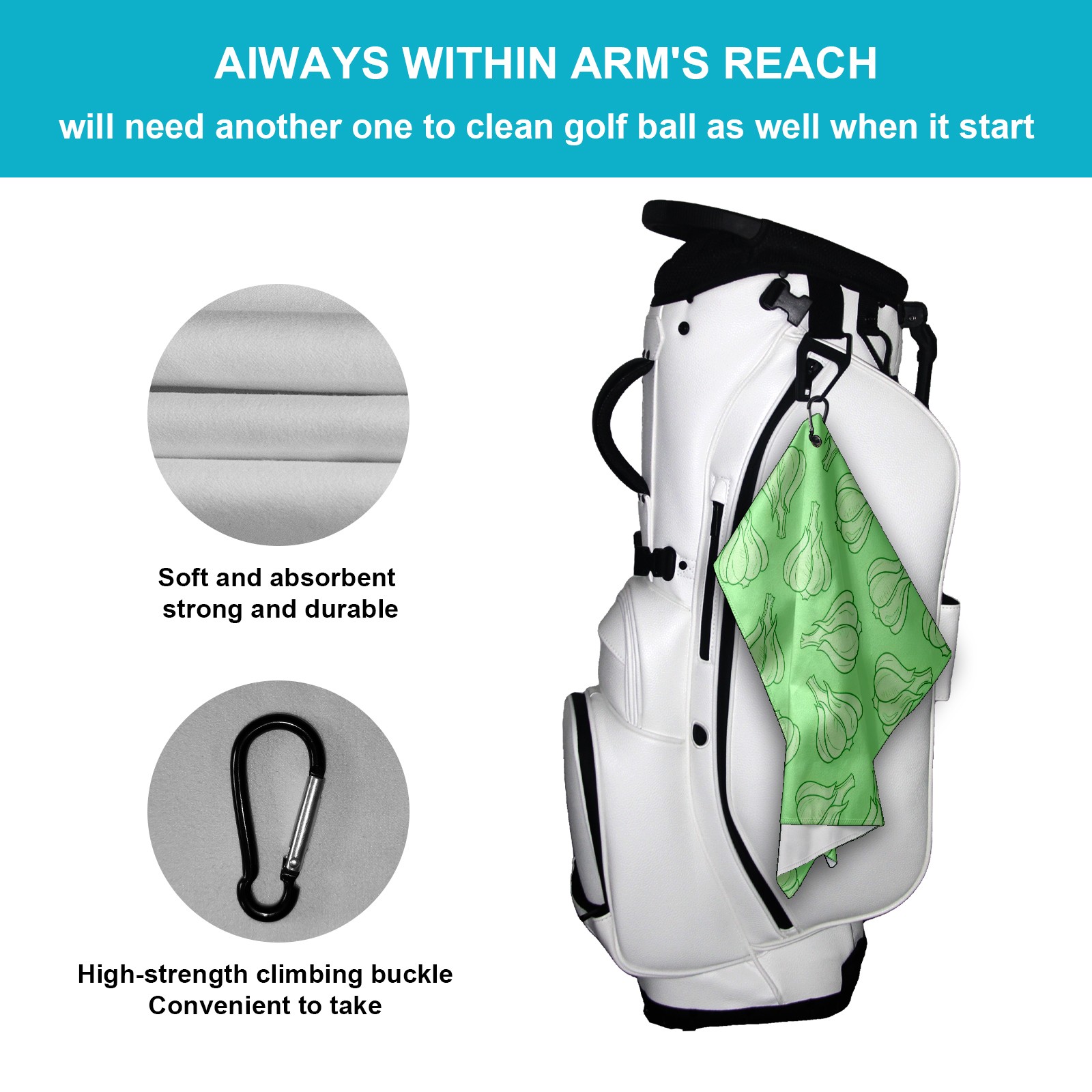 Golf Towel Microfiber Pocket Towels with Buckle Clip, Quick Dry Golf Ball Cleaner Accessories for Course Exercise TowelGreen Garlic Pattern