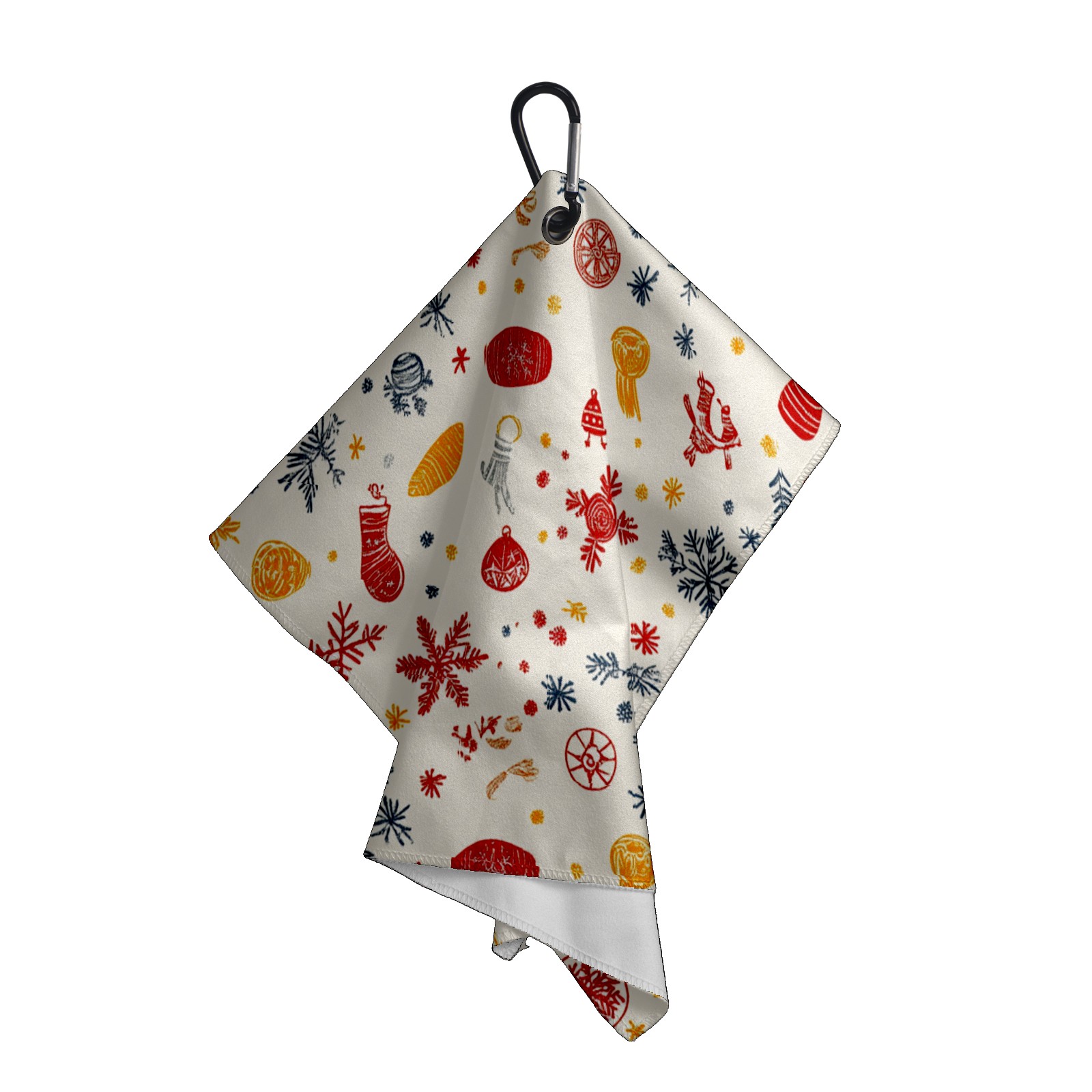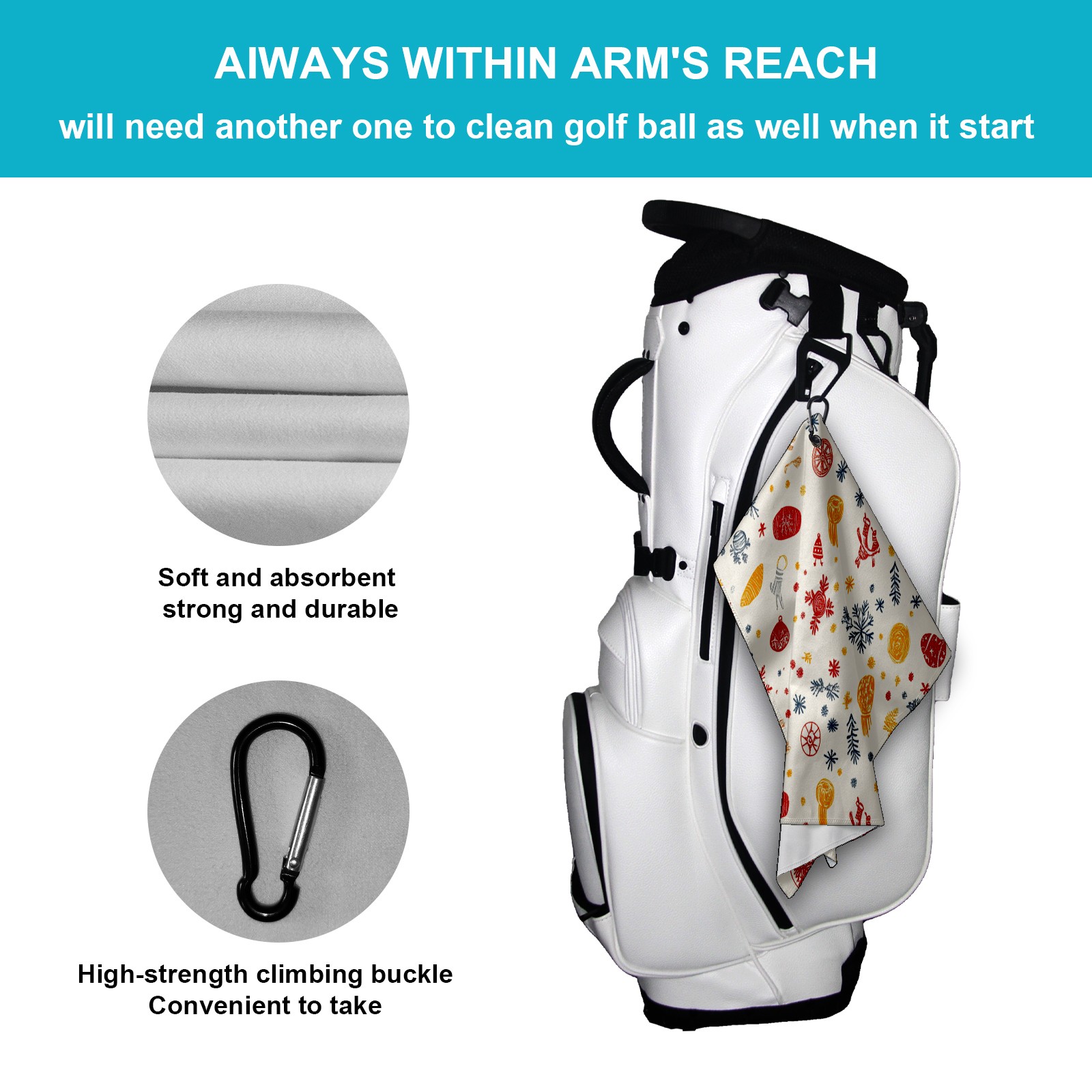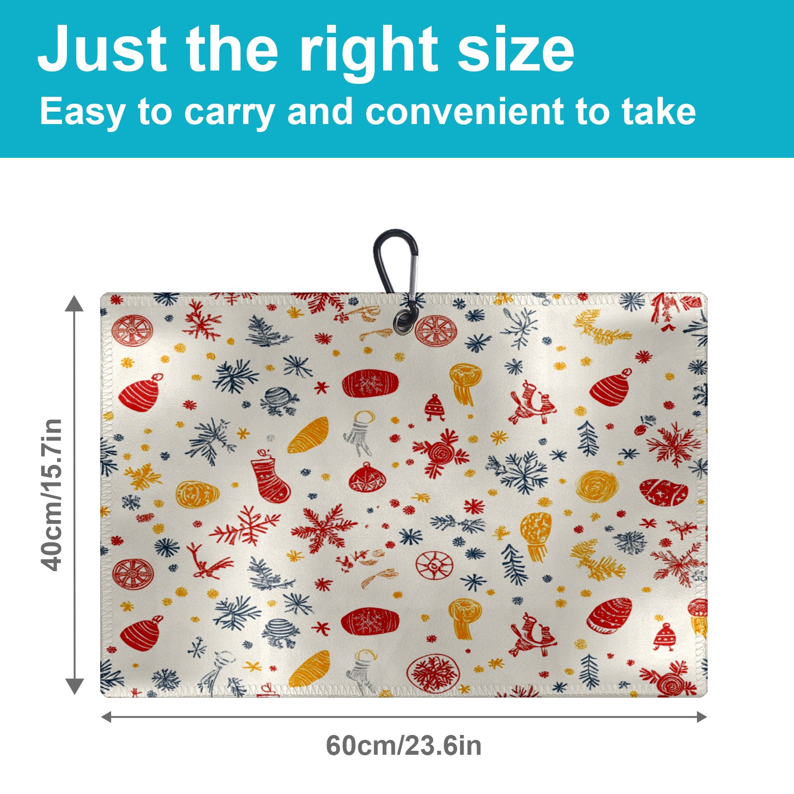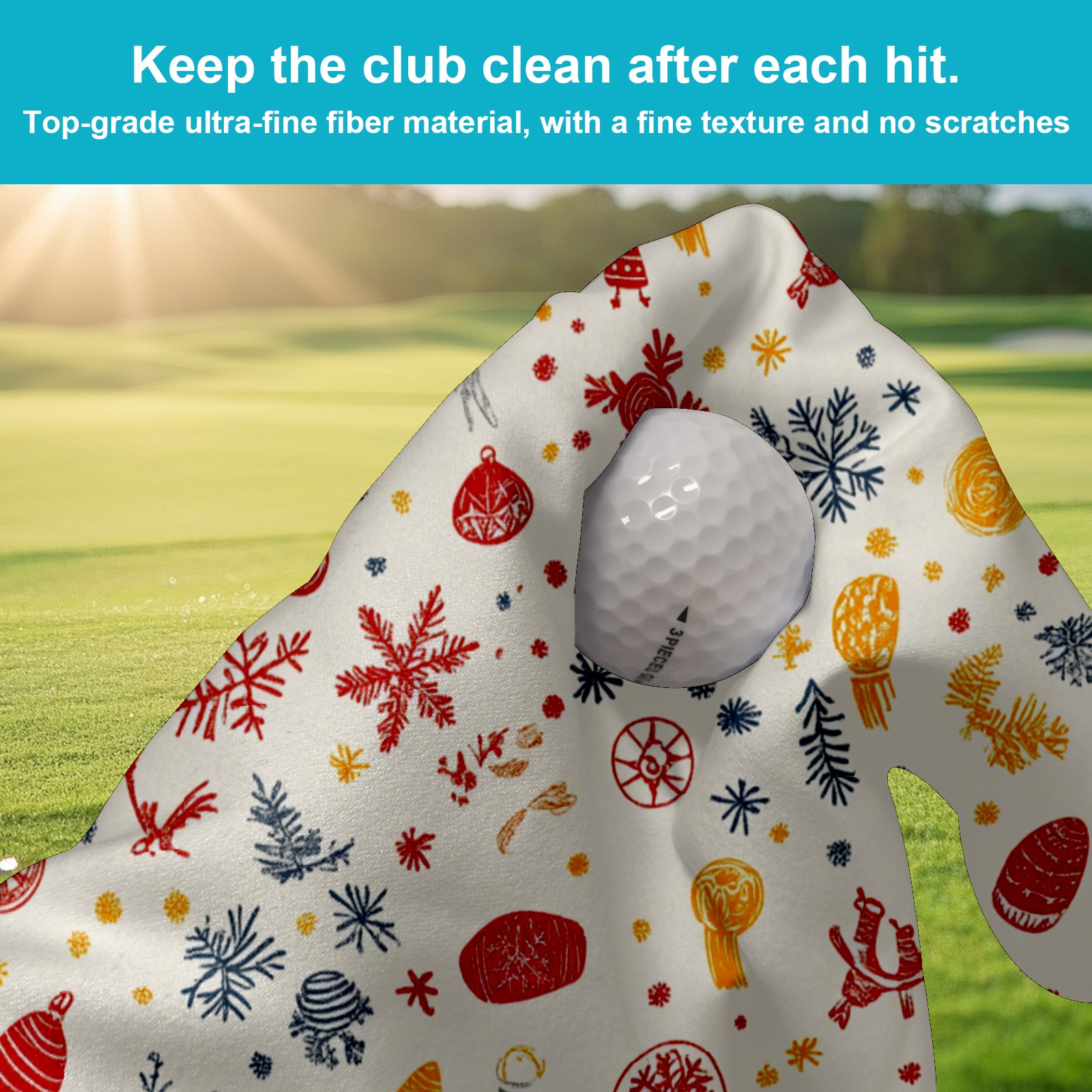Golf Towel Microfiber Pocket Towels with Buckle Clip, Quick Dry Golf Ball Cleaner Accessories for Course Exercise TowelSnowflake