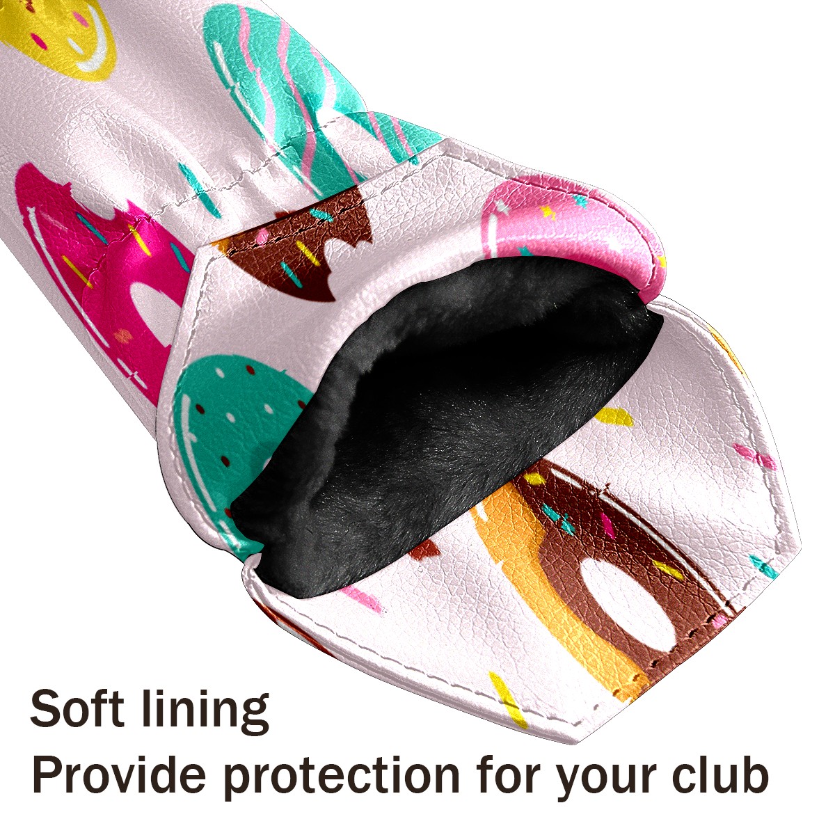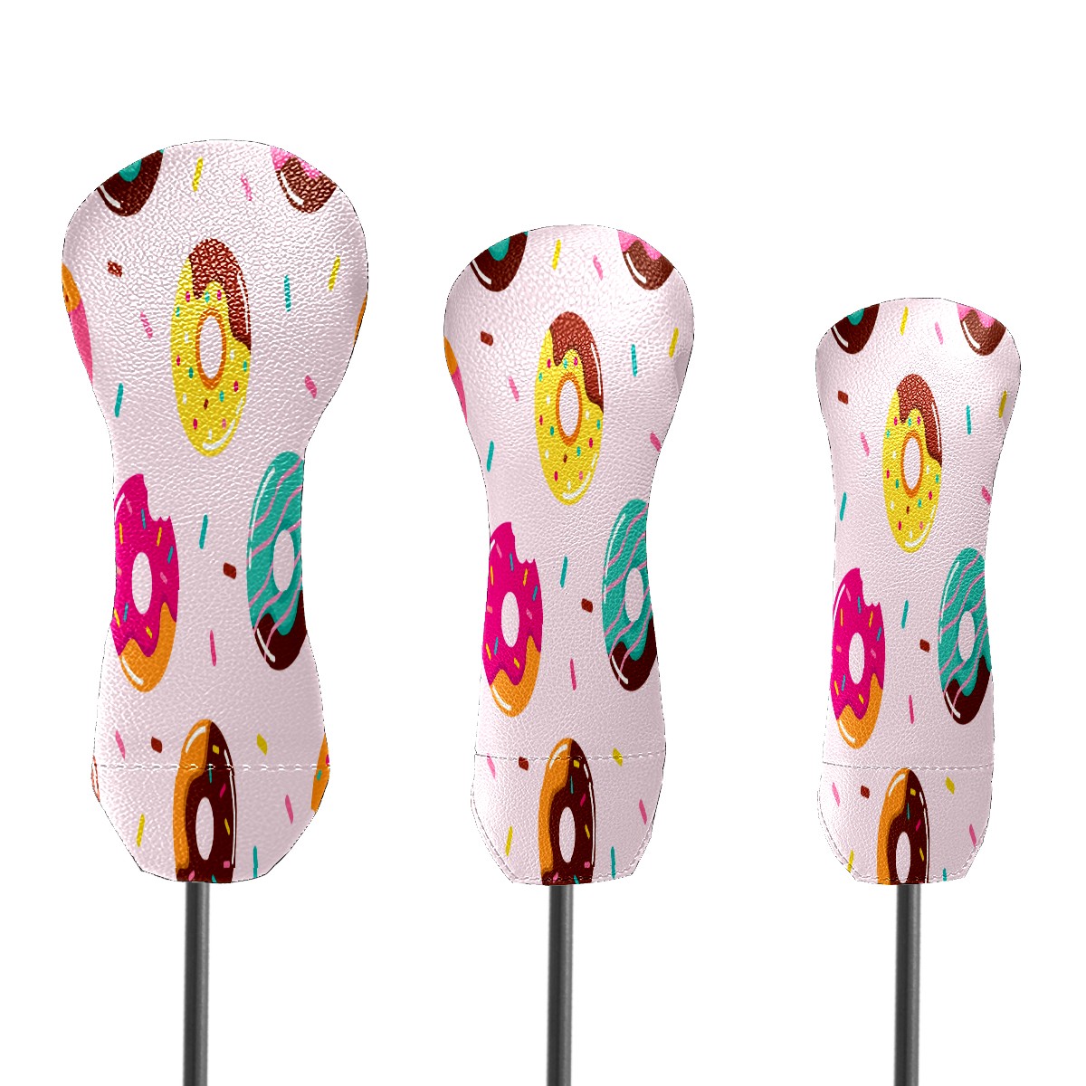 PU Leather Golf Putter Head Covers for Driver, Fairway Wood & Hybrid Clubs, Unisex, Fits All Brands Cartoon Donuts Pattern