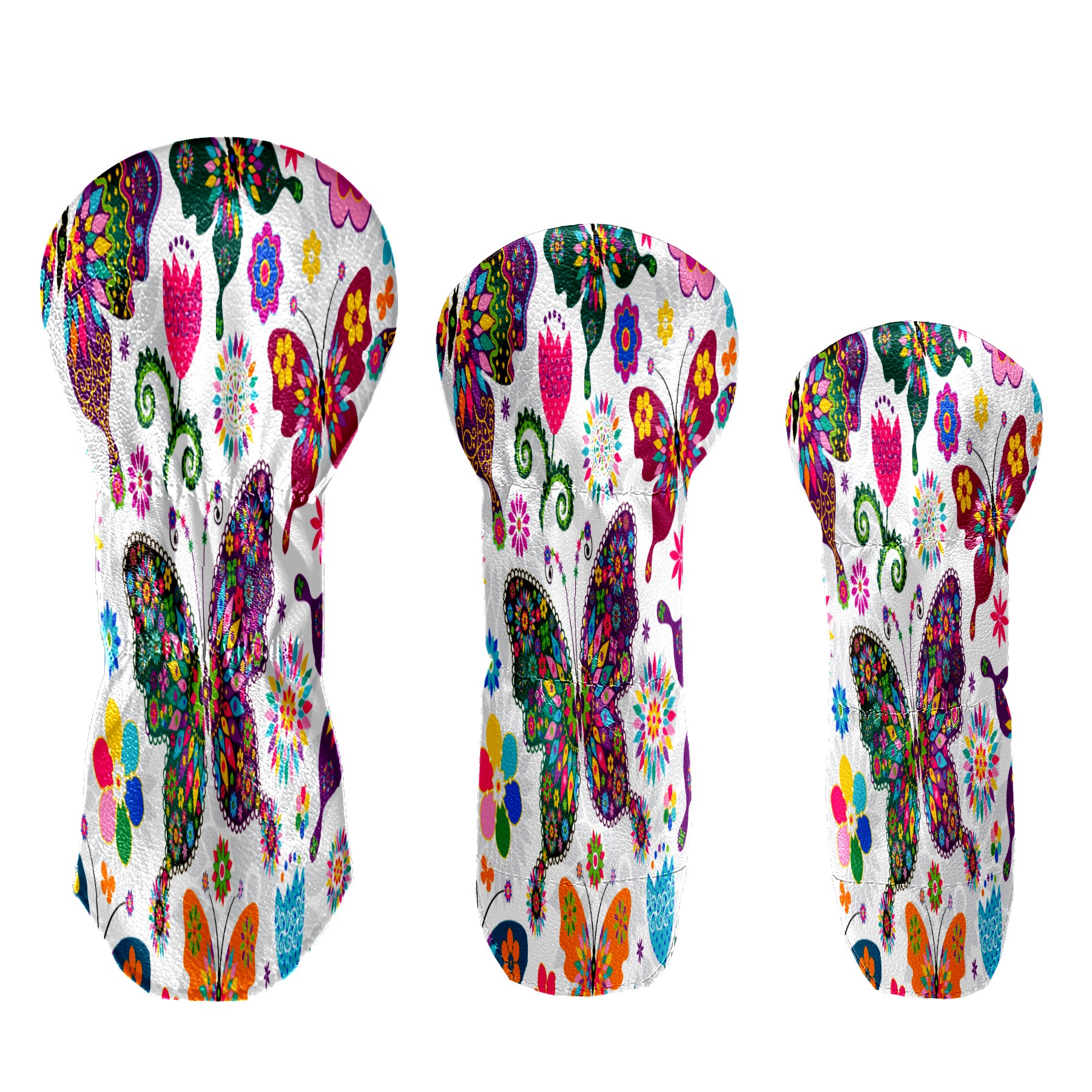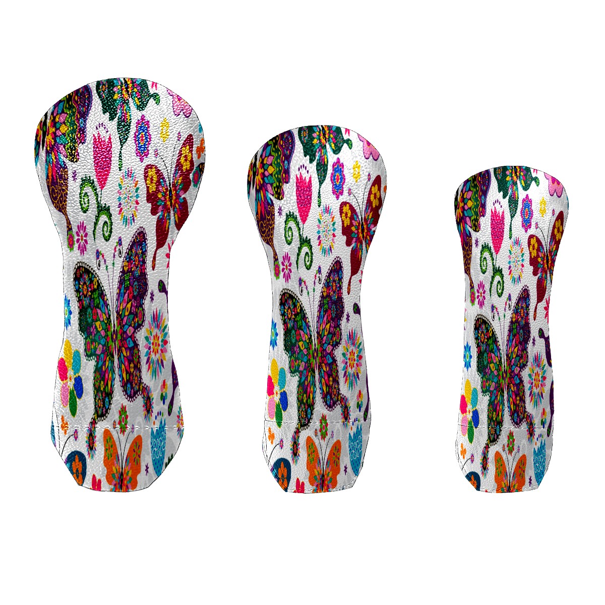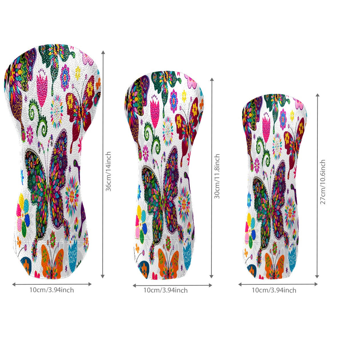 PU Leather Golf Putter Head Covers for Driver, Fairway Wood & Hybrid Clubs, Unisex, Fits All Brands Colorful Butterflies Floral Pattern