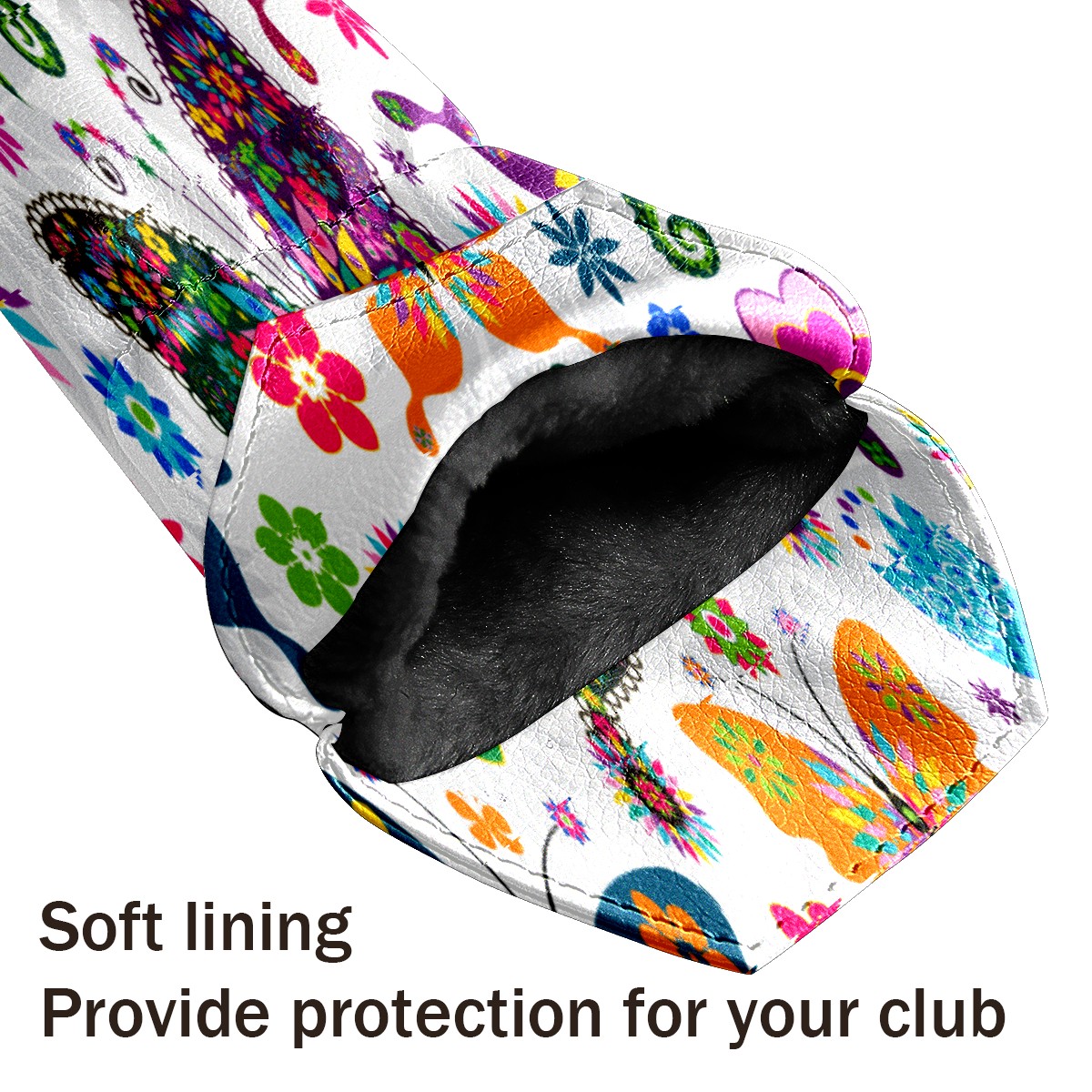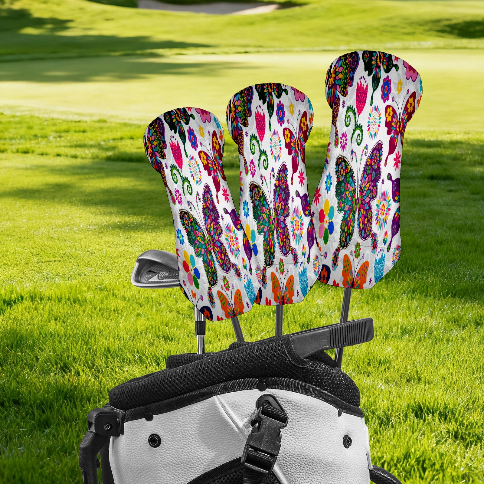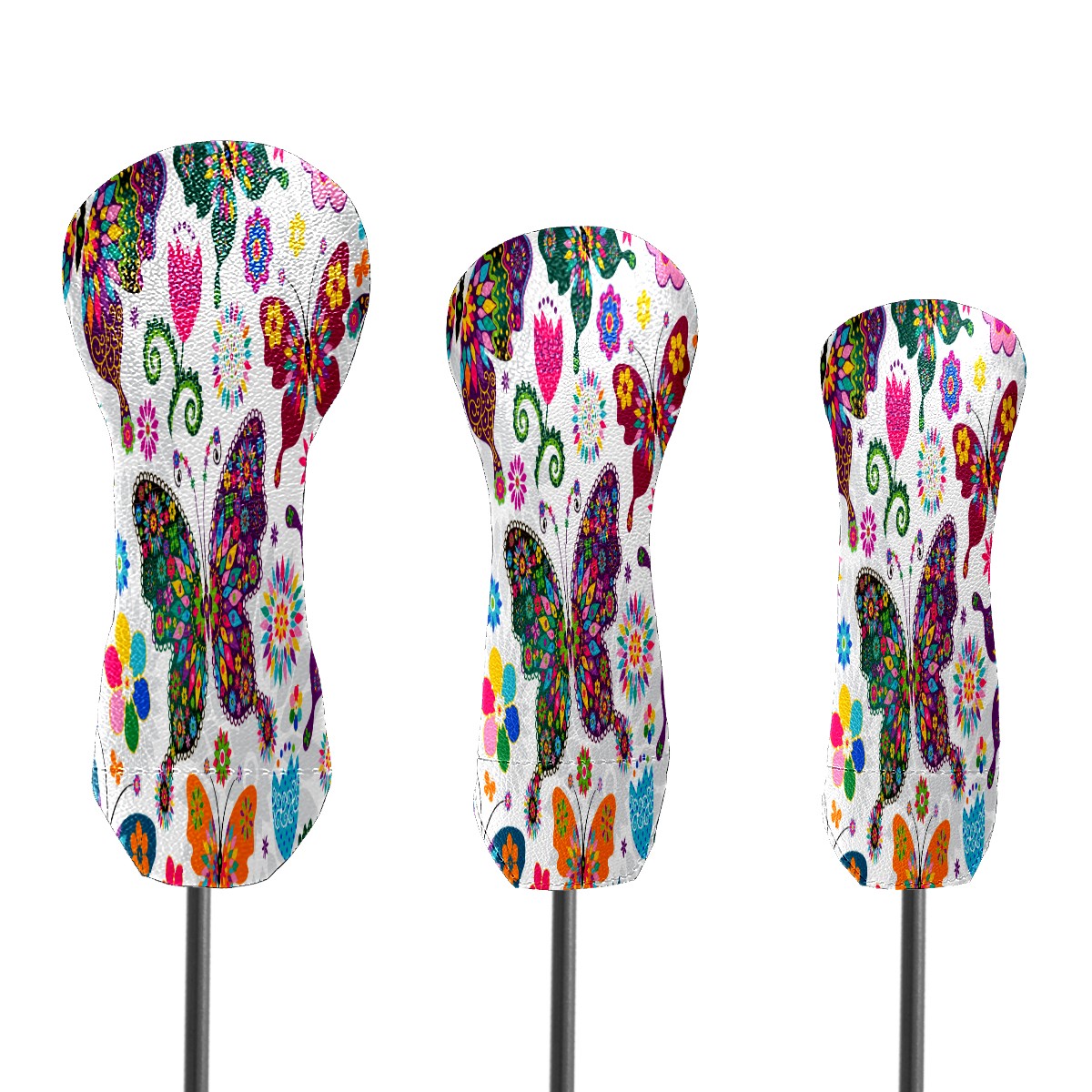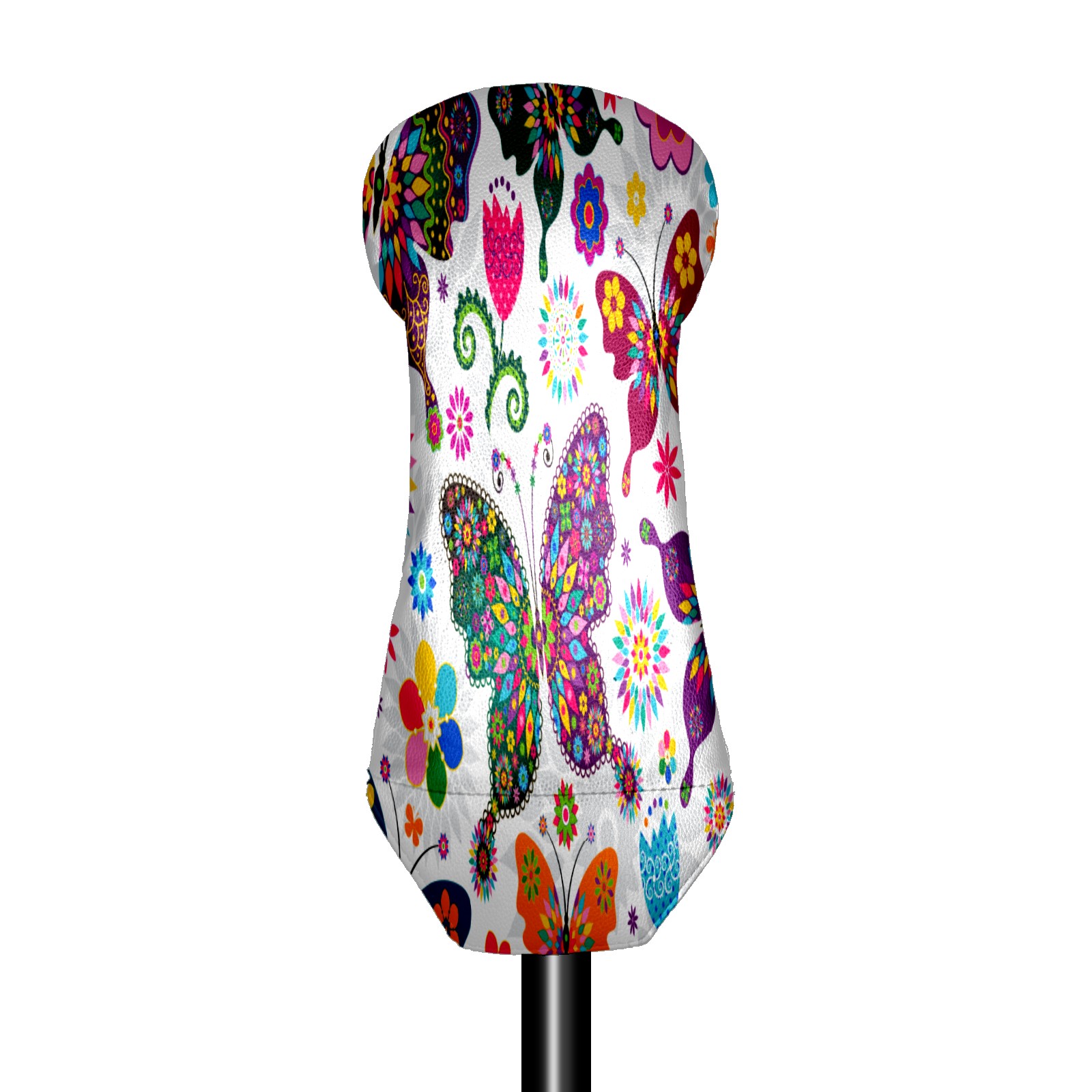 PU Leather Golf Putter Head Covers for Driver, Fairway Wood & Hybrid Clubs, Unisex, Fits All Brands Colorful Butterflies Floral Pattern