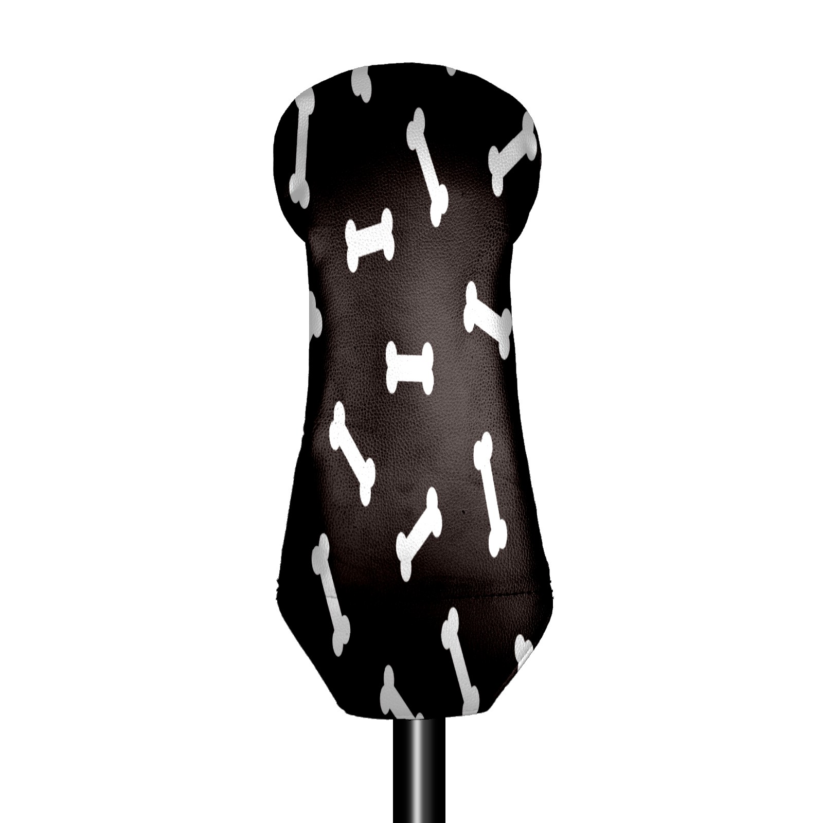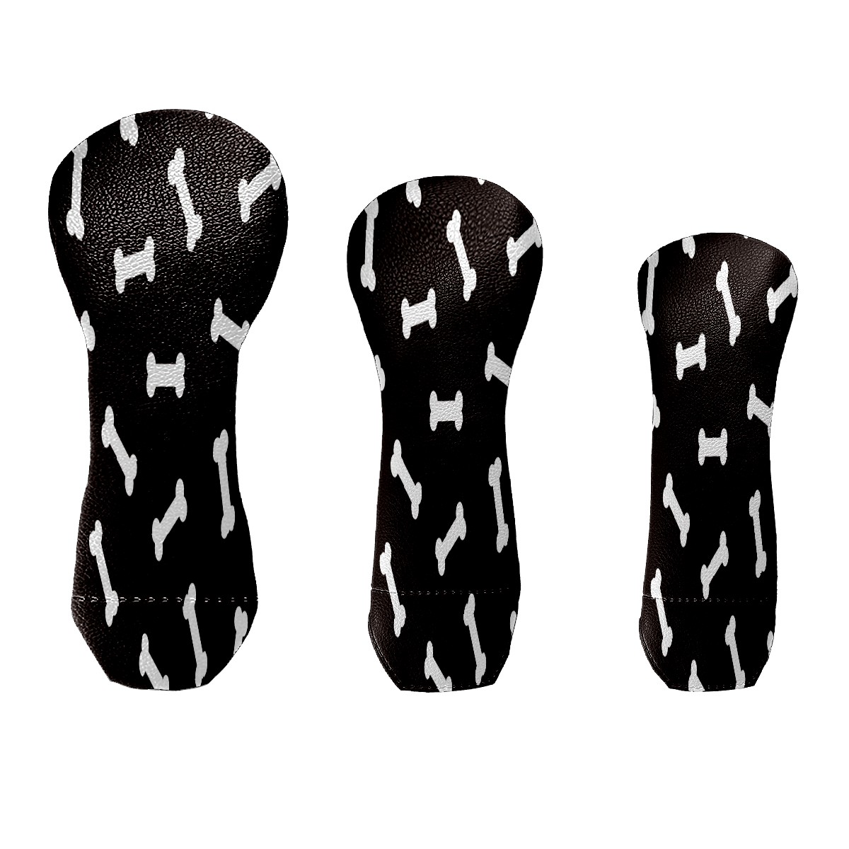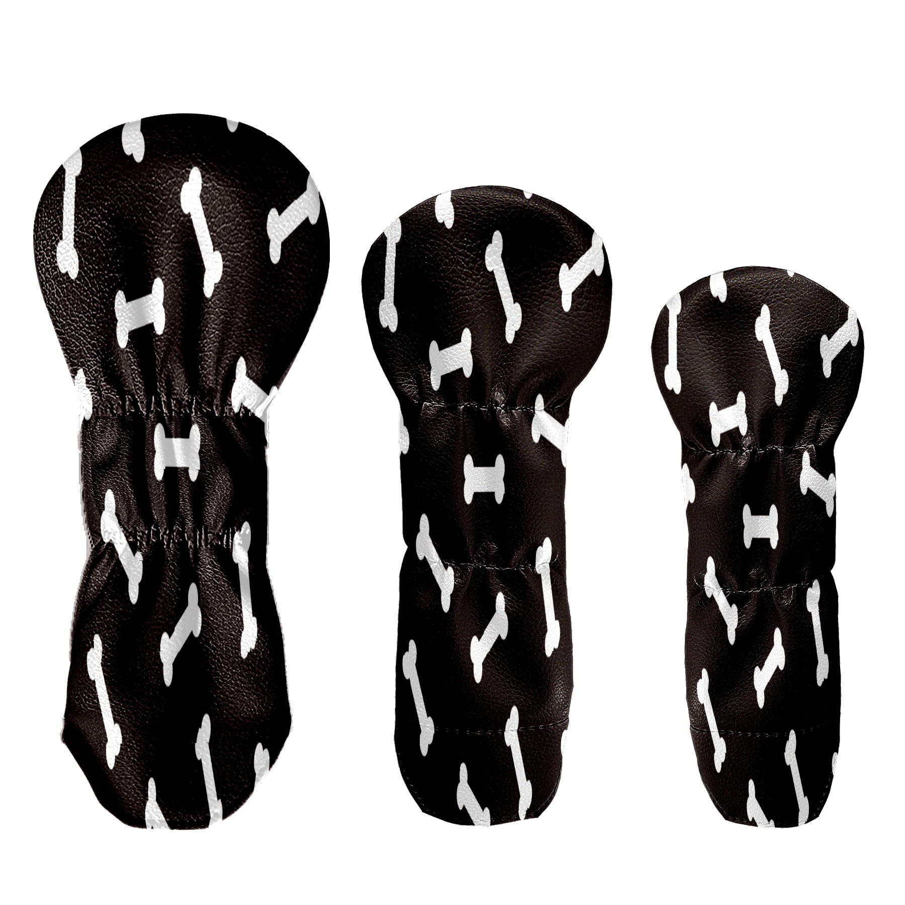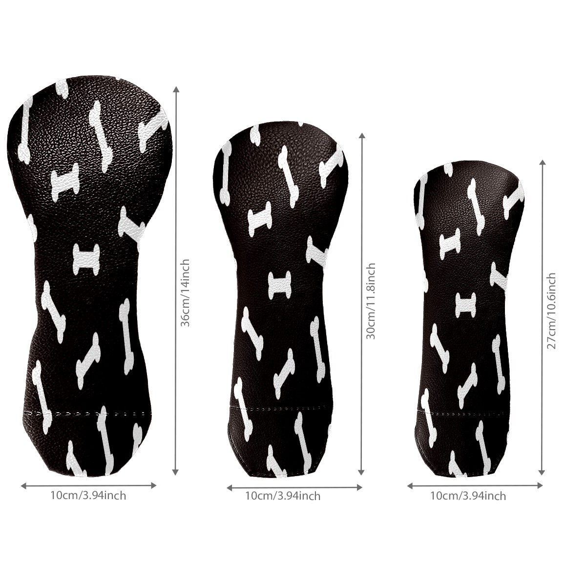 PU Leather Golf Putter Head Covers for Driver, Fairway Wood & Hybrid Clubs, Unisex, Fits All Brands White Dog Bone Black Bacground