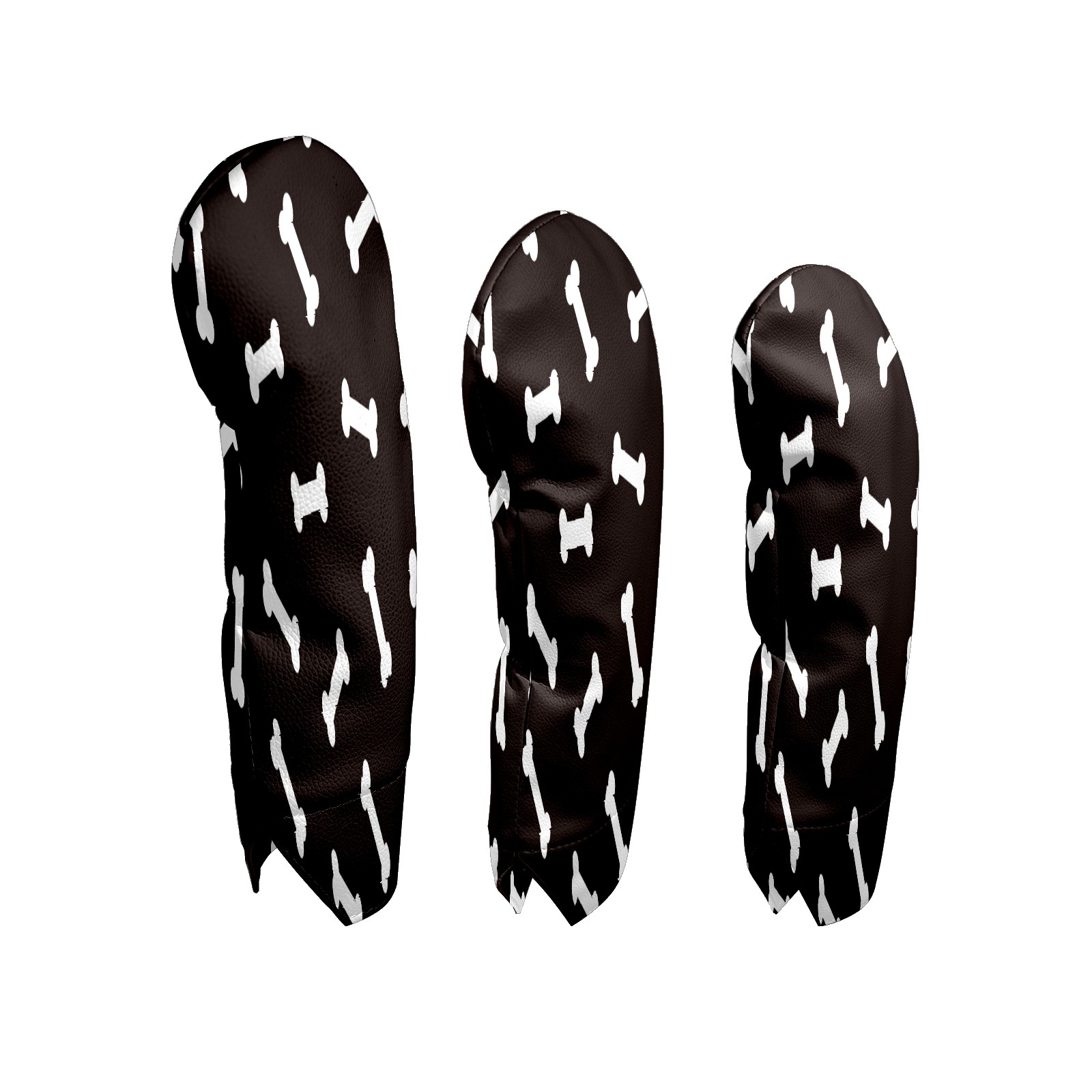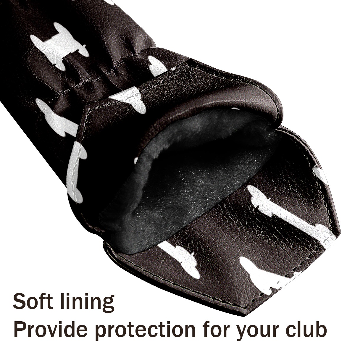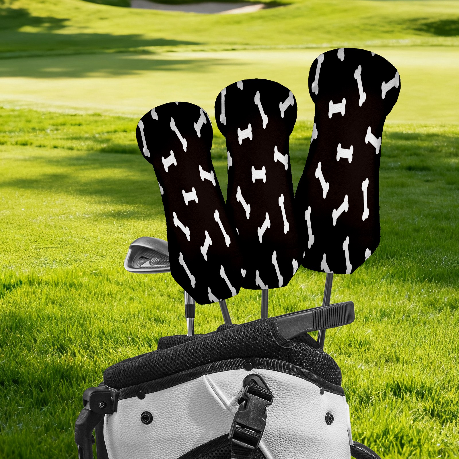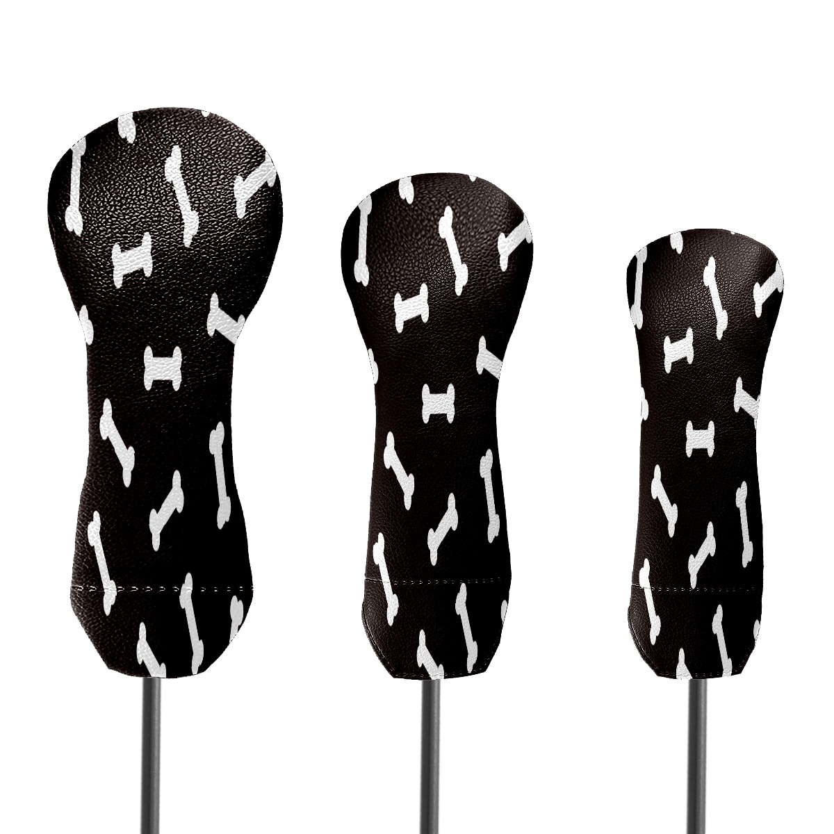 PU Leather Golf Putter Head Covers for Driver, Fairway Wood & Hybrid Clubs, Unisex, Fits All Brands White Dog Bone Black Bacground