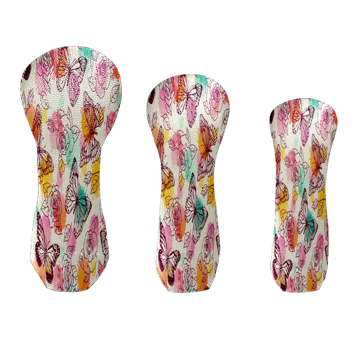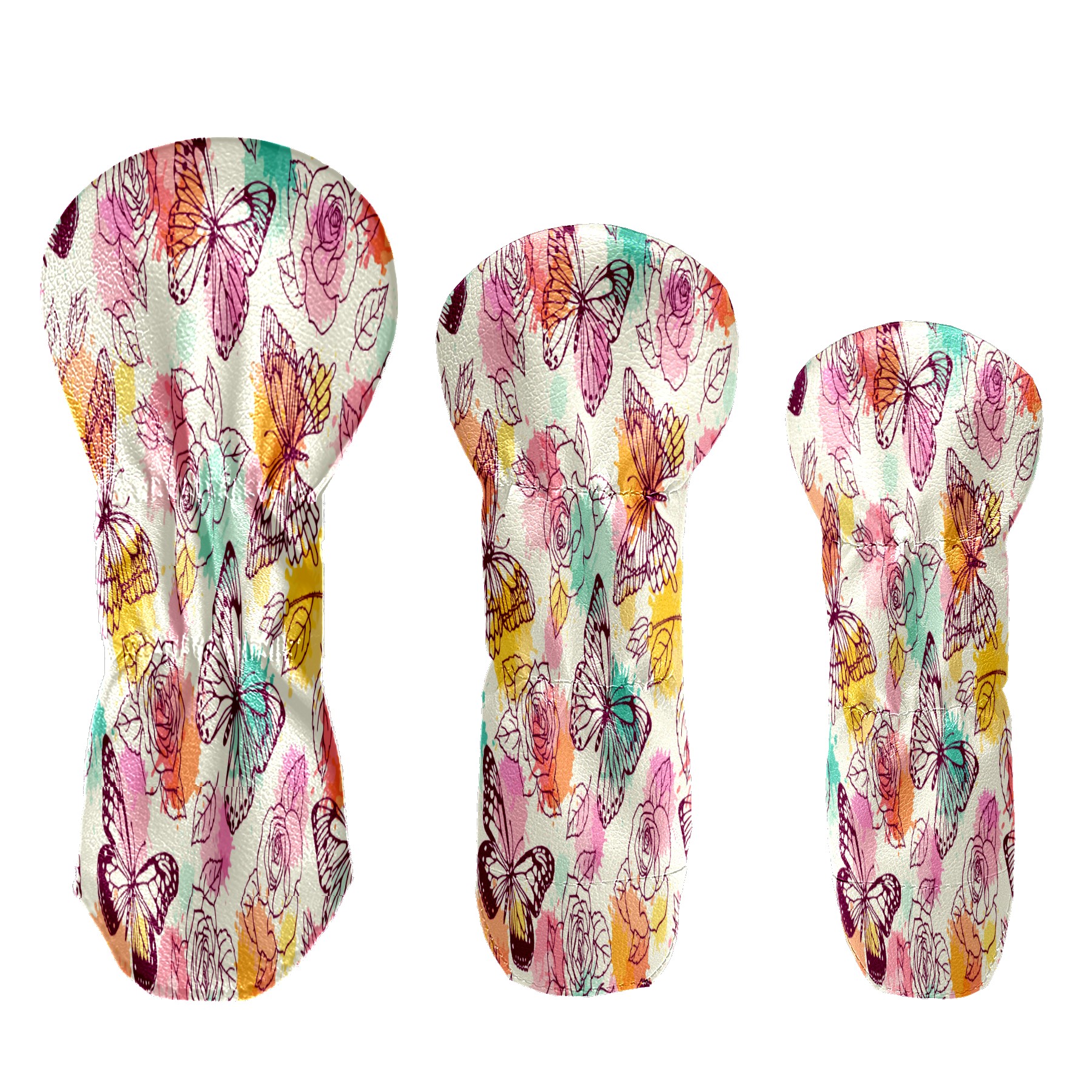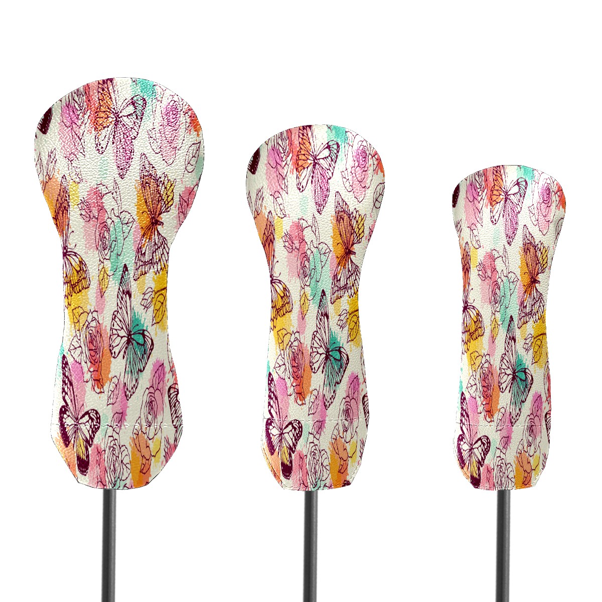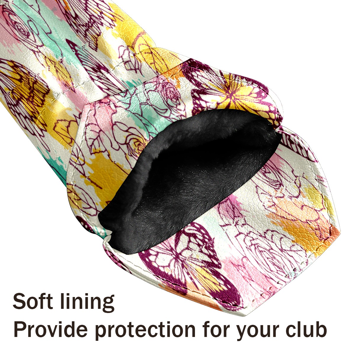 PU Leather Golf Putter Head Covers for Driver, Fairway Wood & Hybrid Clubs, Unisex, Fits All Brands Vintage Retro Butterfly Rose Pattern