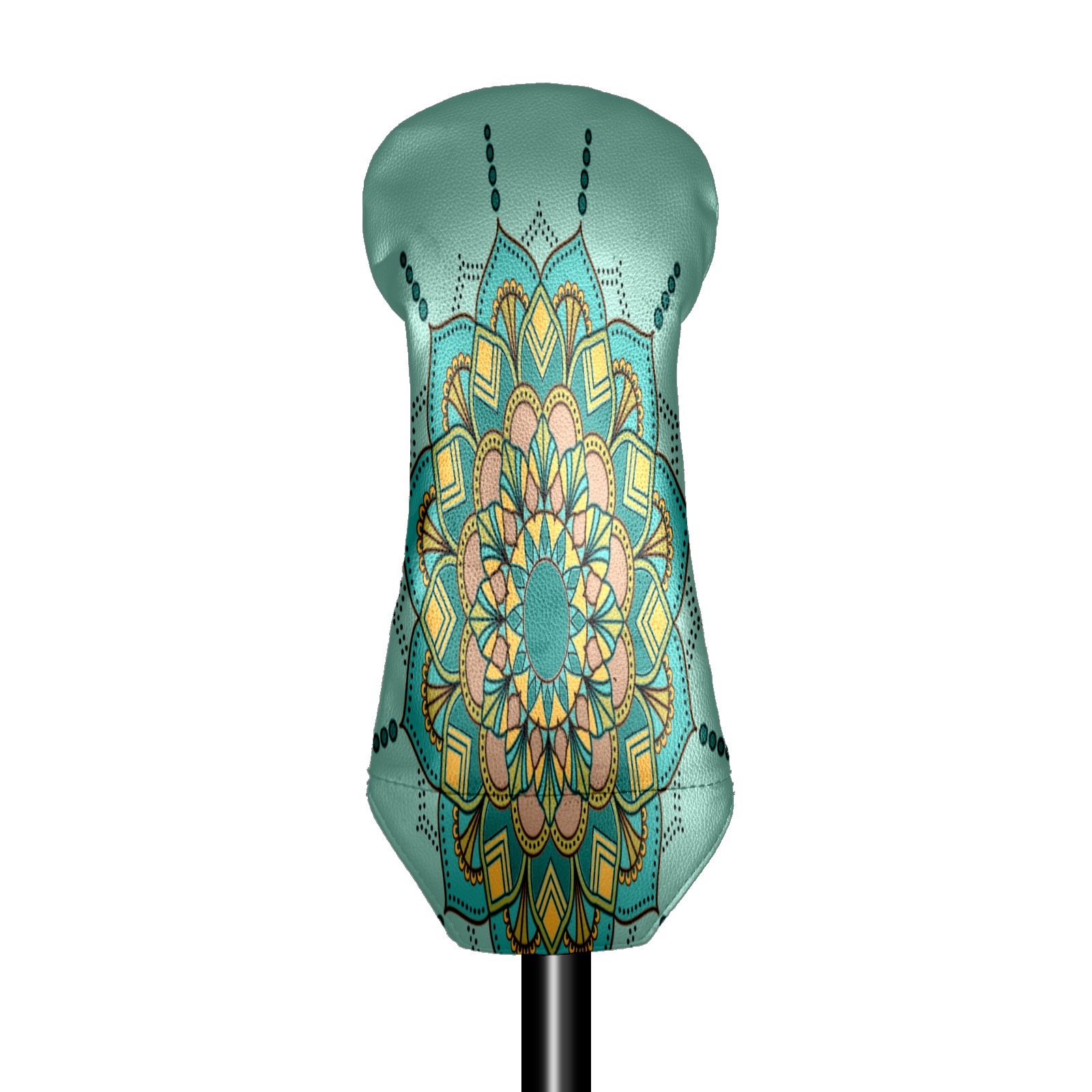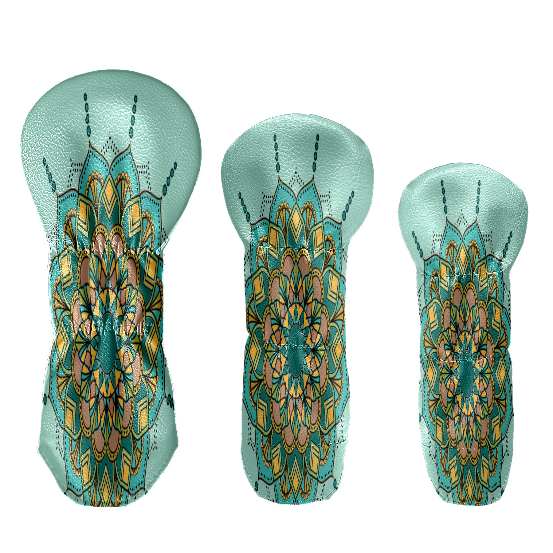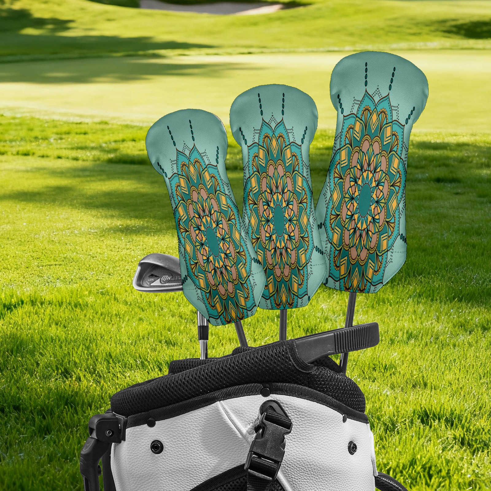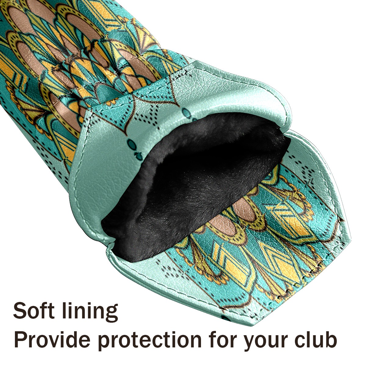 PU Leather Golf Putter Head Covers for Driver, Fairway Wood & Hybrid Clubs, Unisex, Fits All Brands Mandala Boho Green Floral