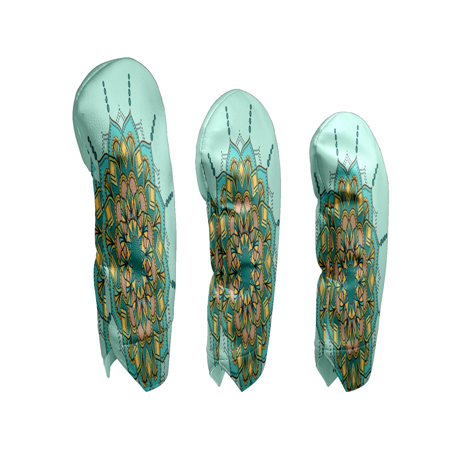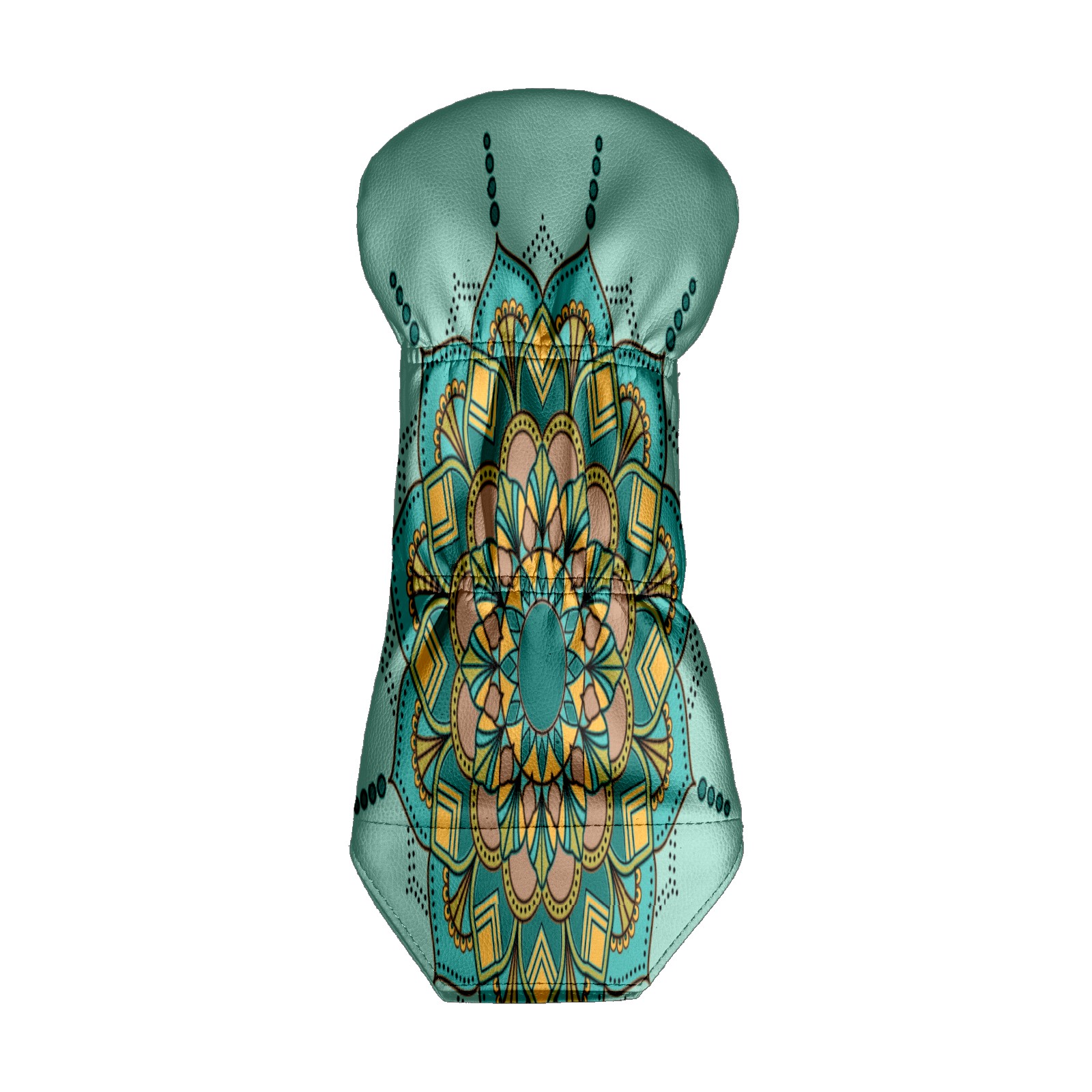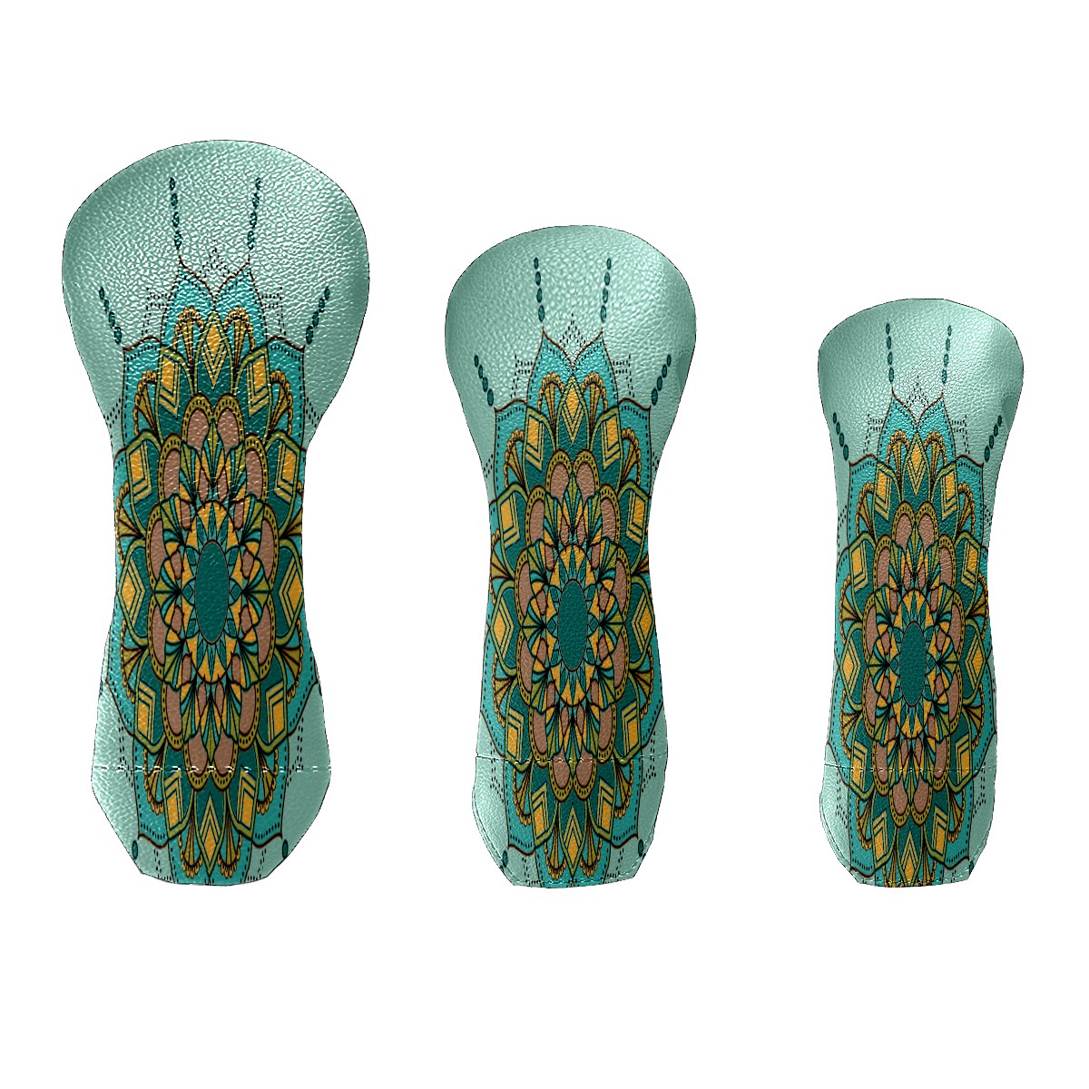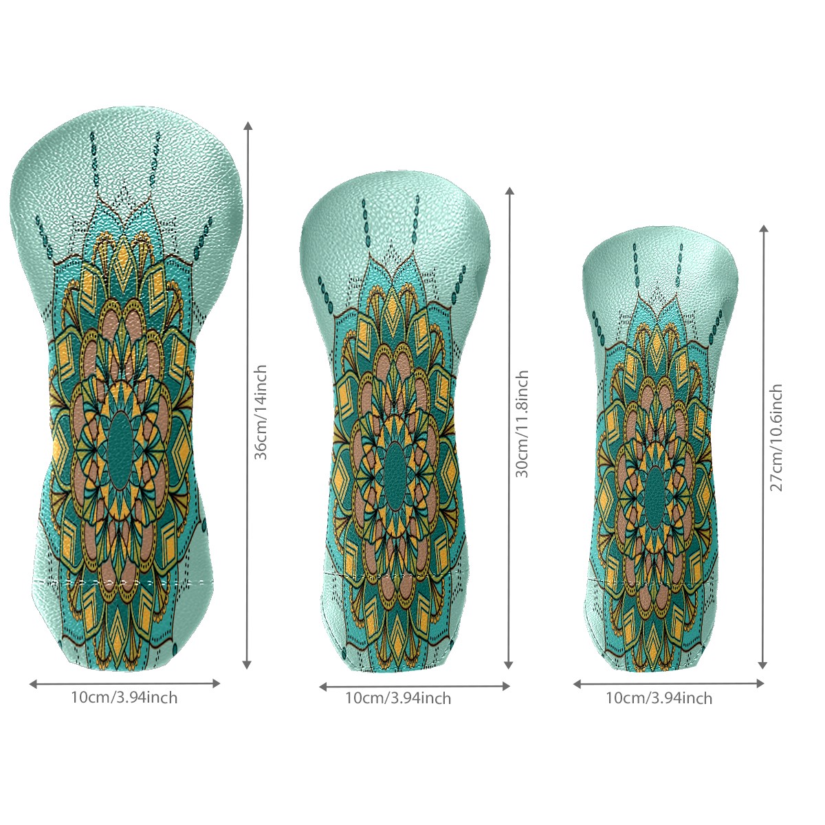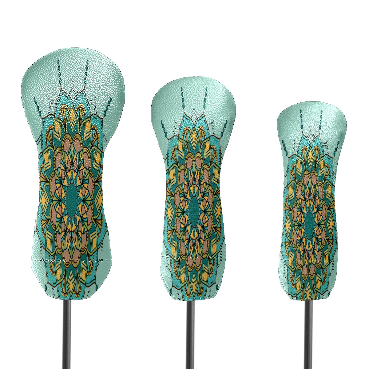 PU Leather Golf Putter Head Covers for Driver, Fairway Wood & Hybrid Clubs, Unisex, Fits All Brands Mandala Boho Green Floral