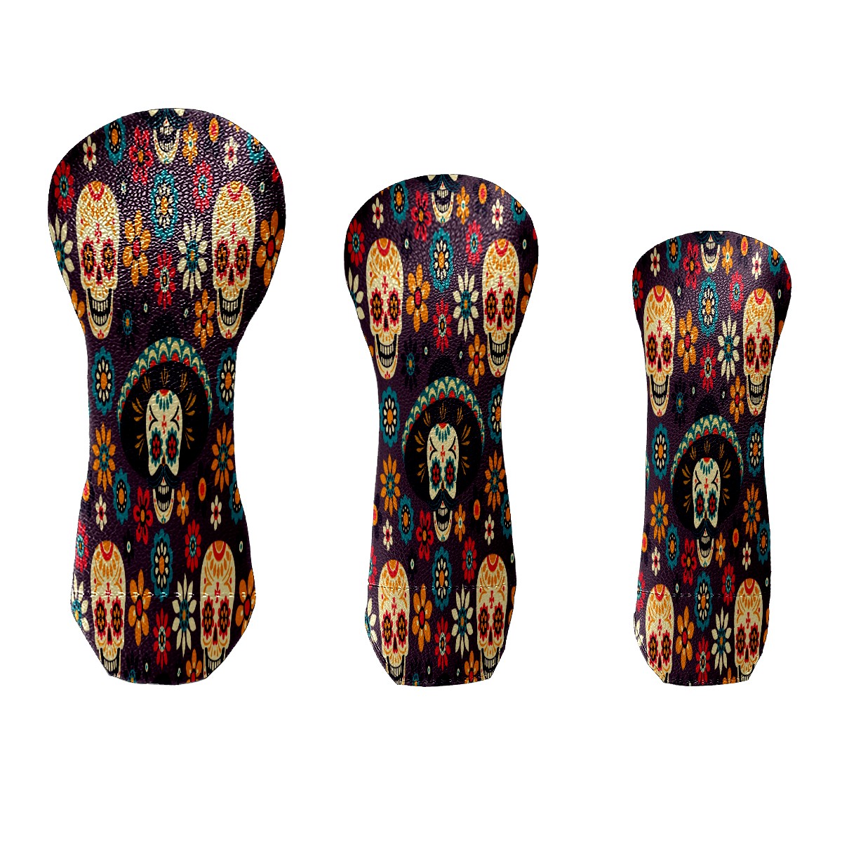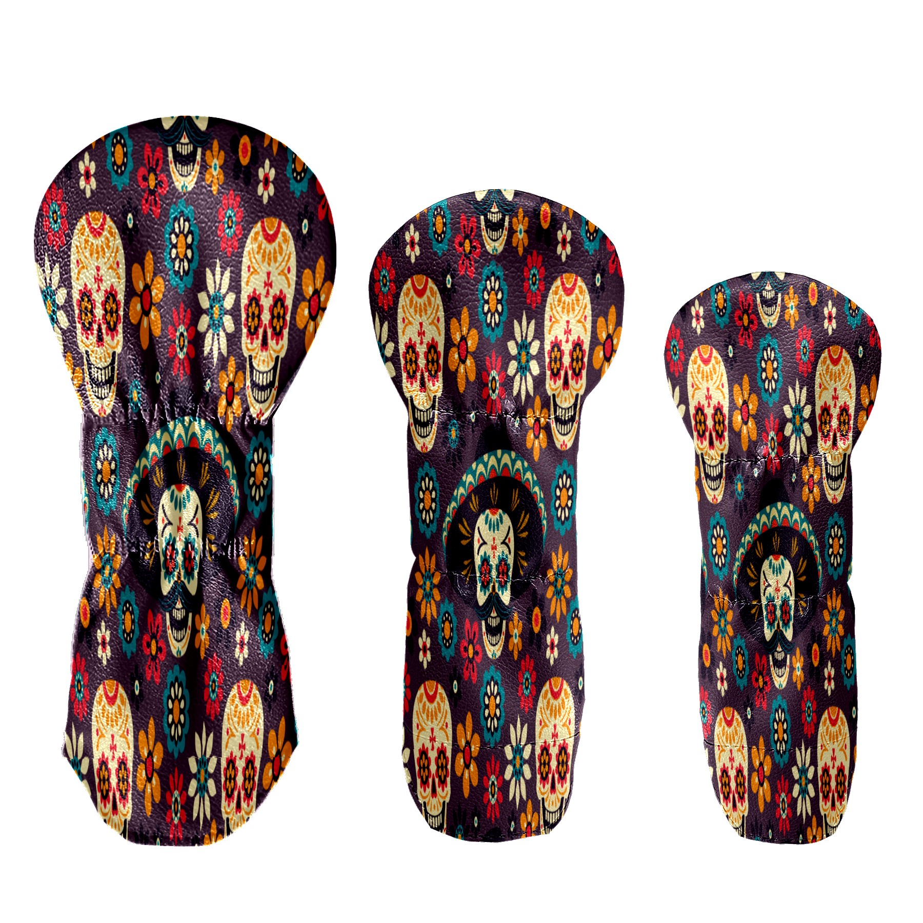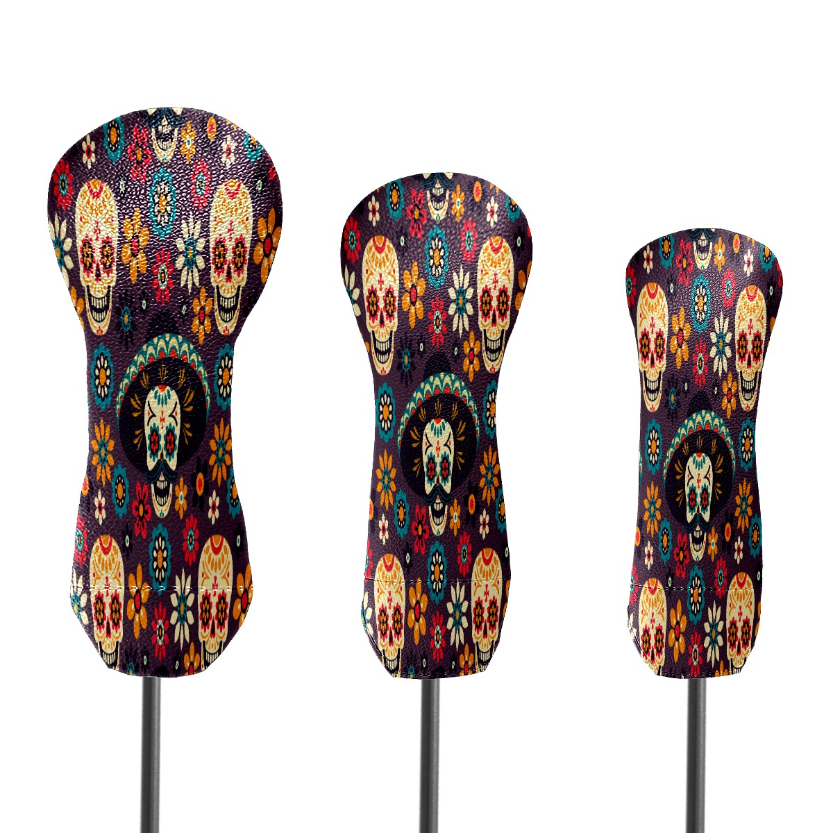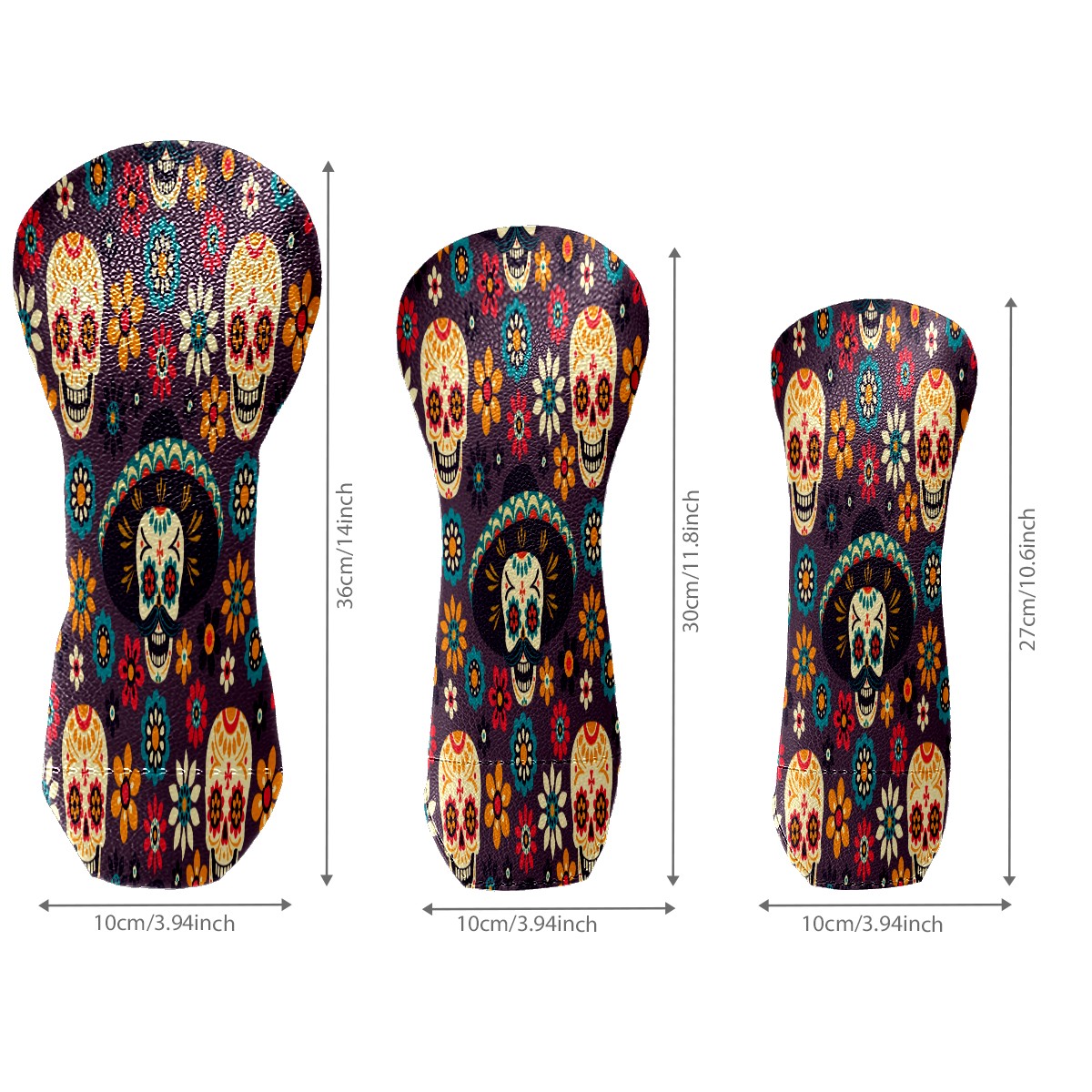 PU Leather Golf Putter Head Covers for Driver, Fairway Wood & Hybrid Clubs, Unisex, Fits All Brands Mexico Colorful Sugar Skull Floral Pattern