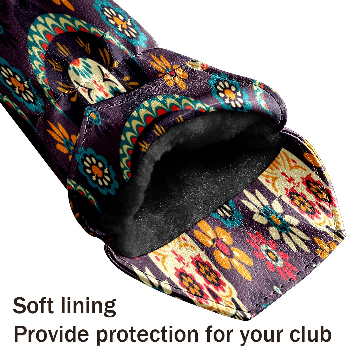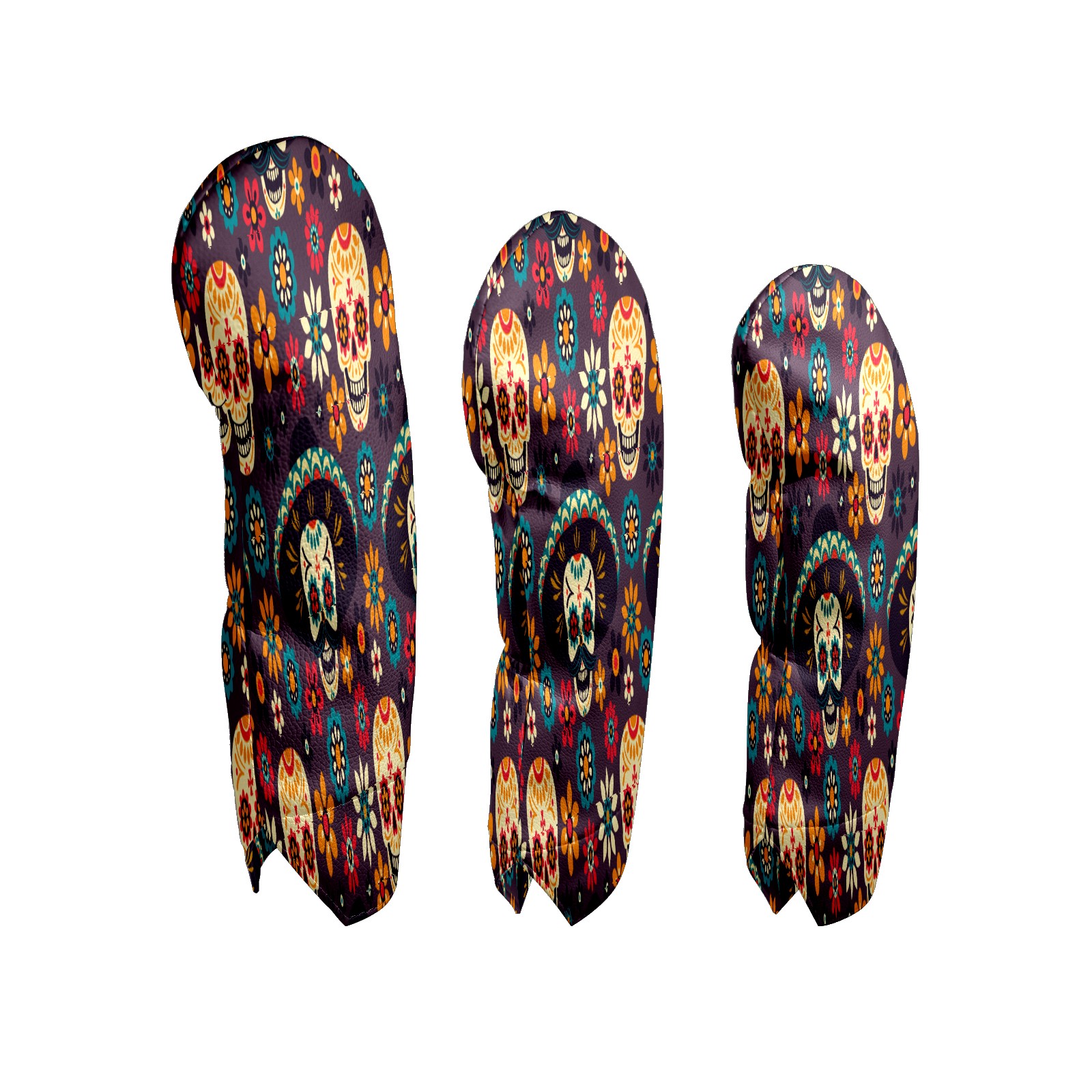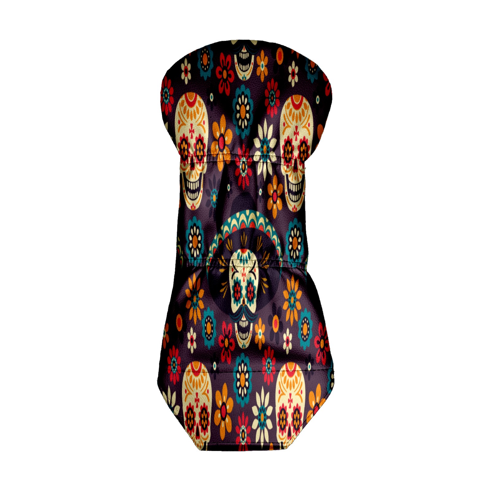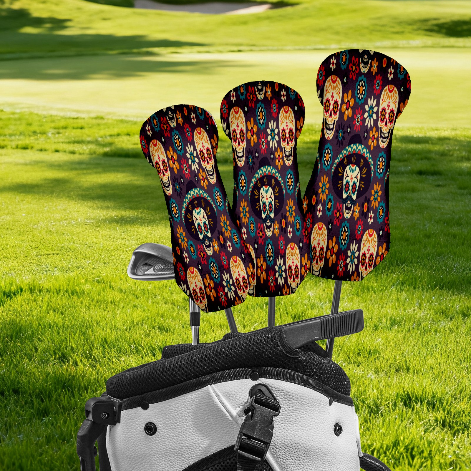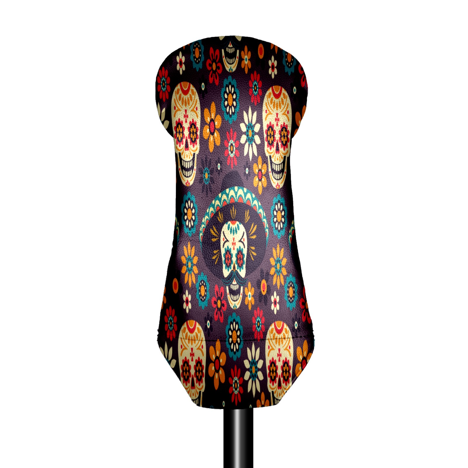 PU Leather Golf Putter Head Covers for Driver, Fairway Wood & Hybrid Clubs, Unisex, Fits All Brands Mexico Colorful Sugar Skull Floral Pattern