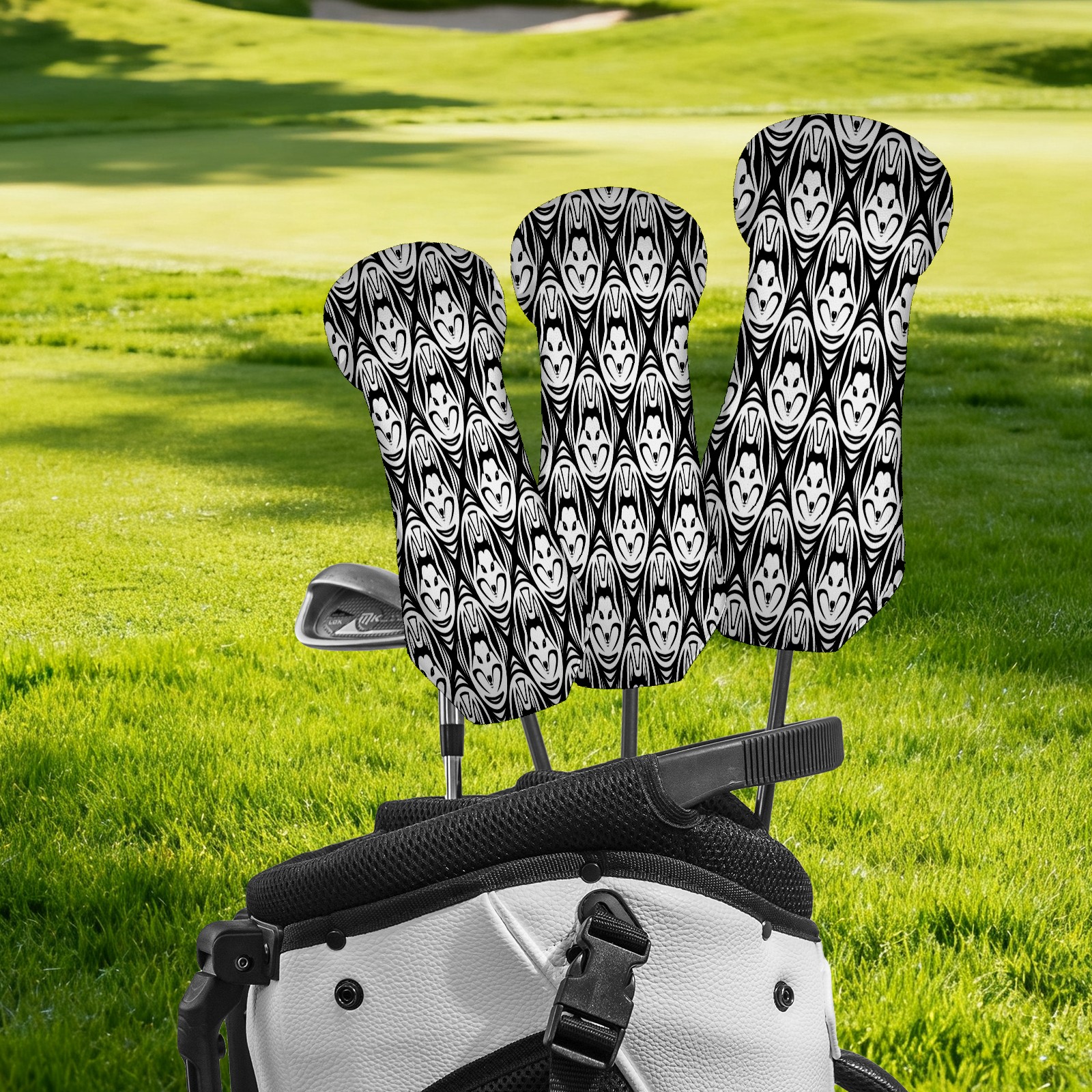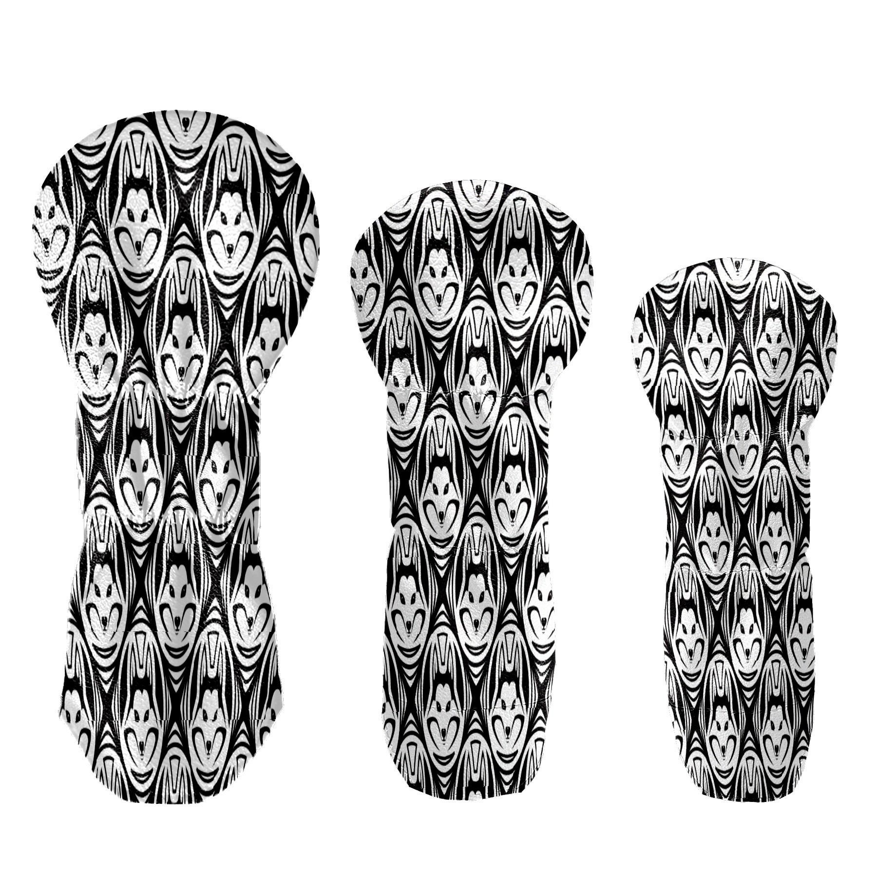 PU Leather Golf Putter Head Covers for Driver, Fairway Wood & Hybrid Clubs, Unisex, Fits All Brands Black White Hipster Husky Dog Pattern