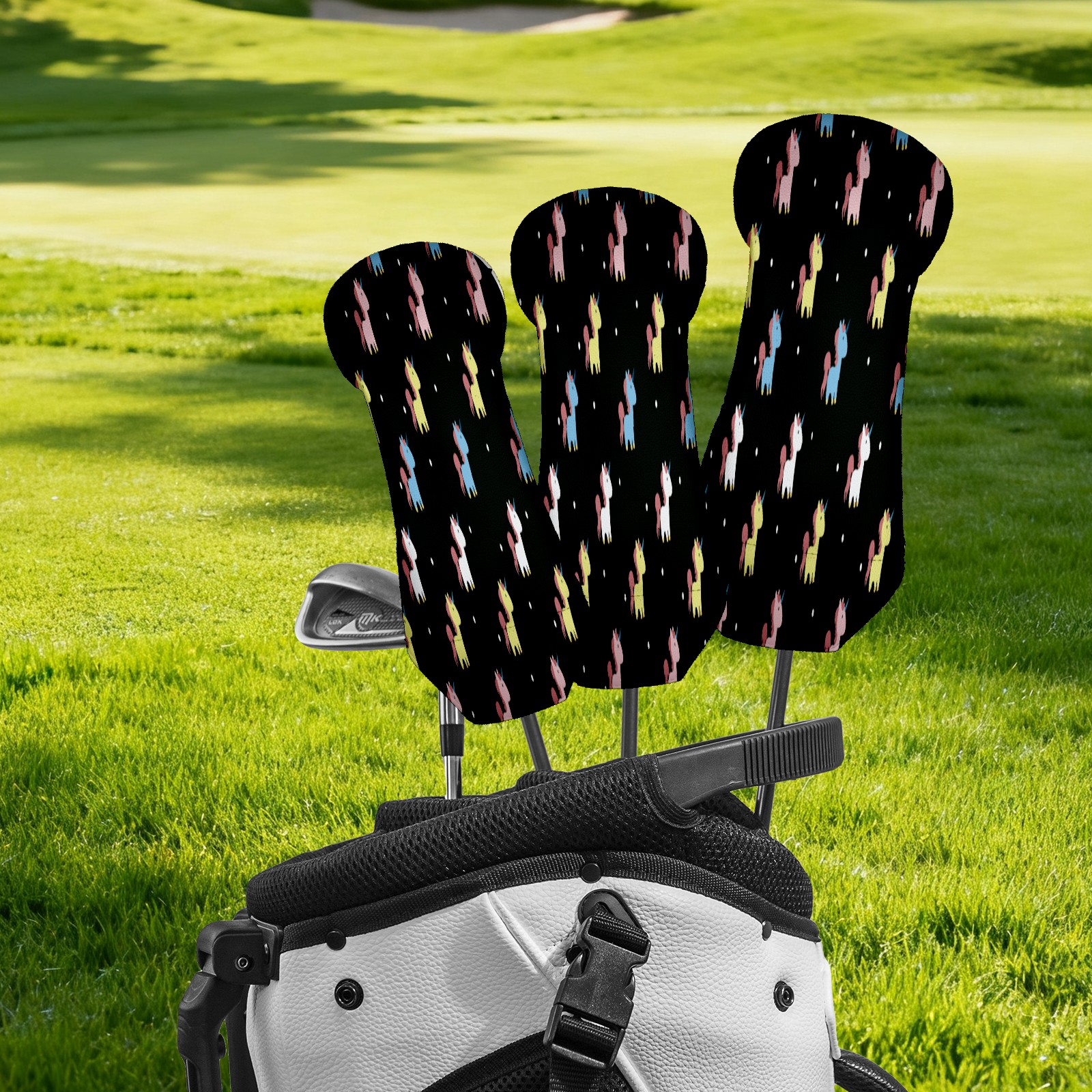 PU Leather Golf Putter Head Covers for Driver, Fairway Wood & Hybrid Clubs, Unisex, Fits All Brands Cute Cartoon Unicorn Pattern