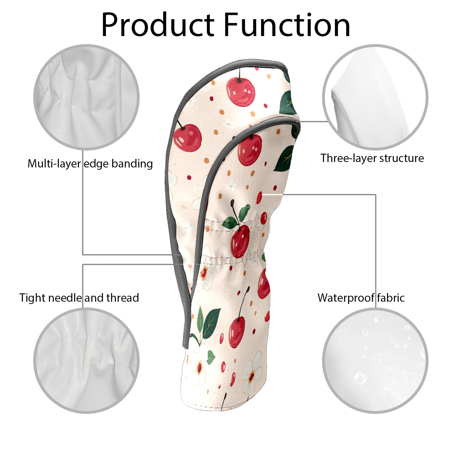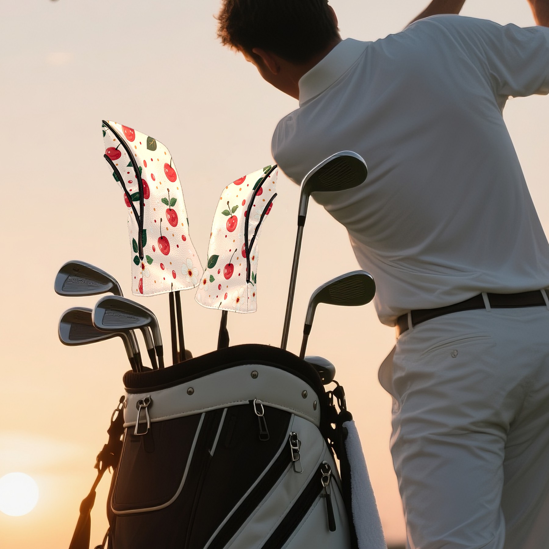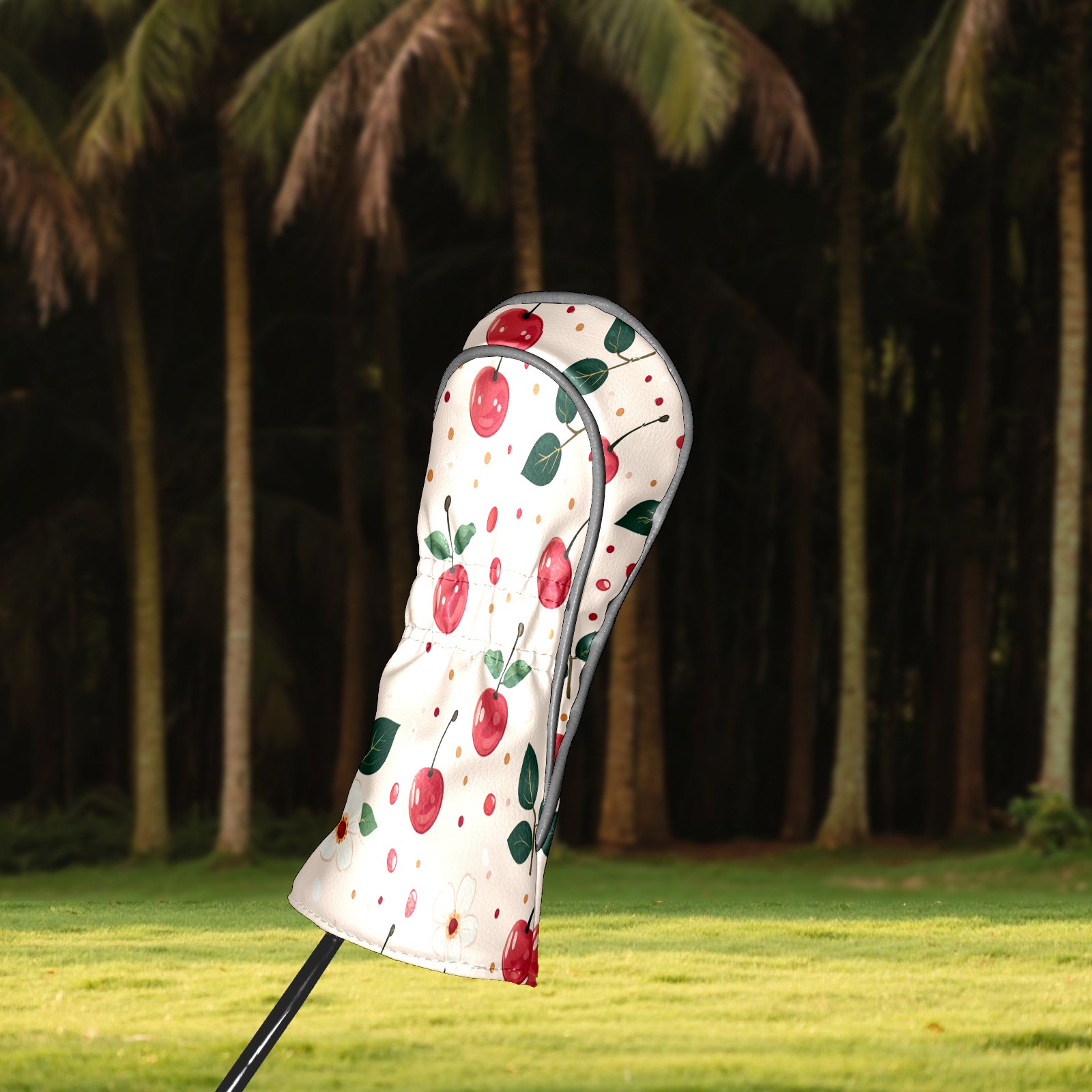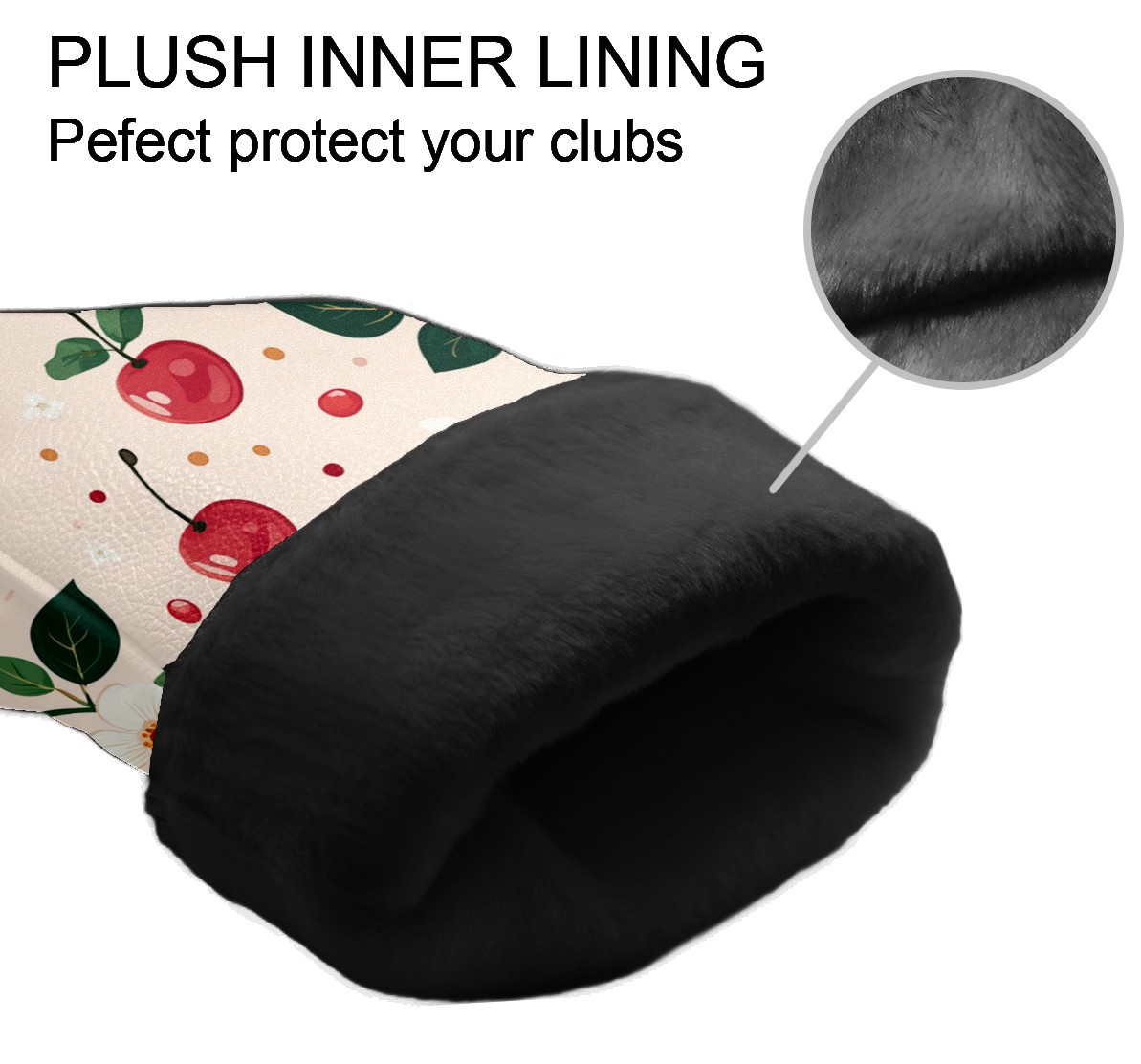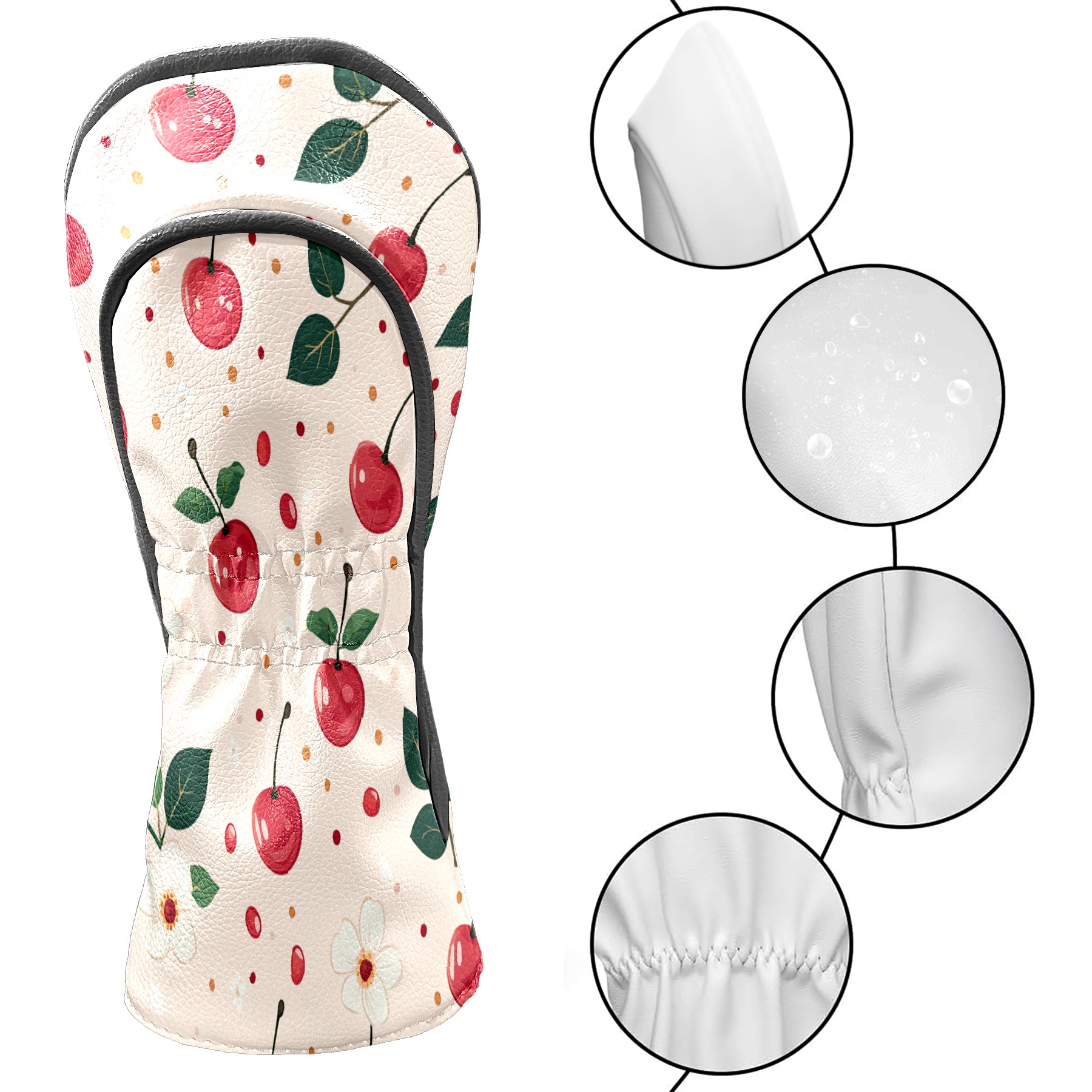 Golf Club Covers PU Leather Waterproof,Golf Club Head Covers for Fairway Woods and Hybrids Cherry Pattern Unisex Suitable for Most Brands