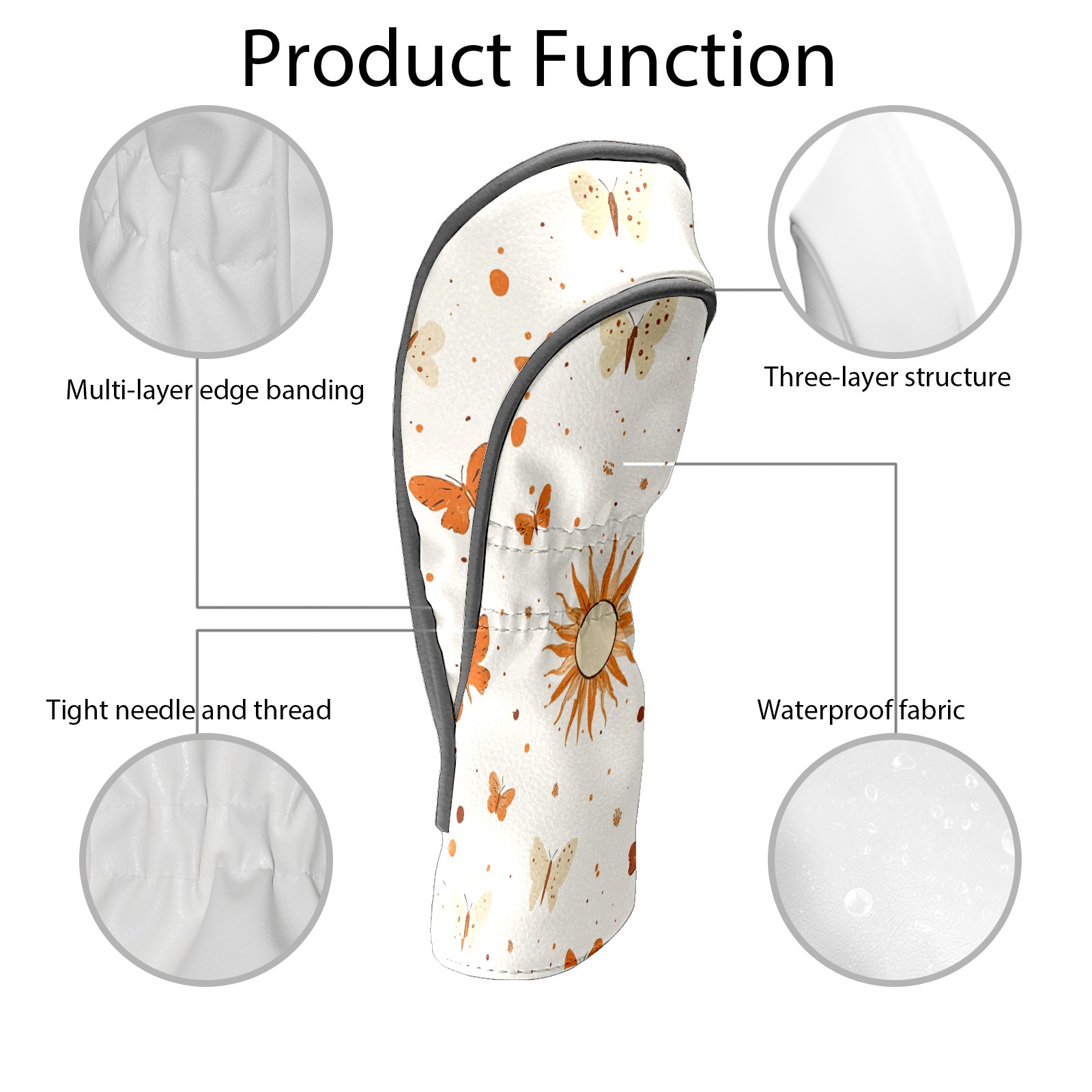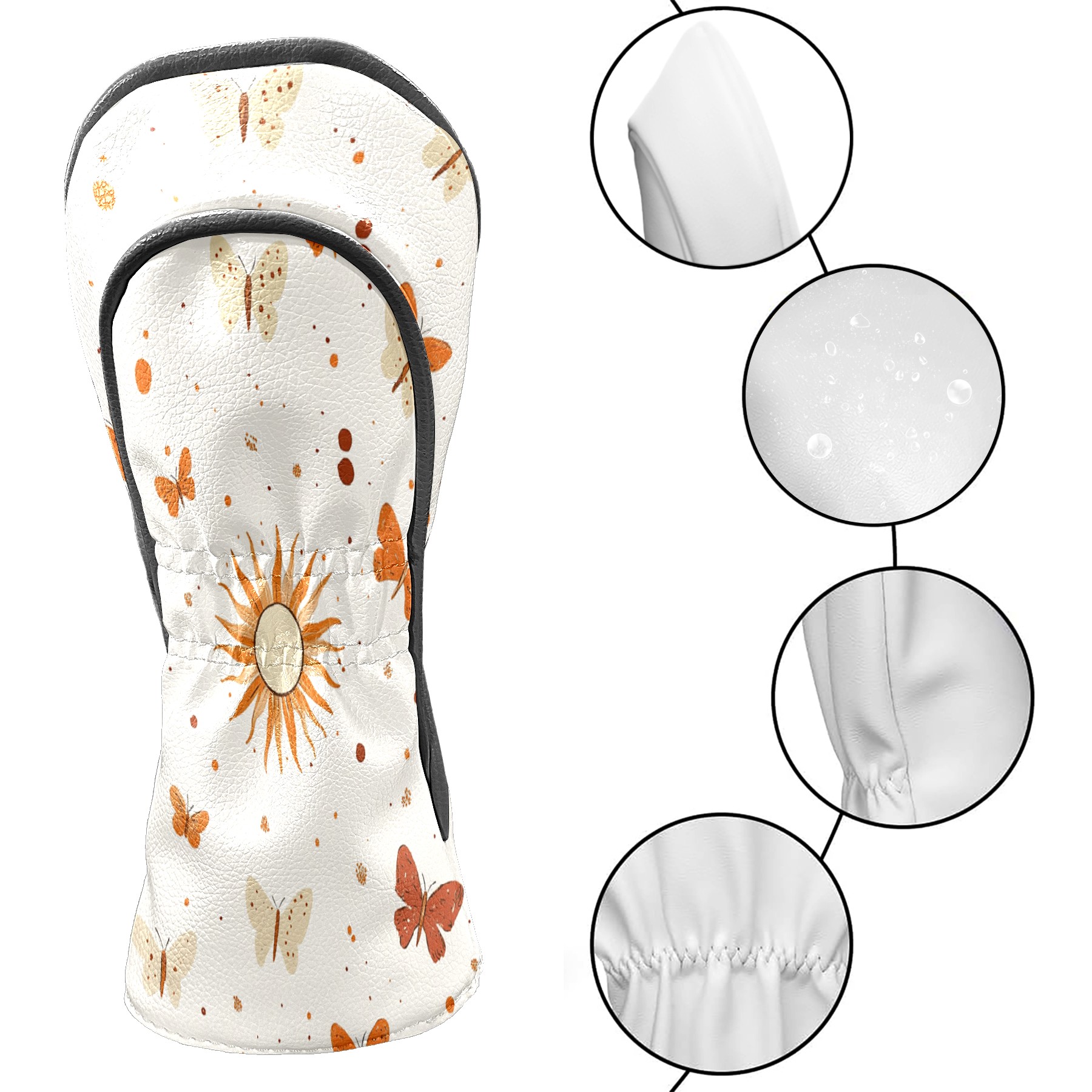 Golf Club Covers PU Leather Waterproof,Golf Club Head Covers for Fairway Woods and Hybrids Sun Butterfly Unisex Suitable for Most Brands