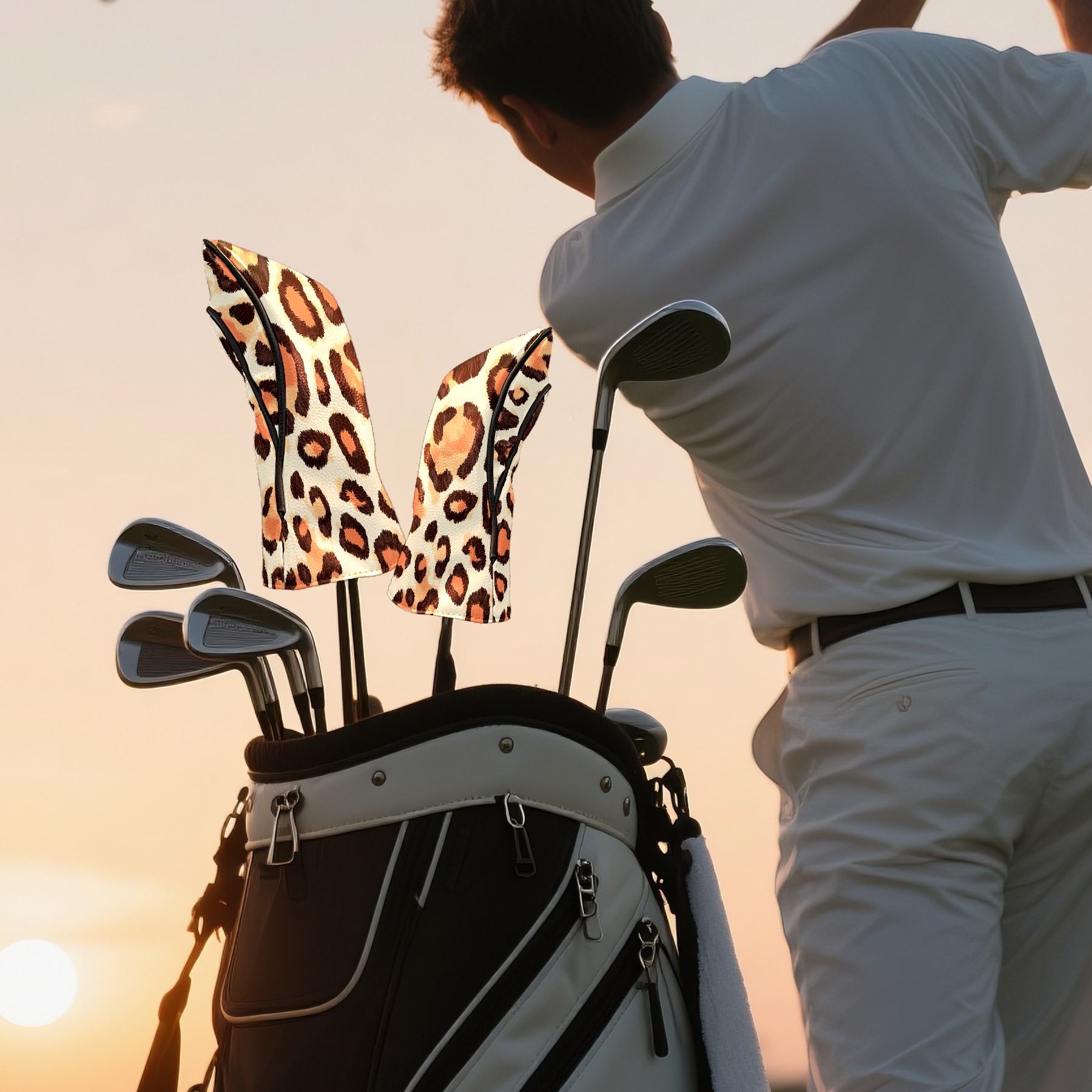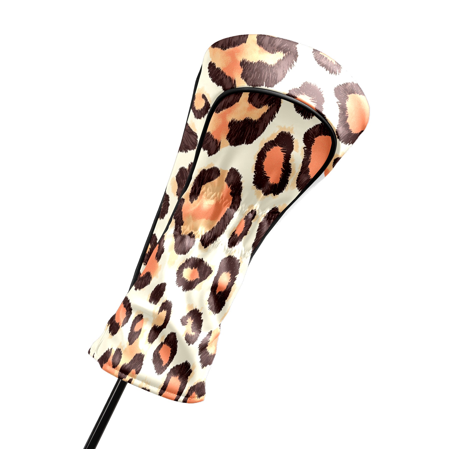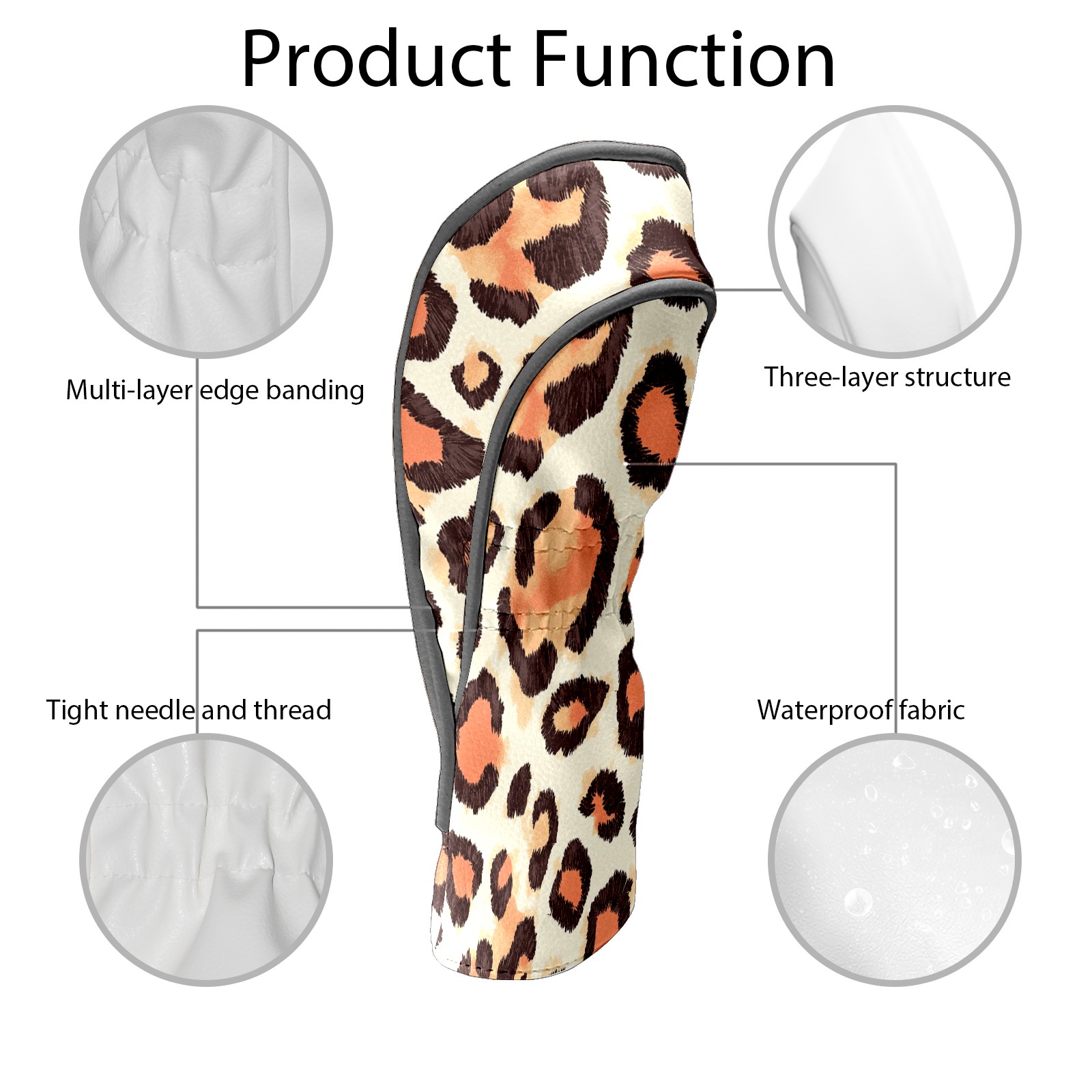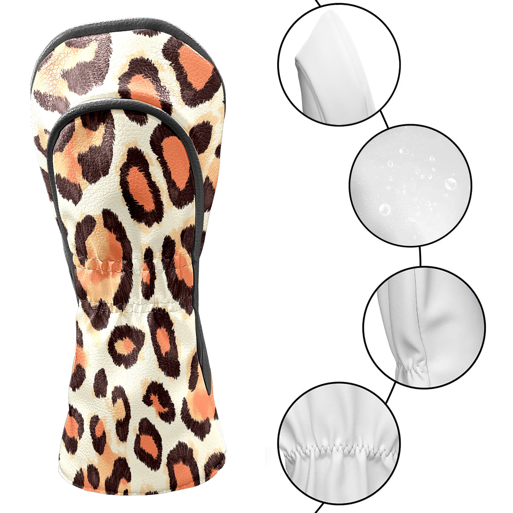 Golf Club Covers PU Leather Waterproof,Golf Club Head Covers for Fairway Woods and Hybrids Peach Leopard Print Unisex Suitable for Most Brands
