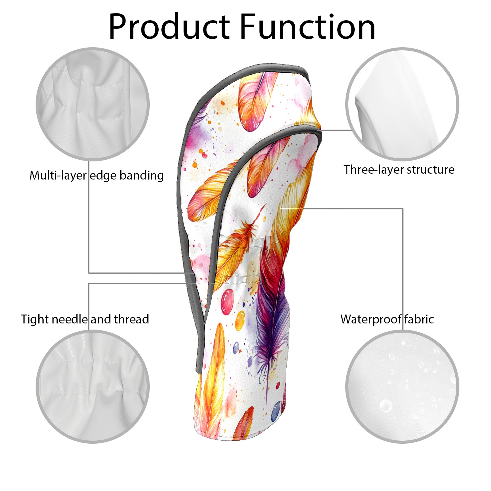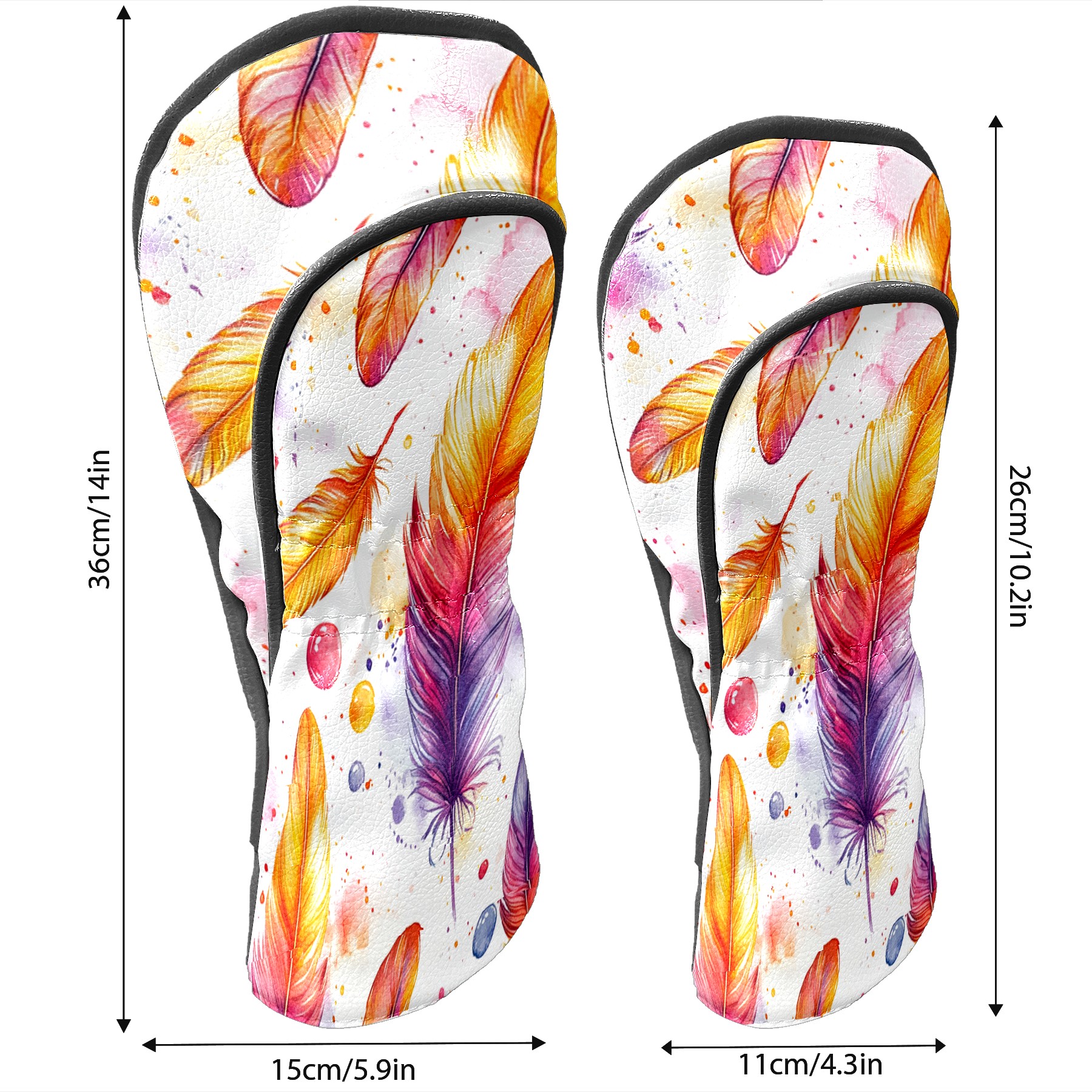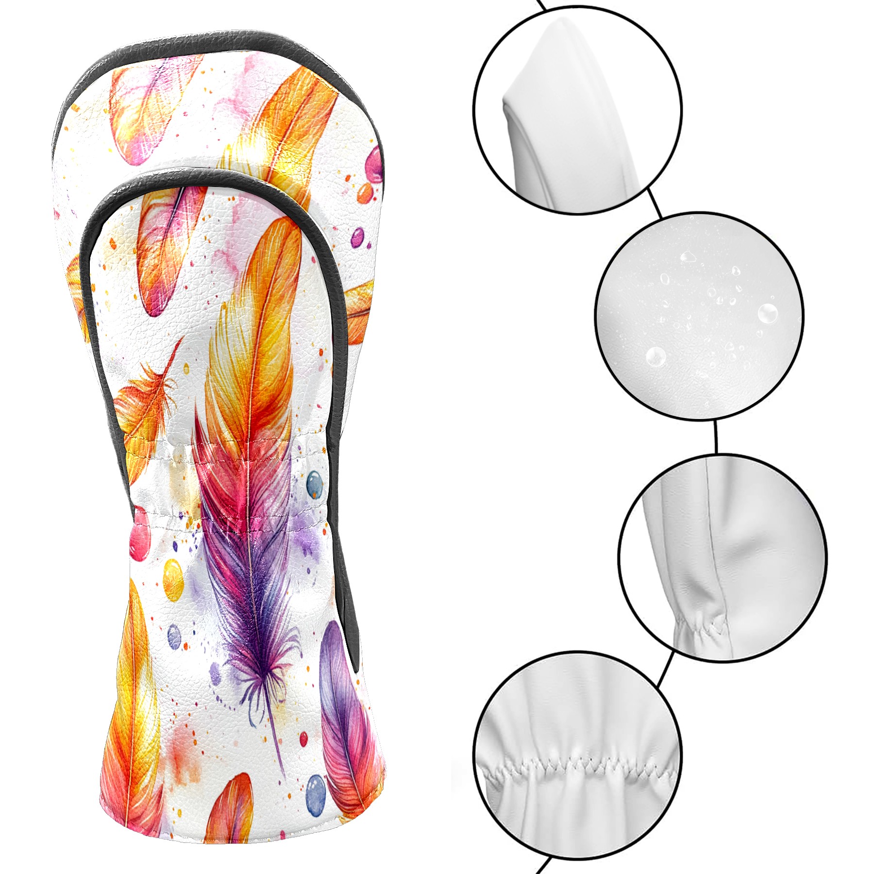 Golf Club Covers PU Leather Waterproof,Golf Club Head Covers for Fairway Woods and Hybrids Orange Feathers Unisex Suitable for Most Brands