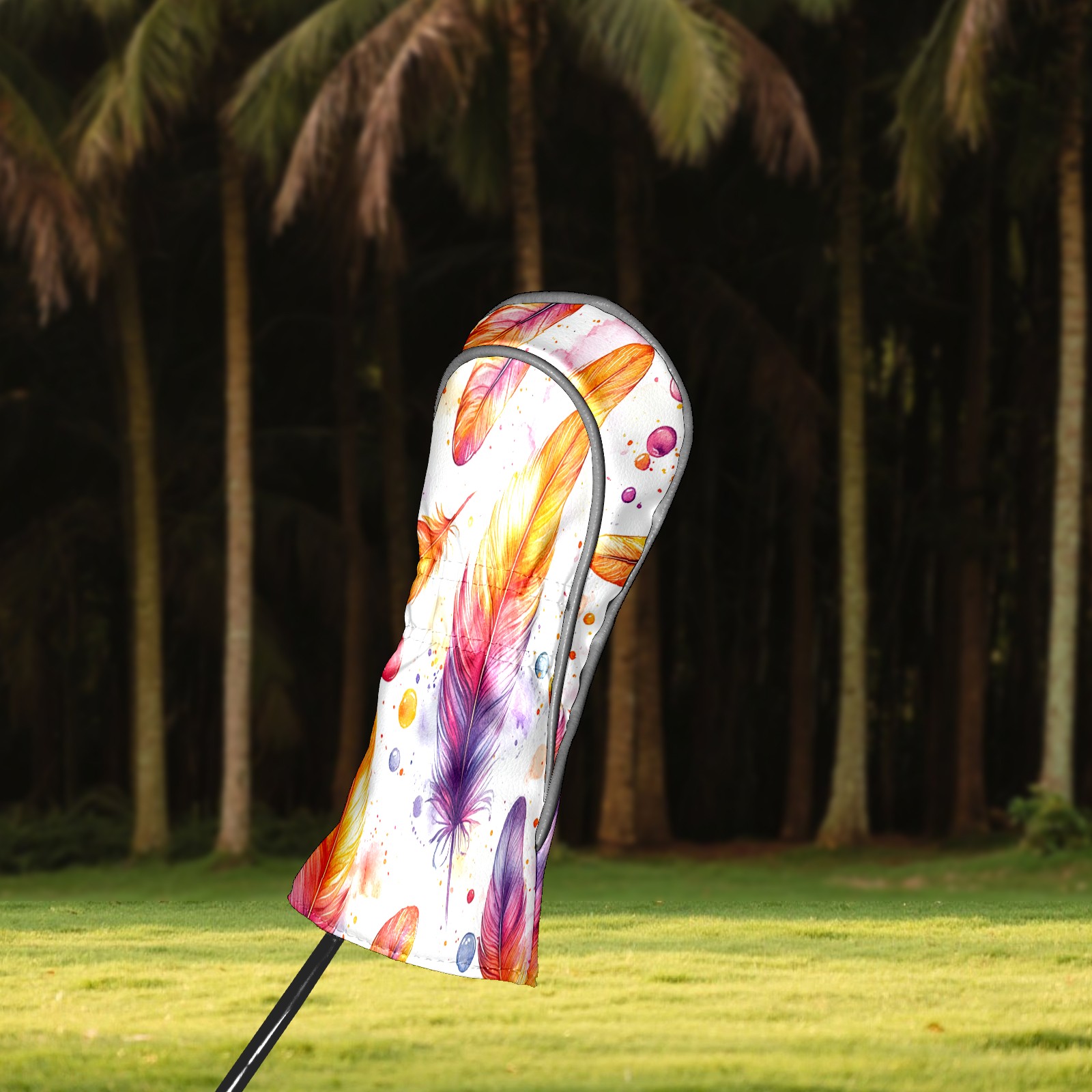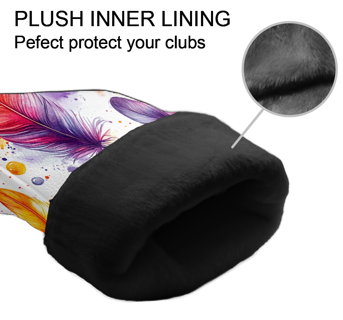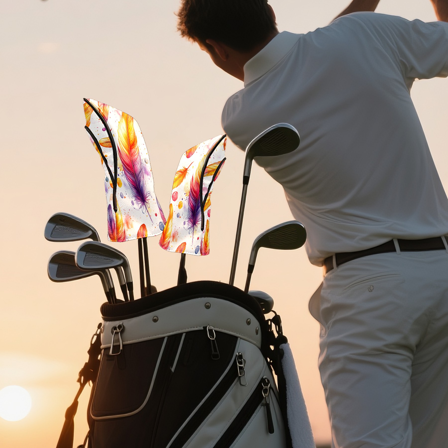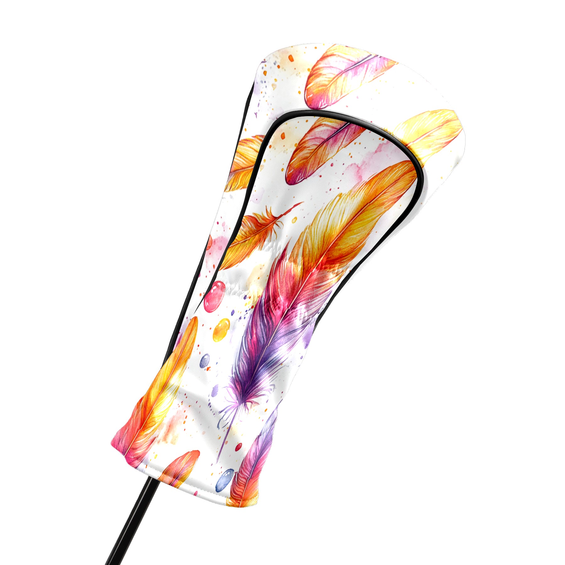 Golf Club Covers PU Leather Waterproof,Golf Club Head Covers for Fairway Woods and Hybrids Orange Feathers Unisex Suitable for Most Brands