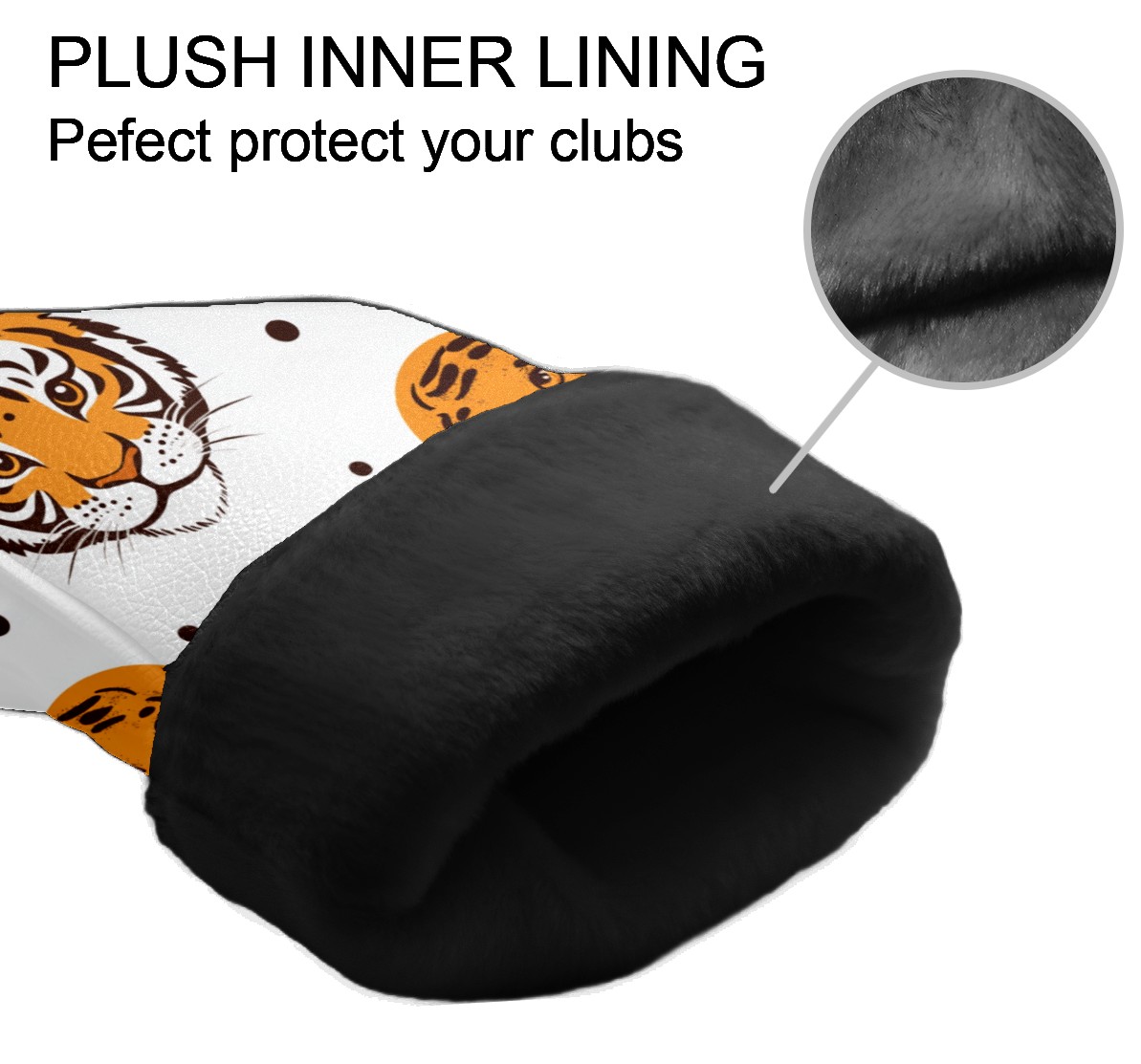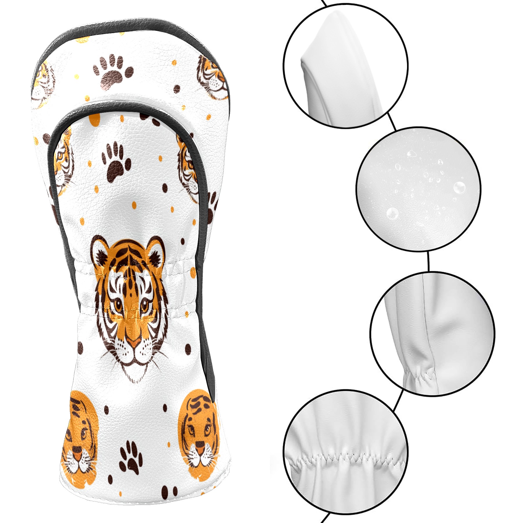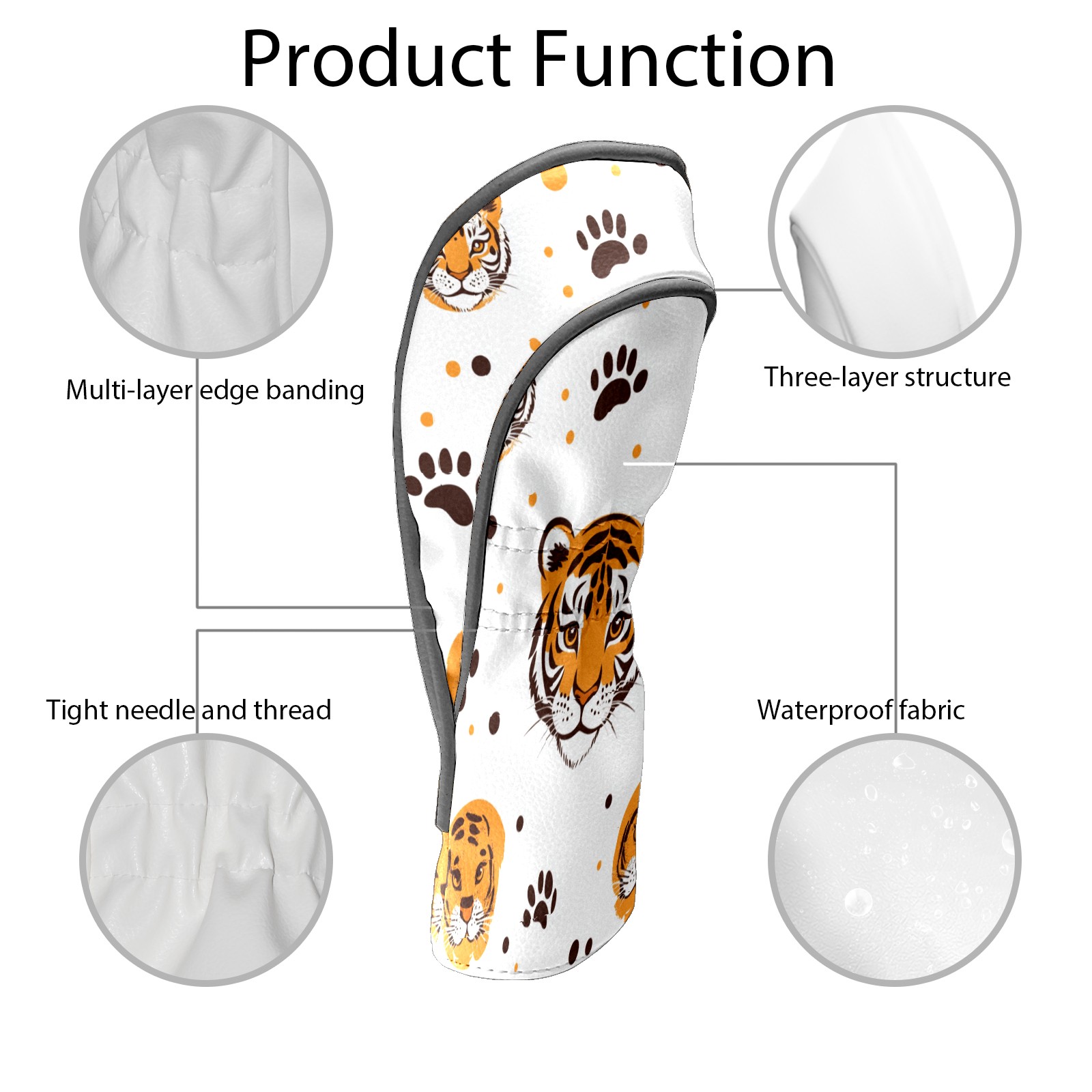 Golf Club Covers PU Leather Waterproof,Golf Club Head Covers for Fairway Woods and Hybrids Cartoon Tiger Unisex Suitable for Most Brands