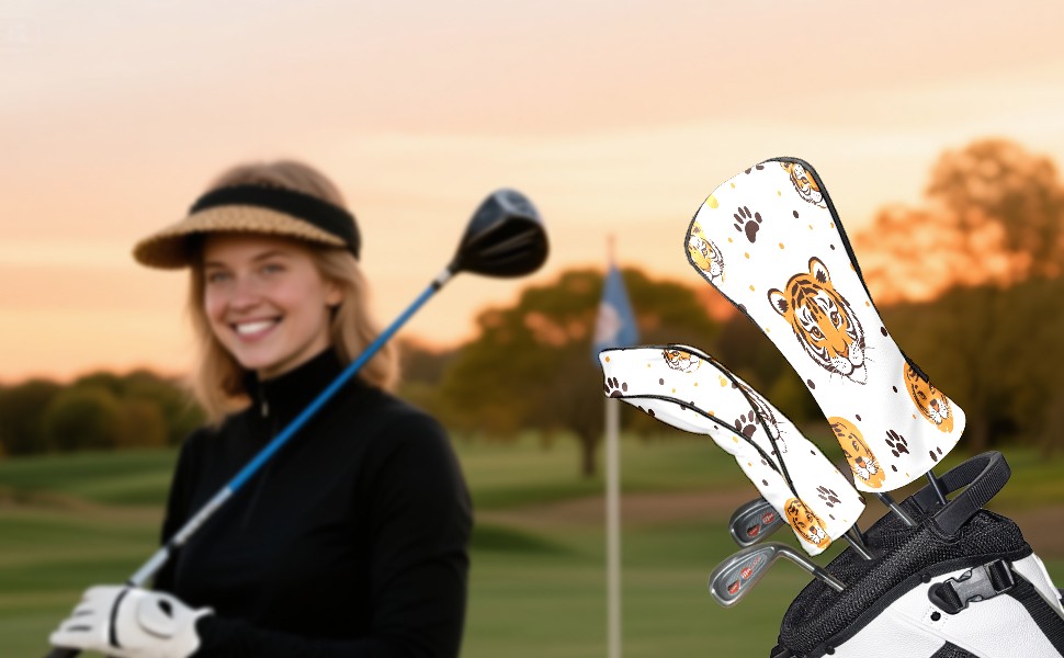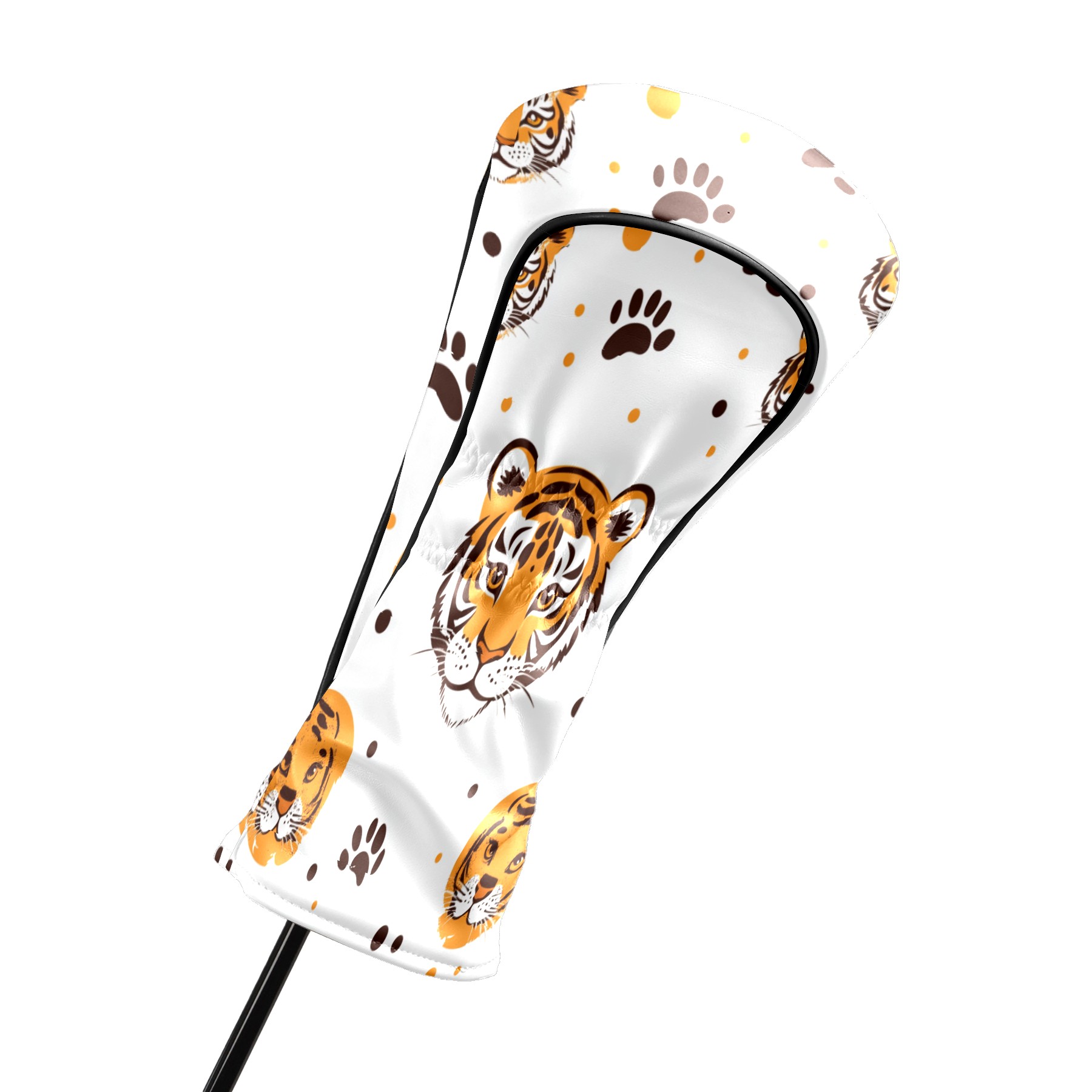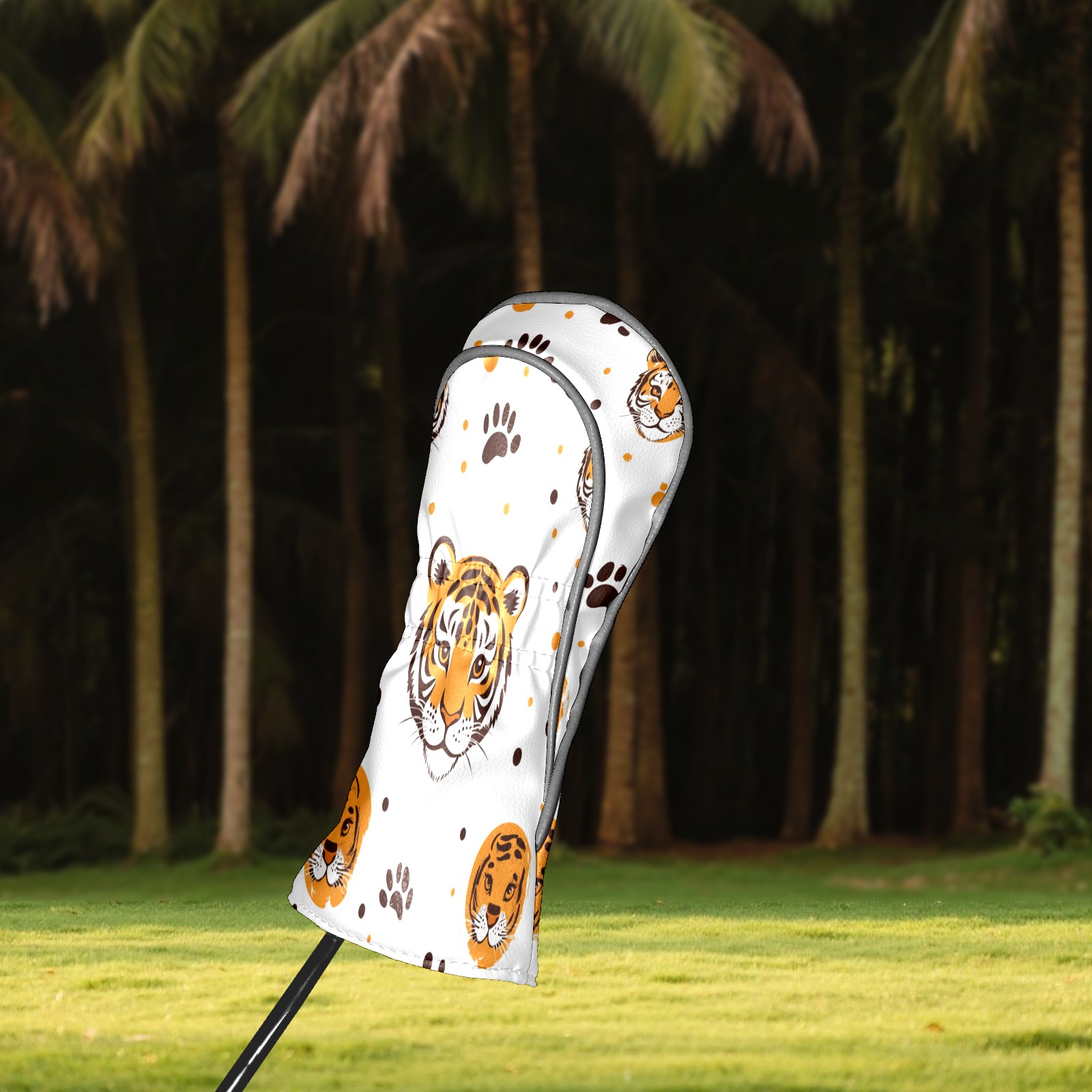 Golf Club Covers PU Leather Waterproof,Golf Club Head Covers for Fairway Woods and Hybrids Cartoon Tiger Unisex Suitable for Most Brands