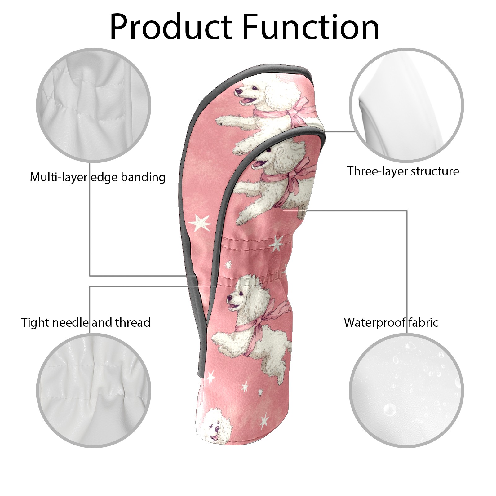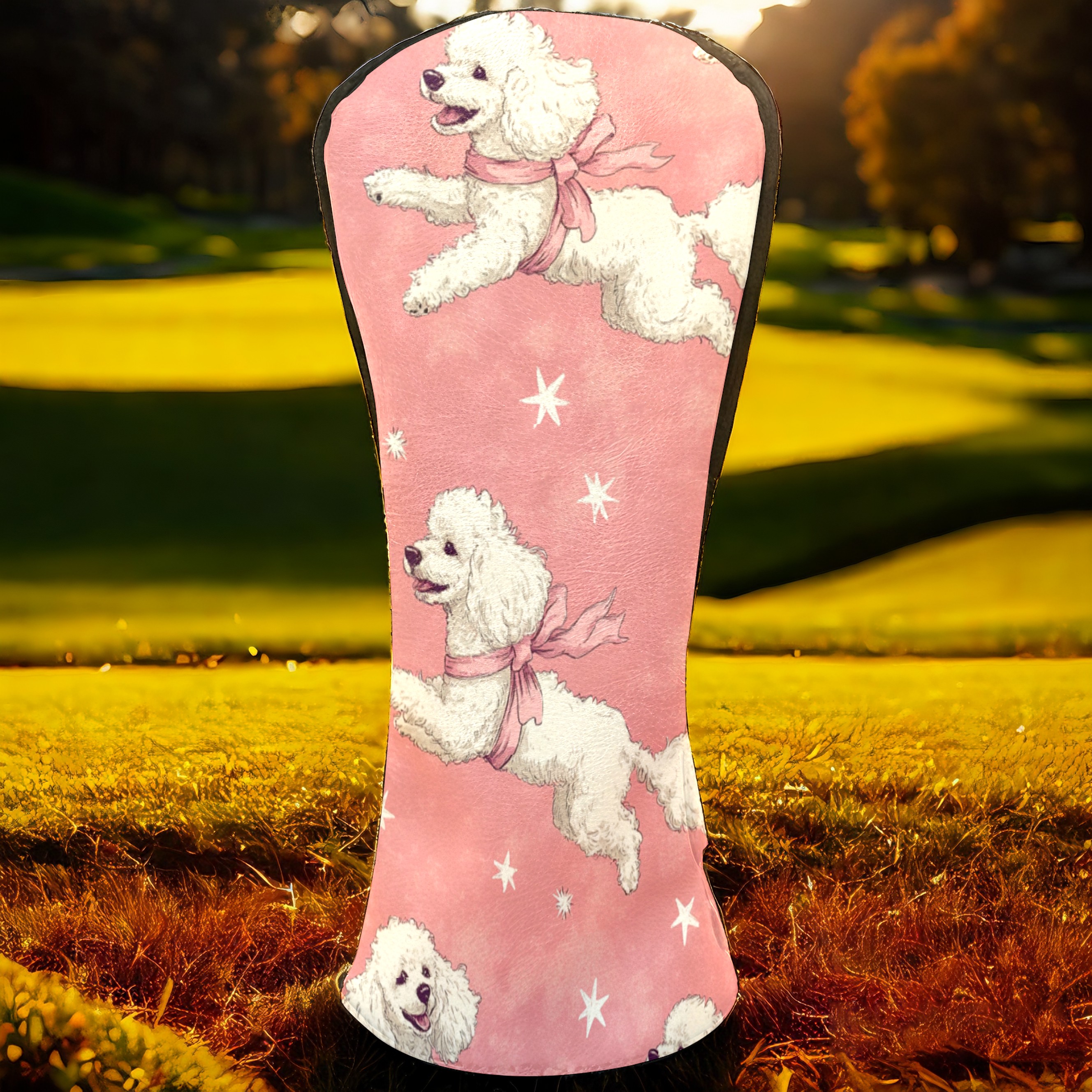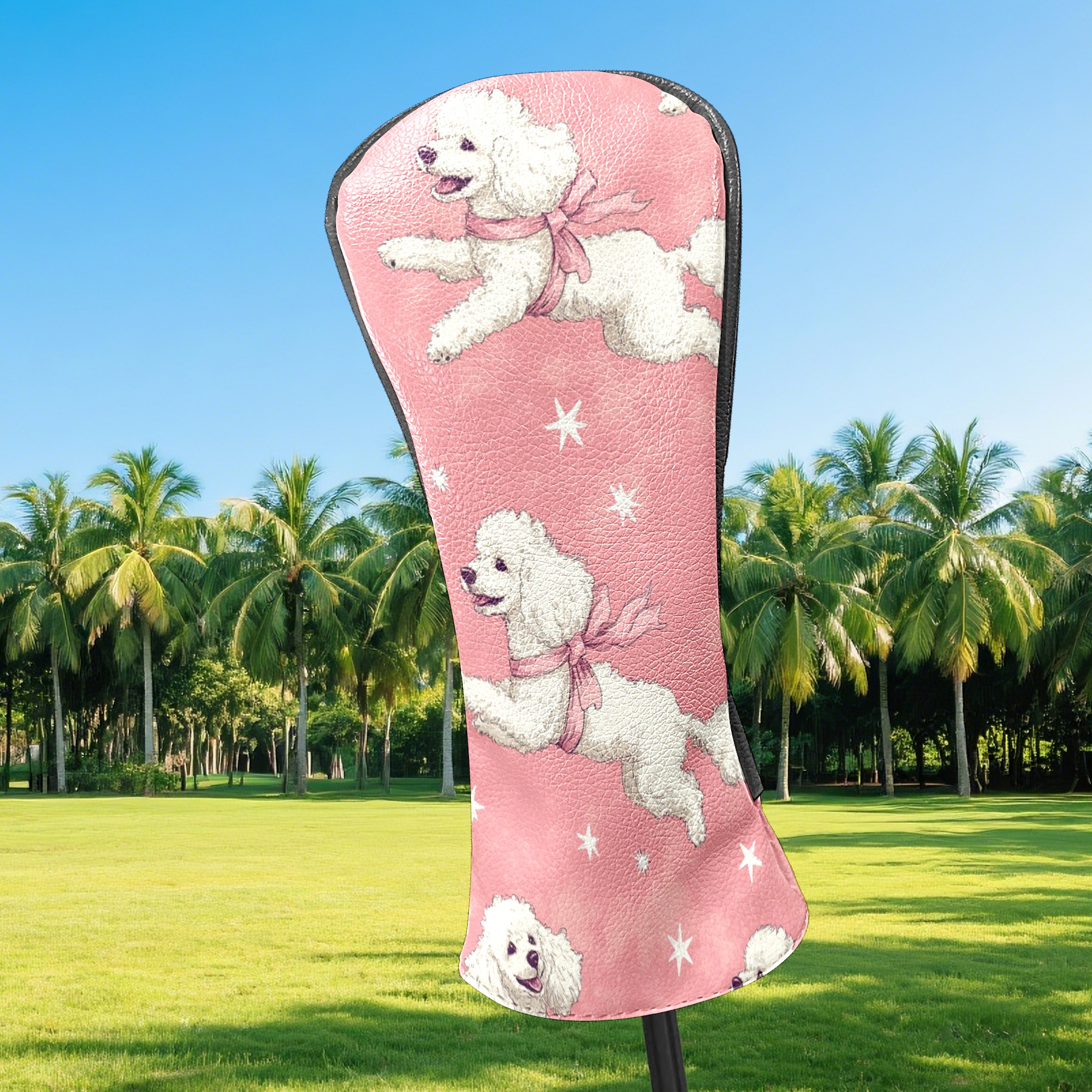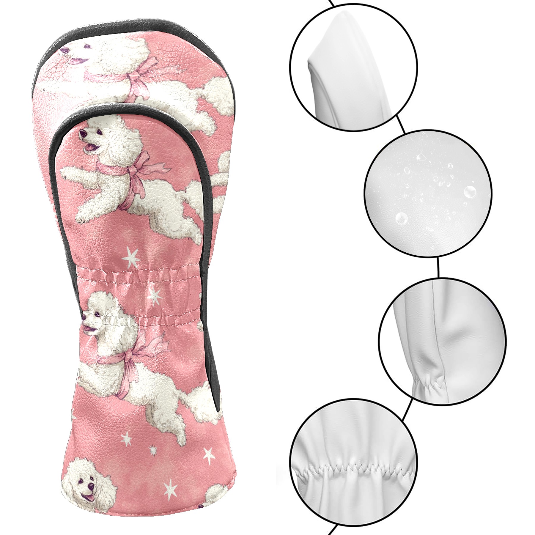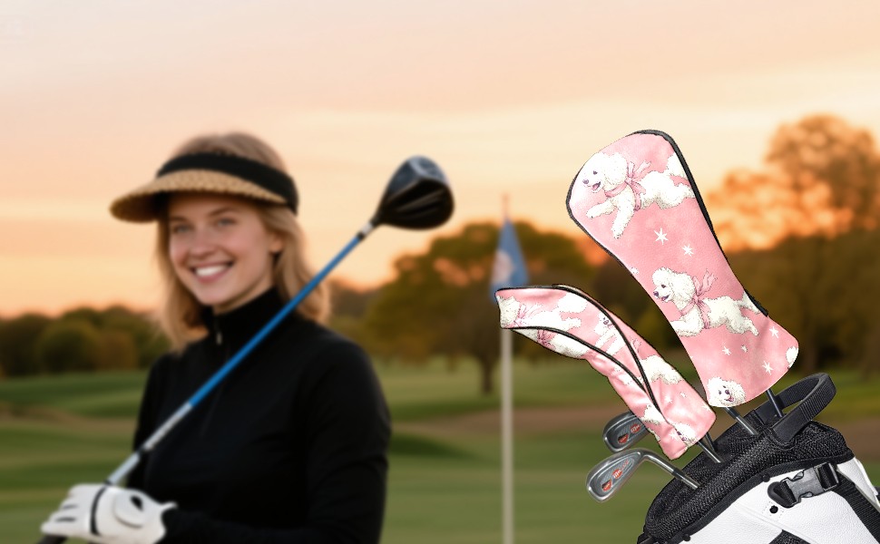 Golf Club Covers PU Leather Waterproof,Golf Club Head Covers for Fairway Woods and Hybrids White Poodle Dogs Unisex Suitable for Most Brands