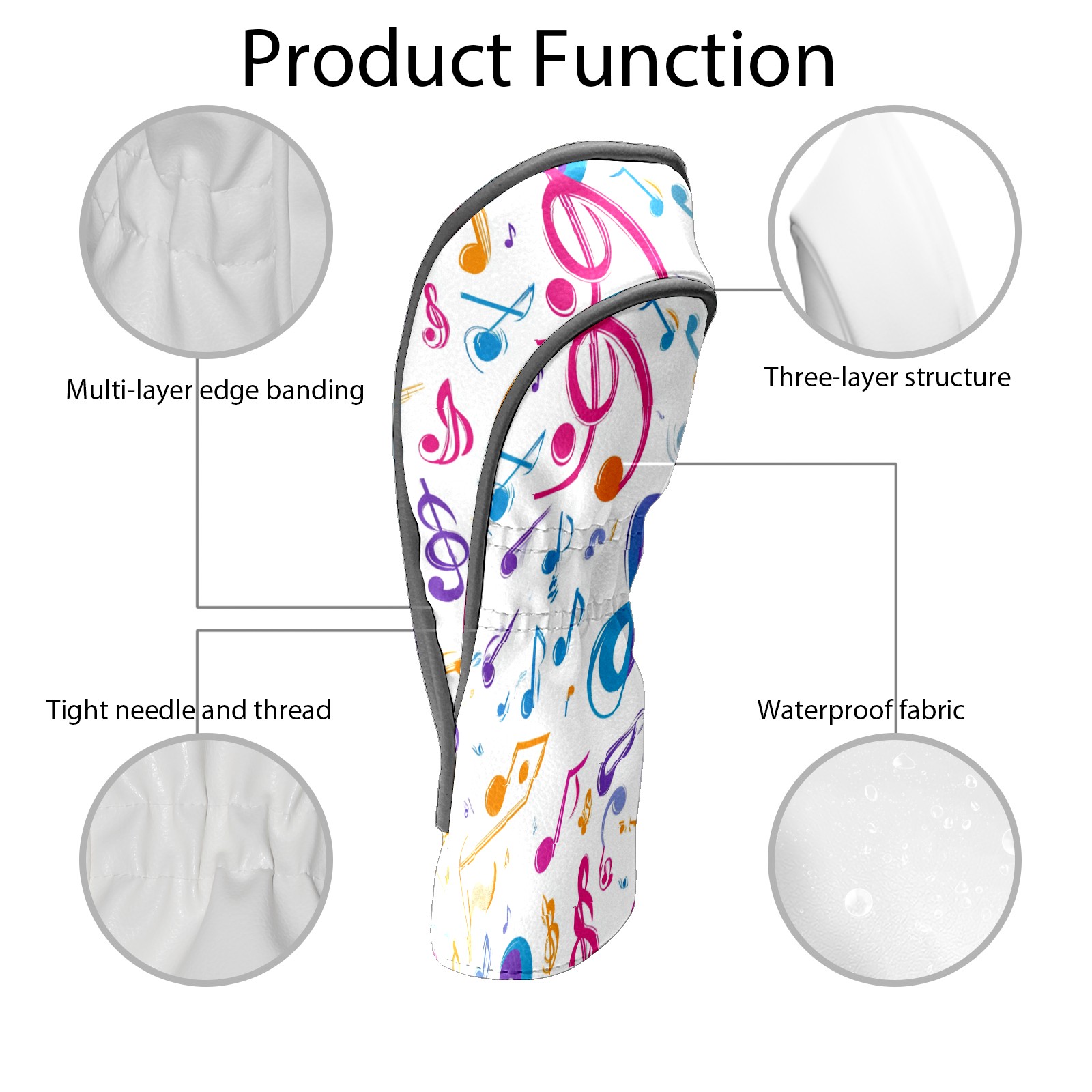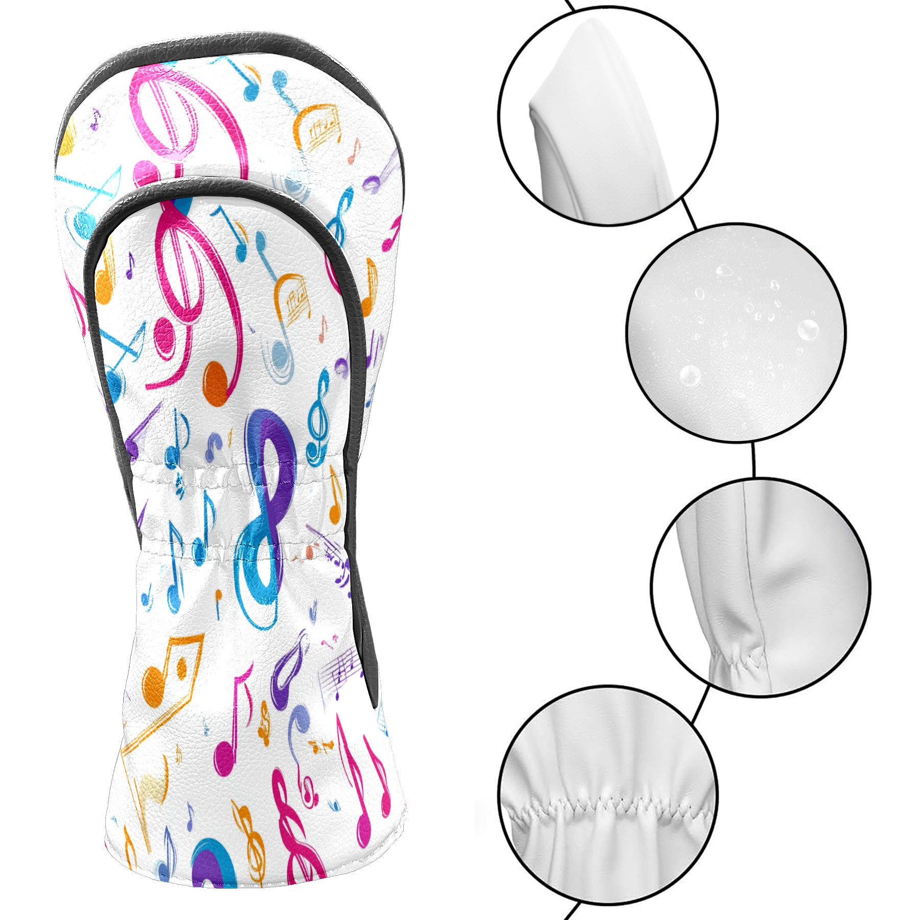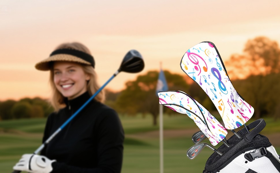 Golf Club Covers PU Leather Waterproof,Golf Club Head Covers for Fairway Woods and Hybrids Musical Note Pattern Unisex Suitable for Most Brands