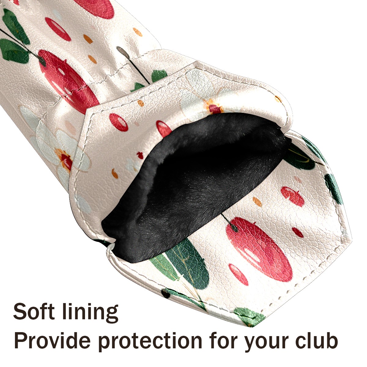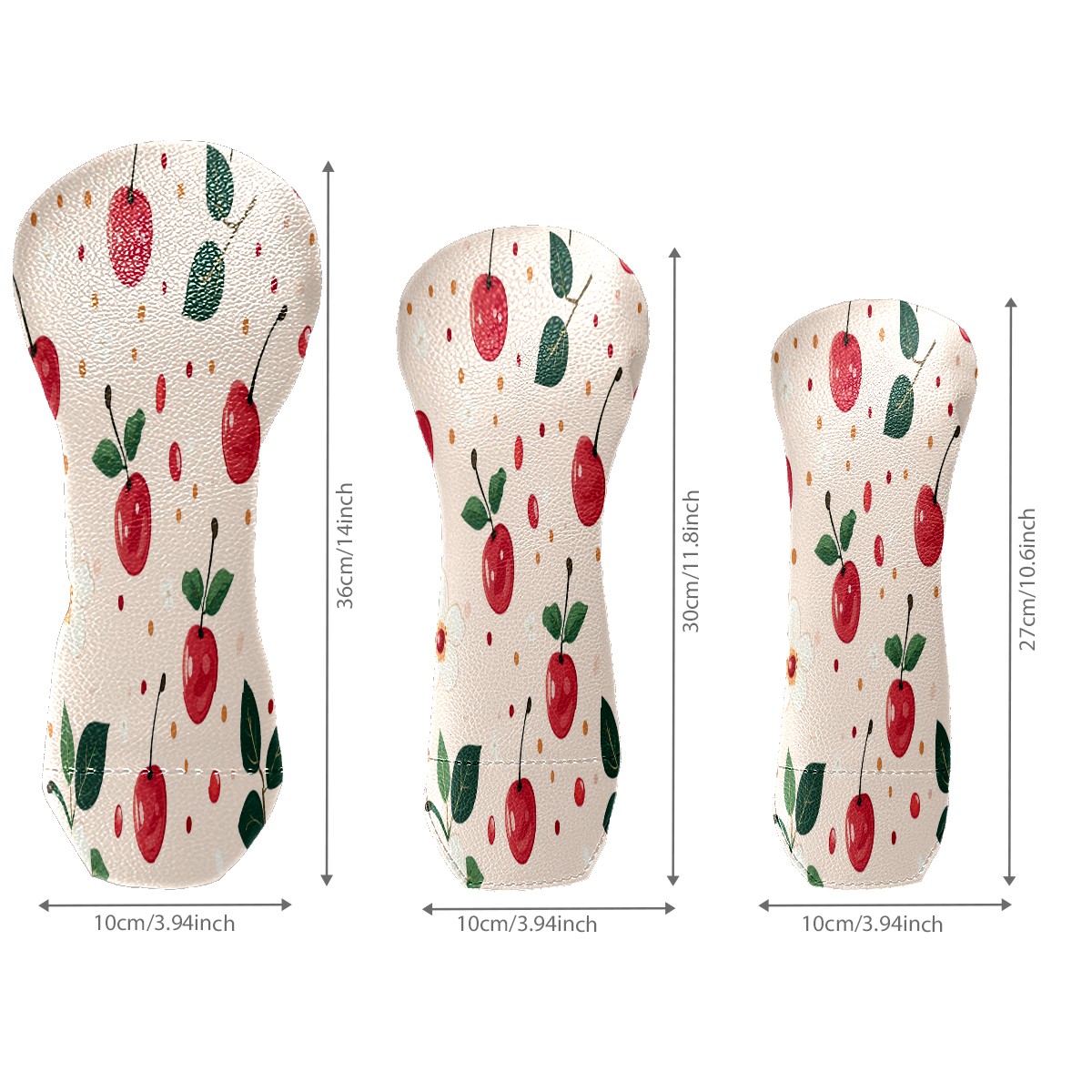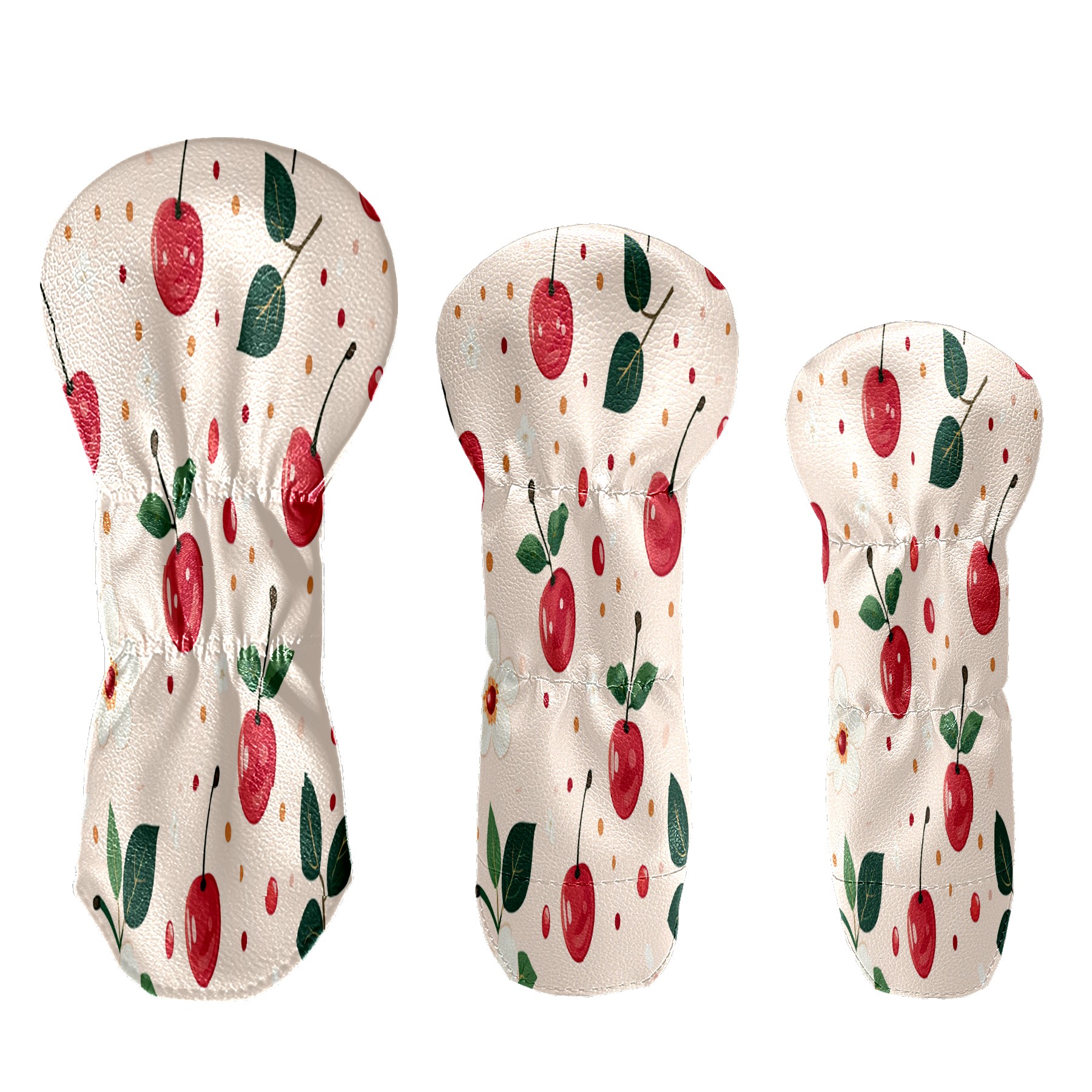 Golf Club Cover, Velvet Lining, High-Quality Leather, Suitable for the First Wood, Fairway Wood and Hybrid Club Head Cover, Suitable for Men and Women Golf Enthusiasts Cherry Pattern