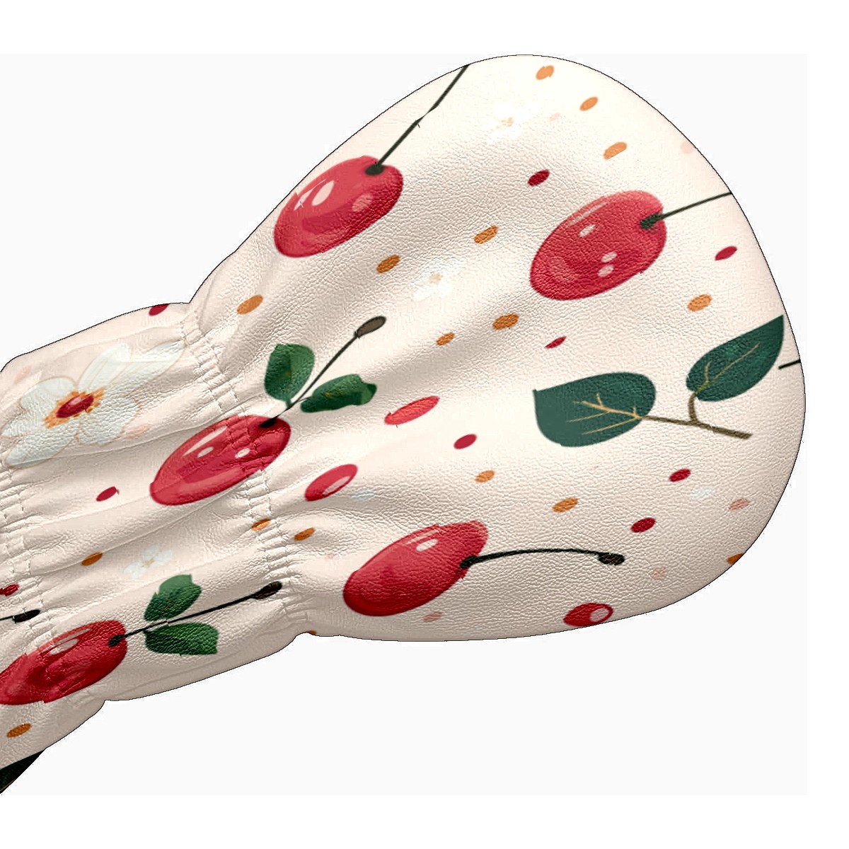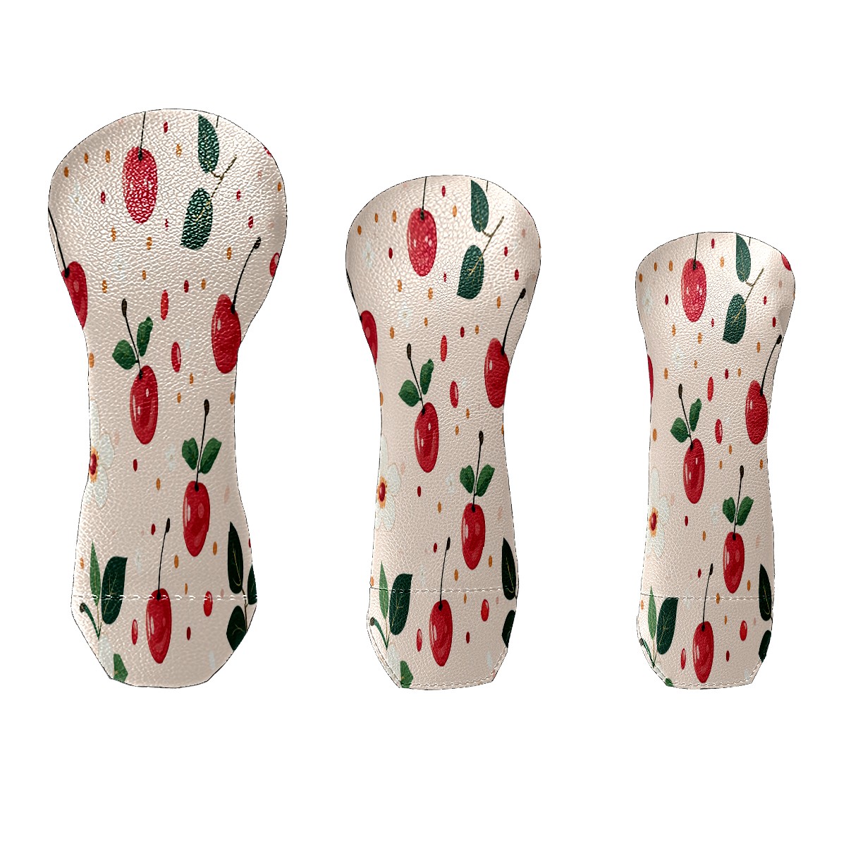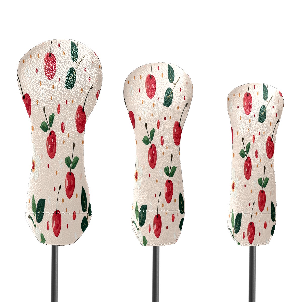 Golf Club Cover, Velvet Lining, High-Quality Leather, Suitable for the First Wood, Fairway Wood and Hybrid Club Head Cover, Suitable for Men and Women Golf Enthusiasts Cherry Pattern