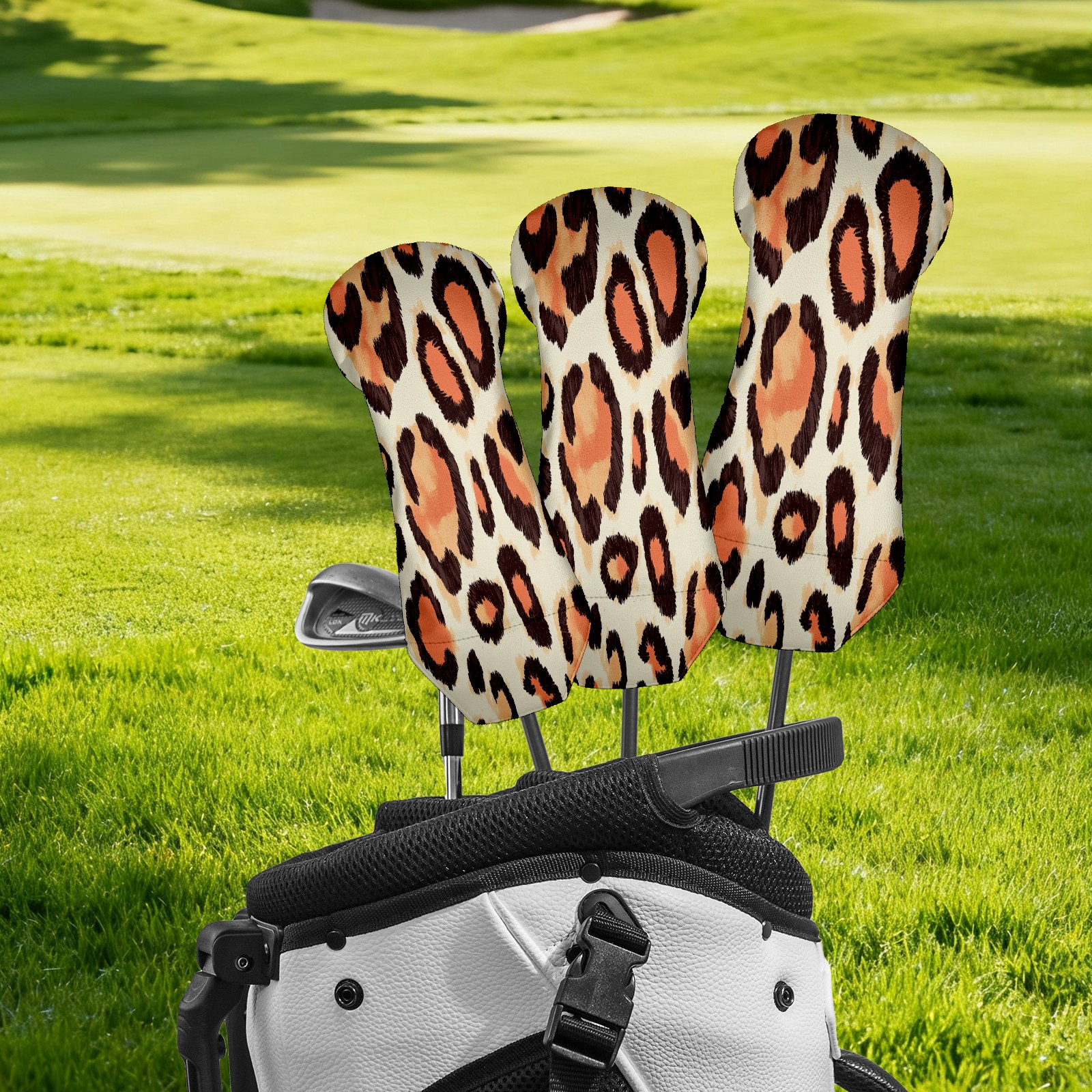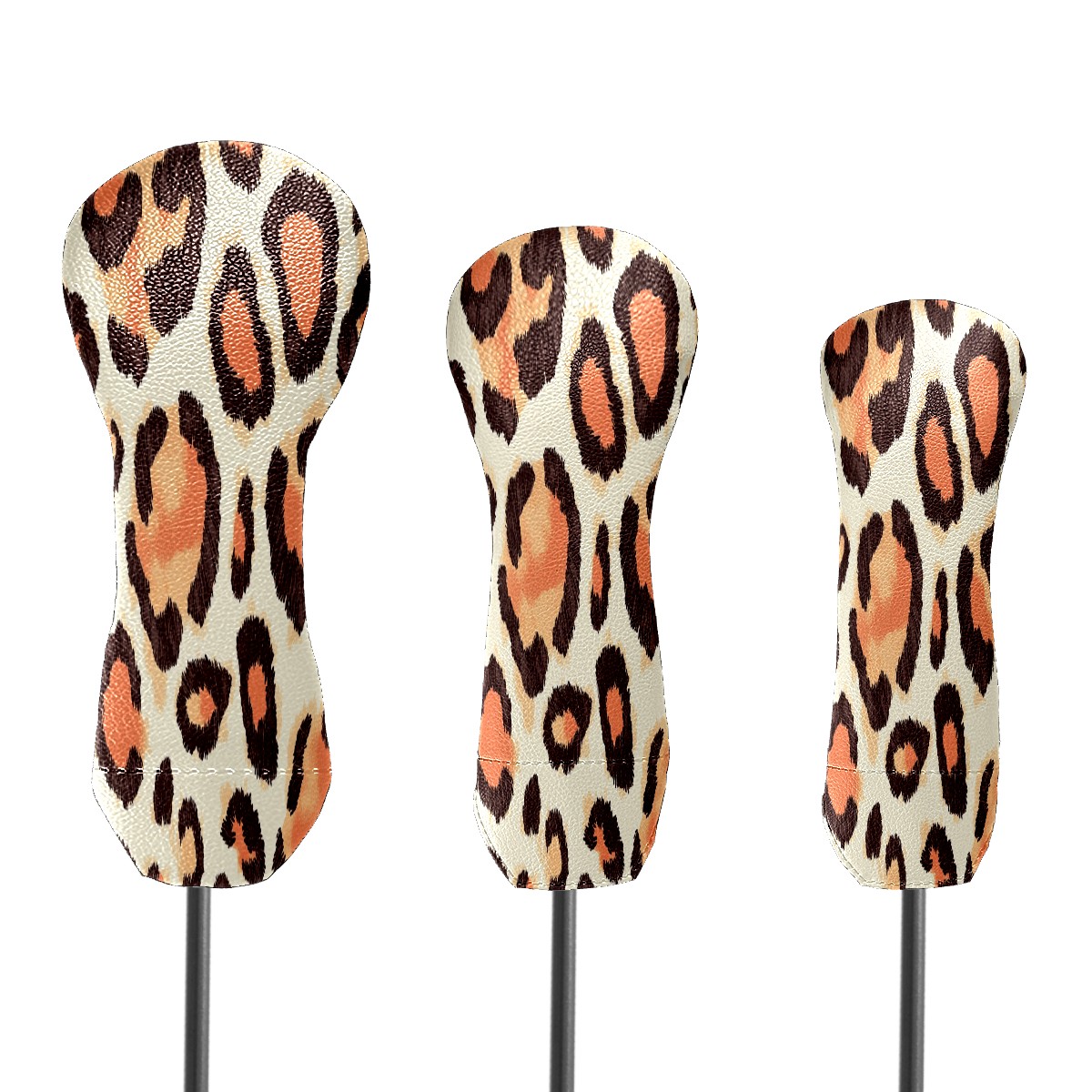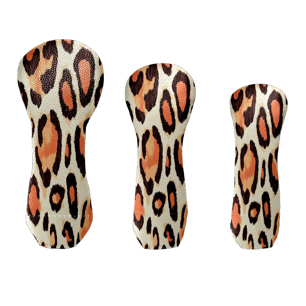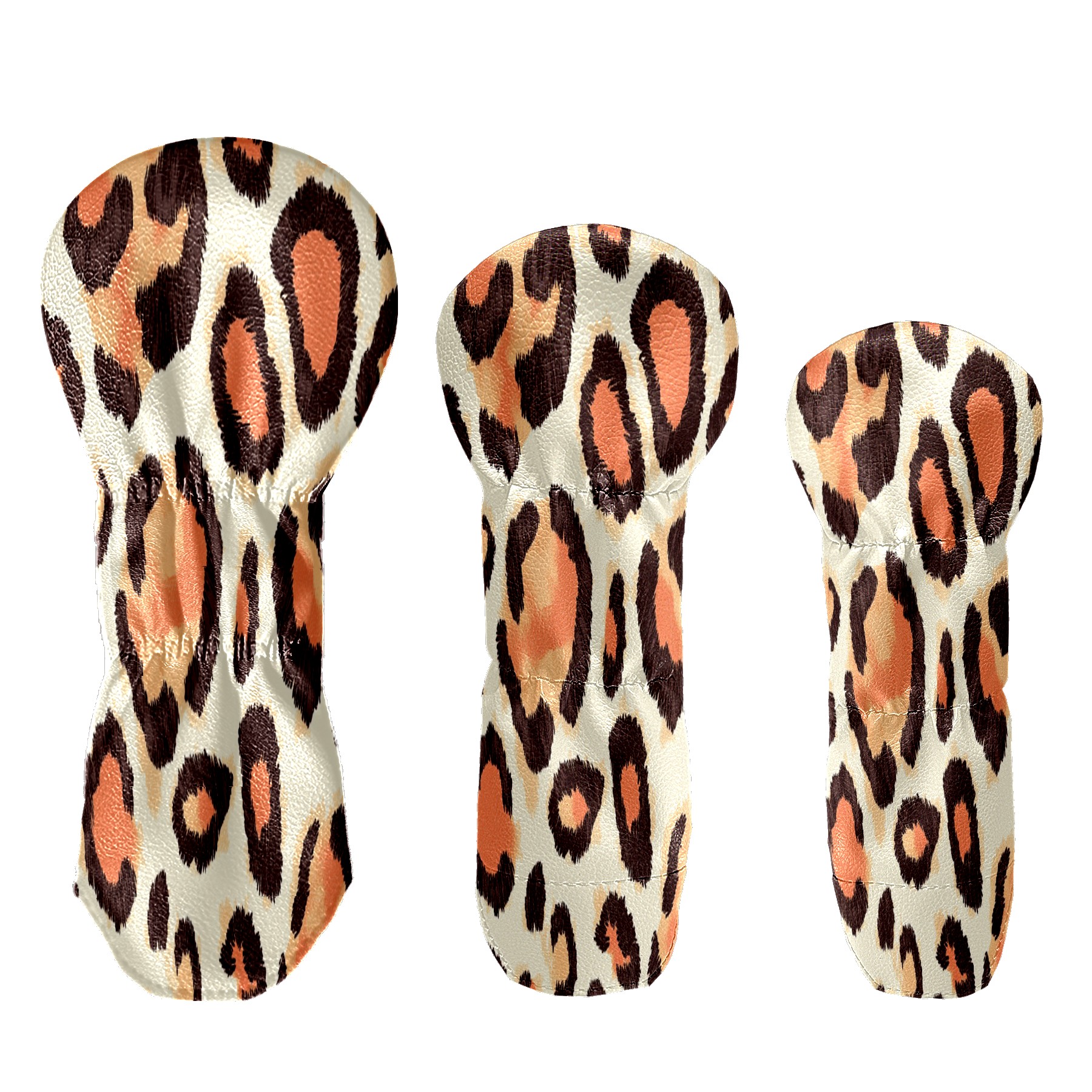 Golf Club Cover, Velvet Lining, High-Quality Leather, Suitable for the First Wood, Fairway Wood and Hybrid Club Head Cover, Suitable for Men and Women Golf Enthusiasts Peach Leopard Print