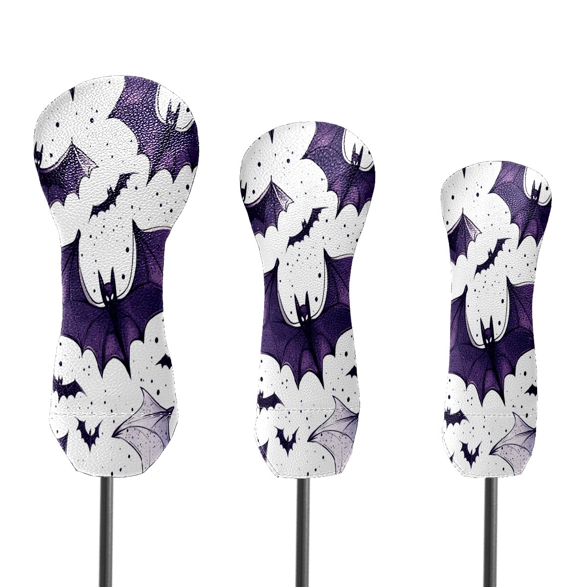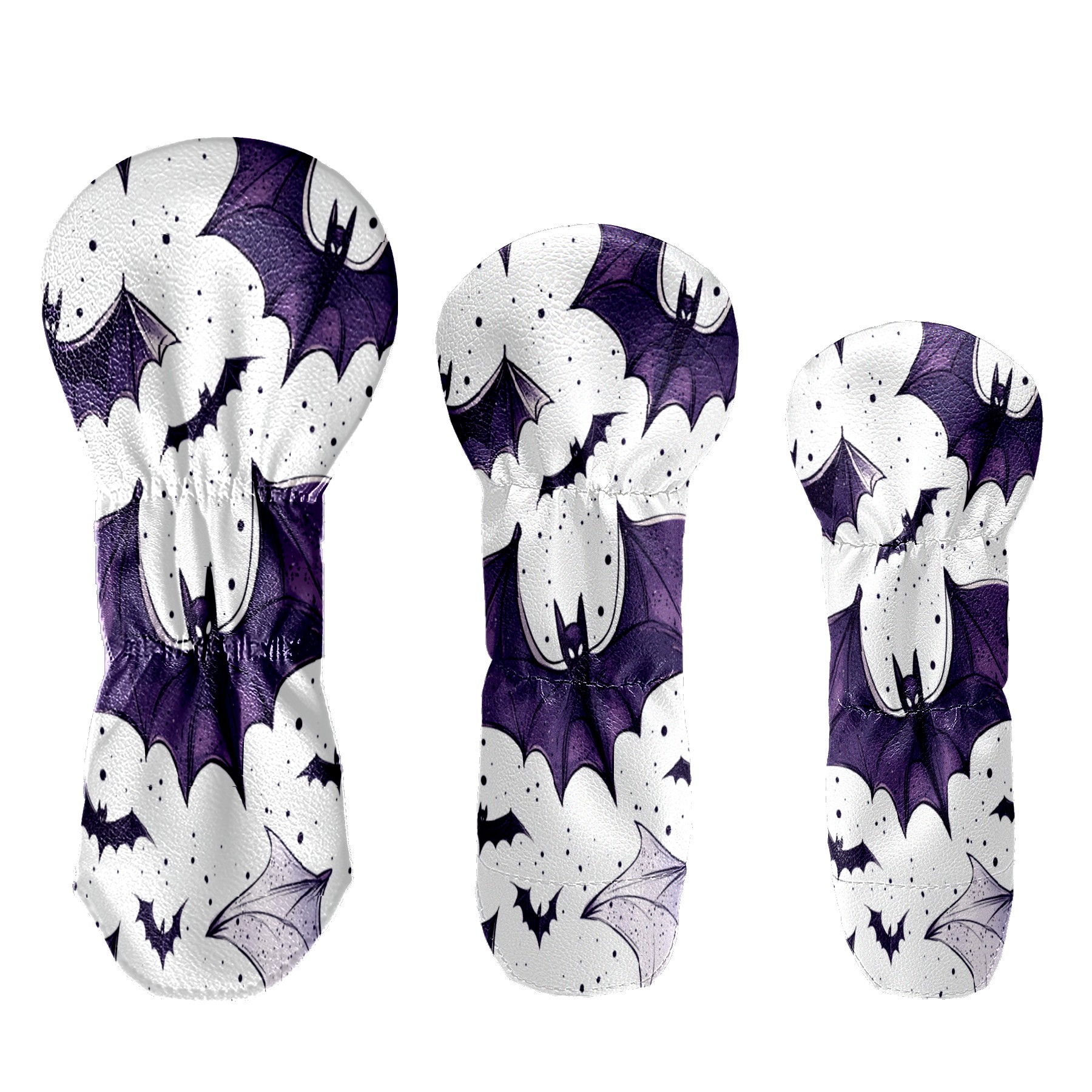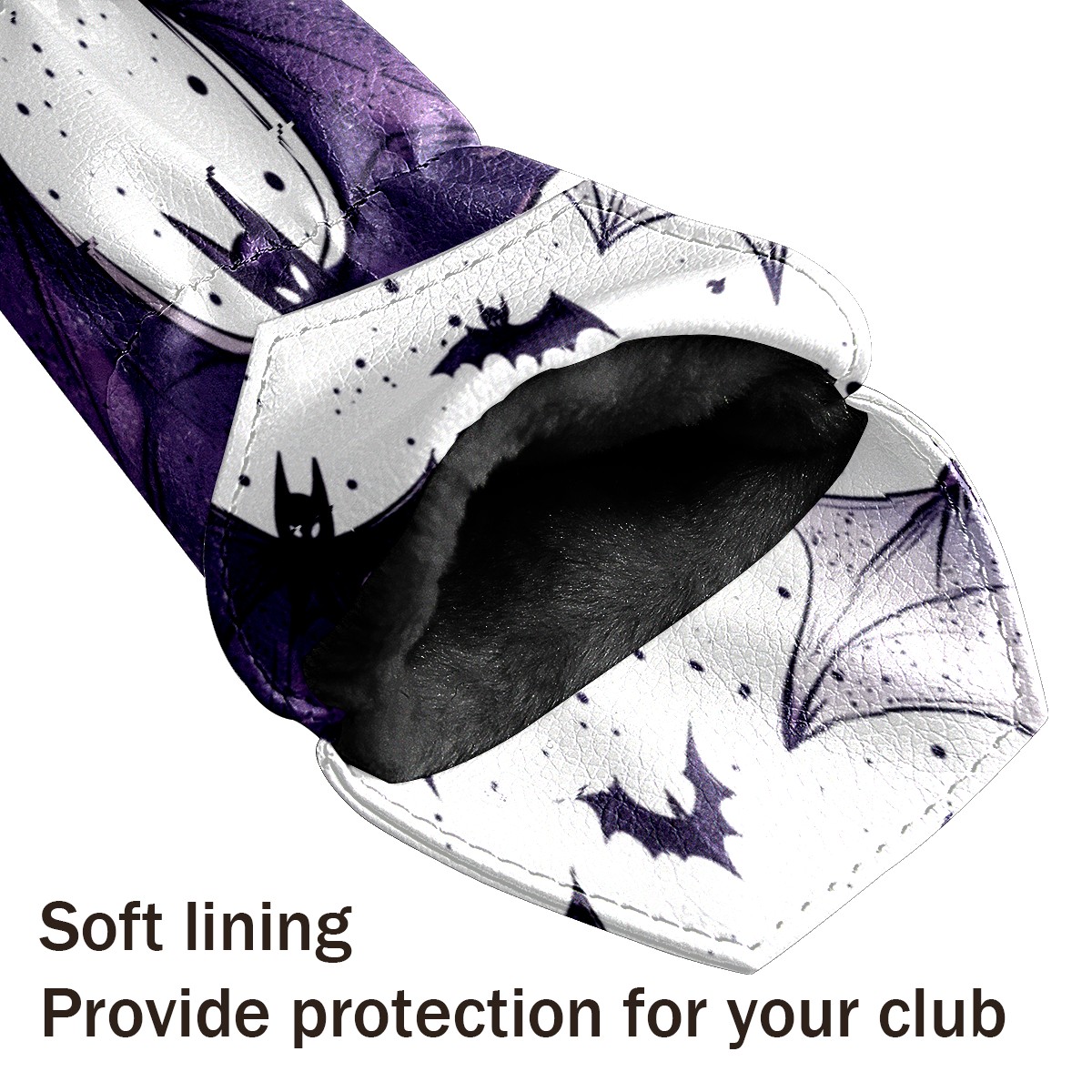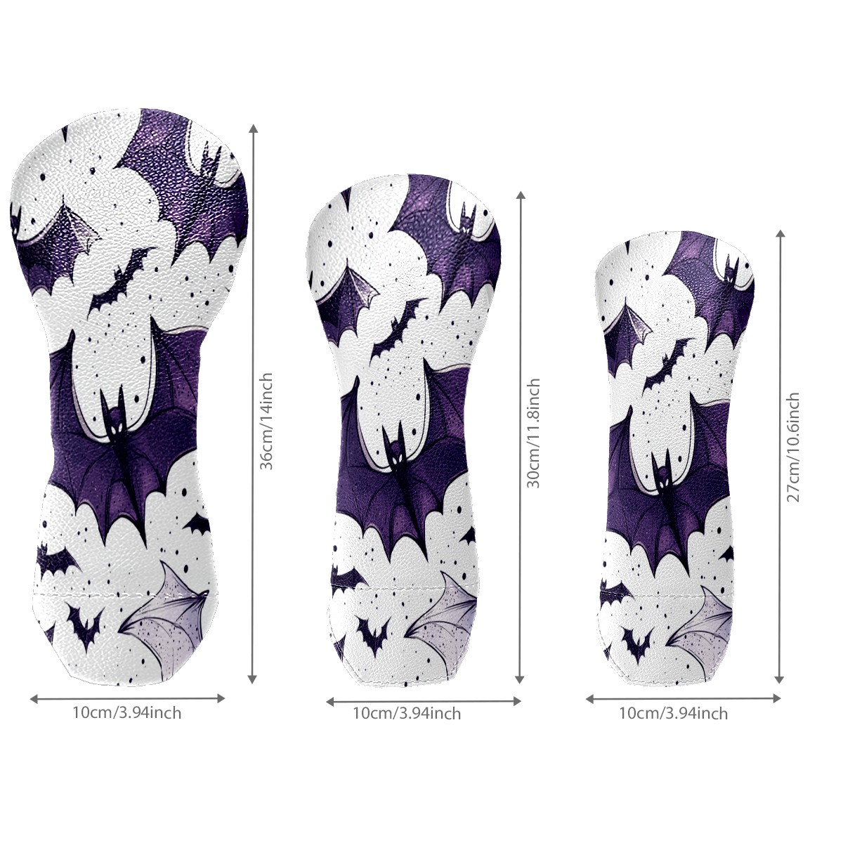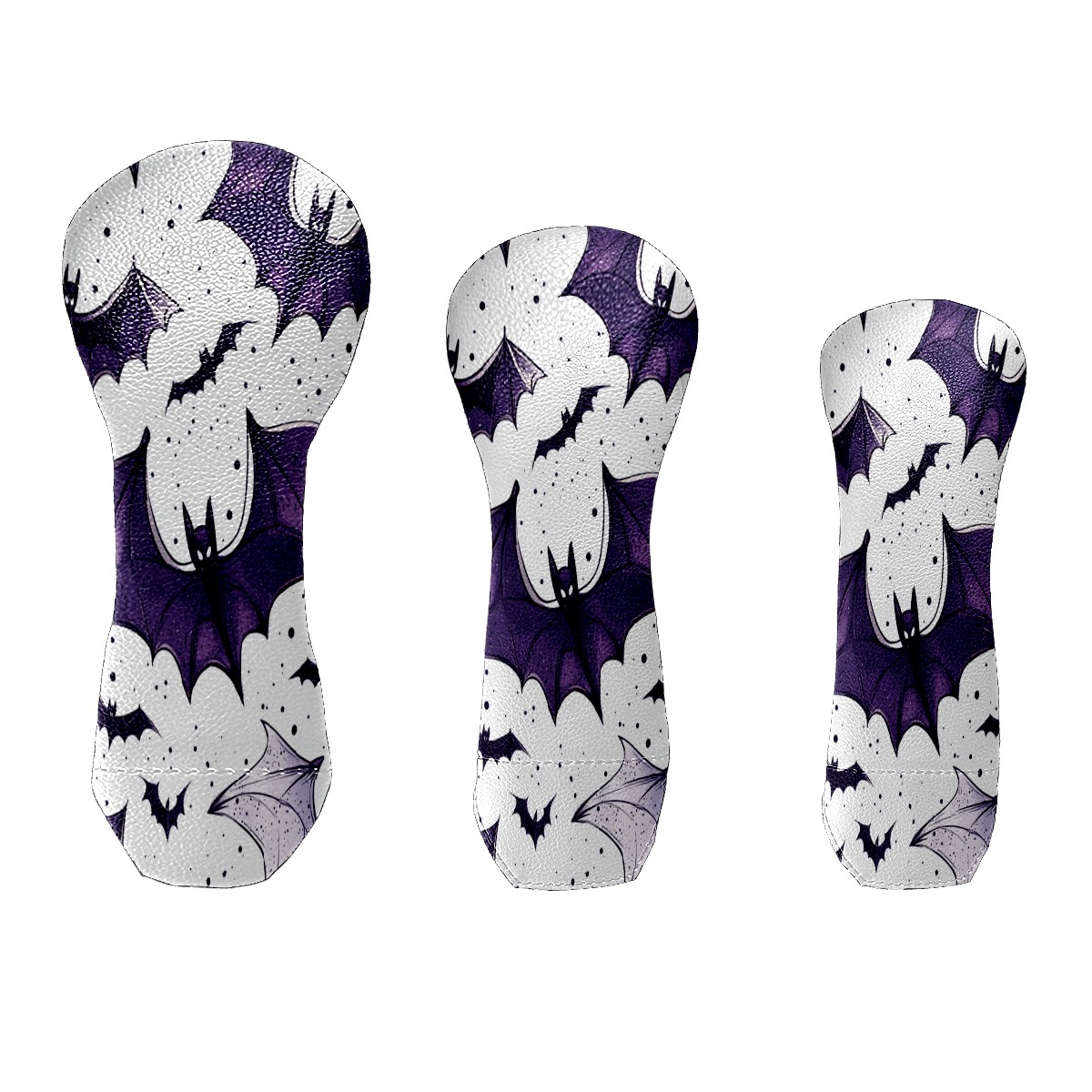 Golf Club Cover, Velvet Lining, High-Quality Leather, Suitable for the First Wood, Fairway Wood and Hybrid Club Head Cover, Suitable for Men and Women Golf Enthusiasts Purple Bat Pattern