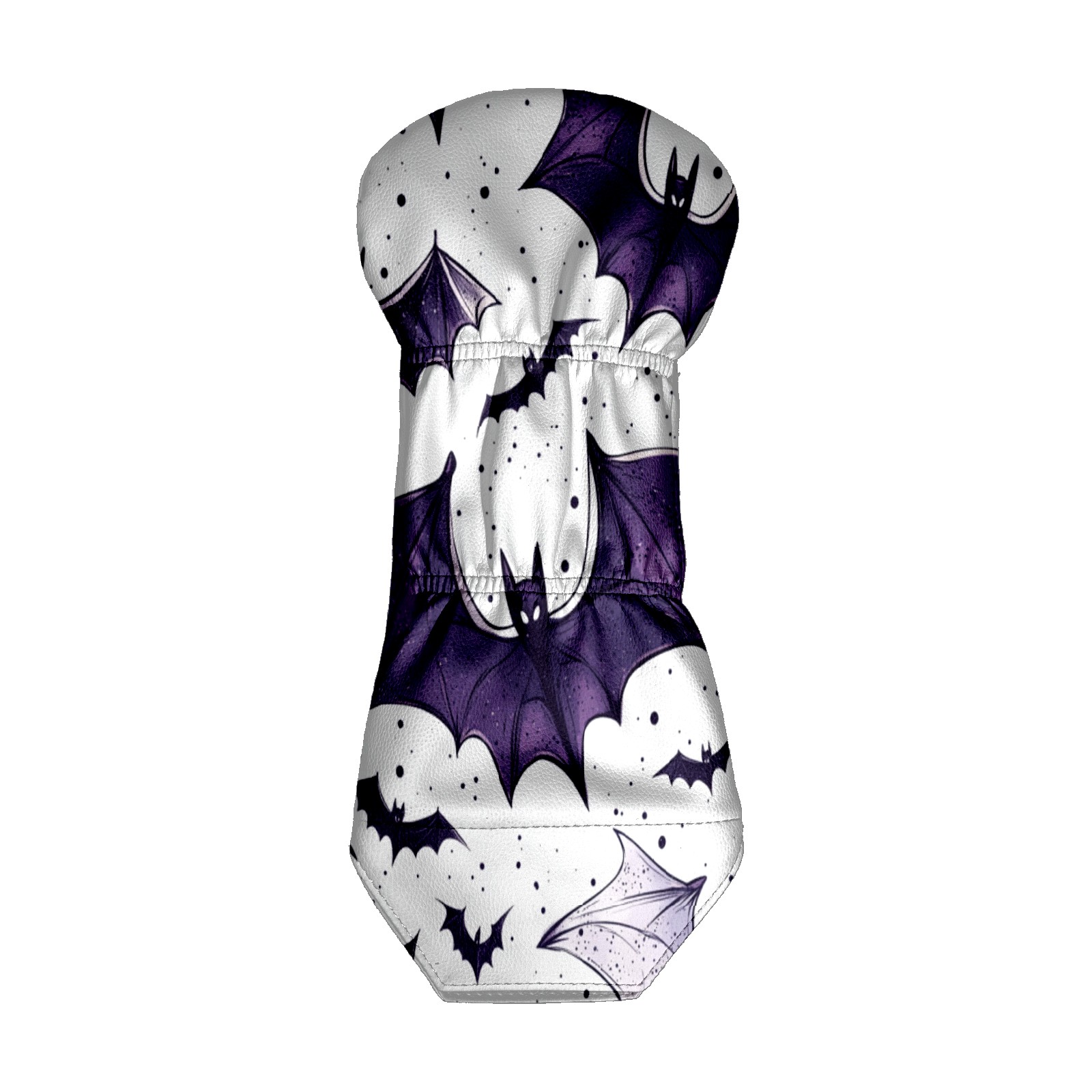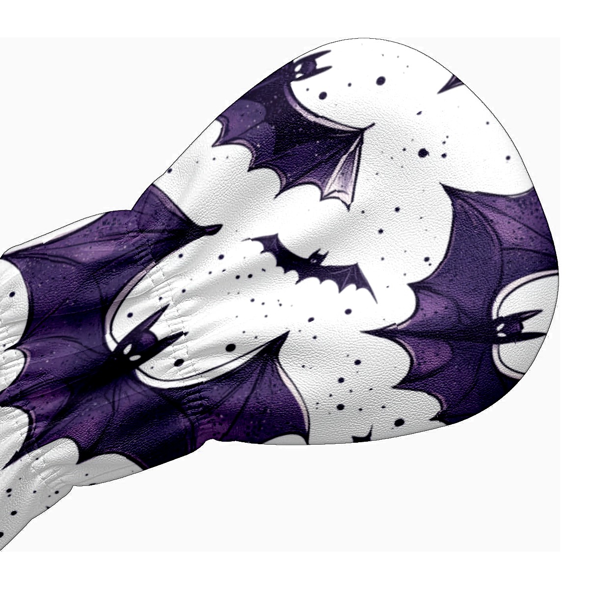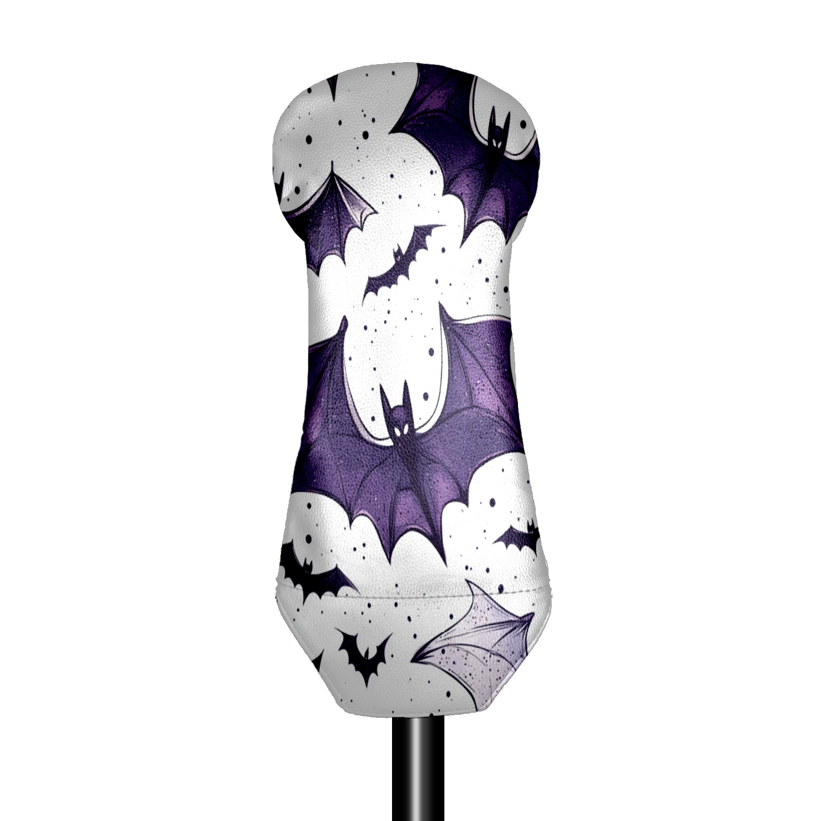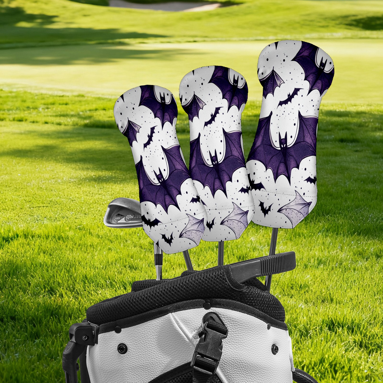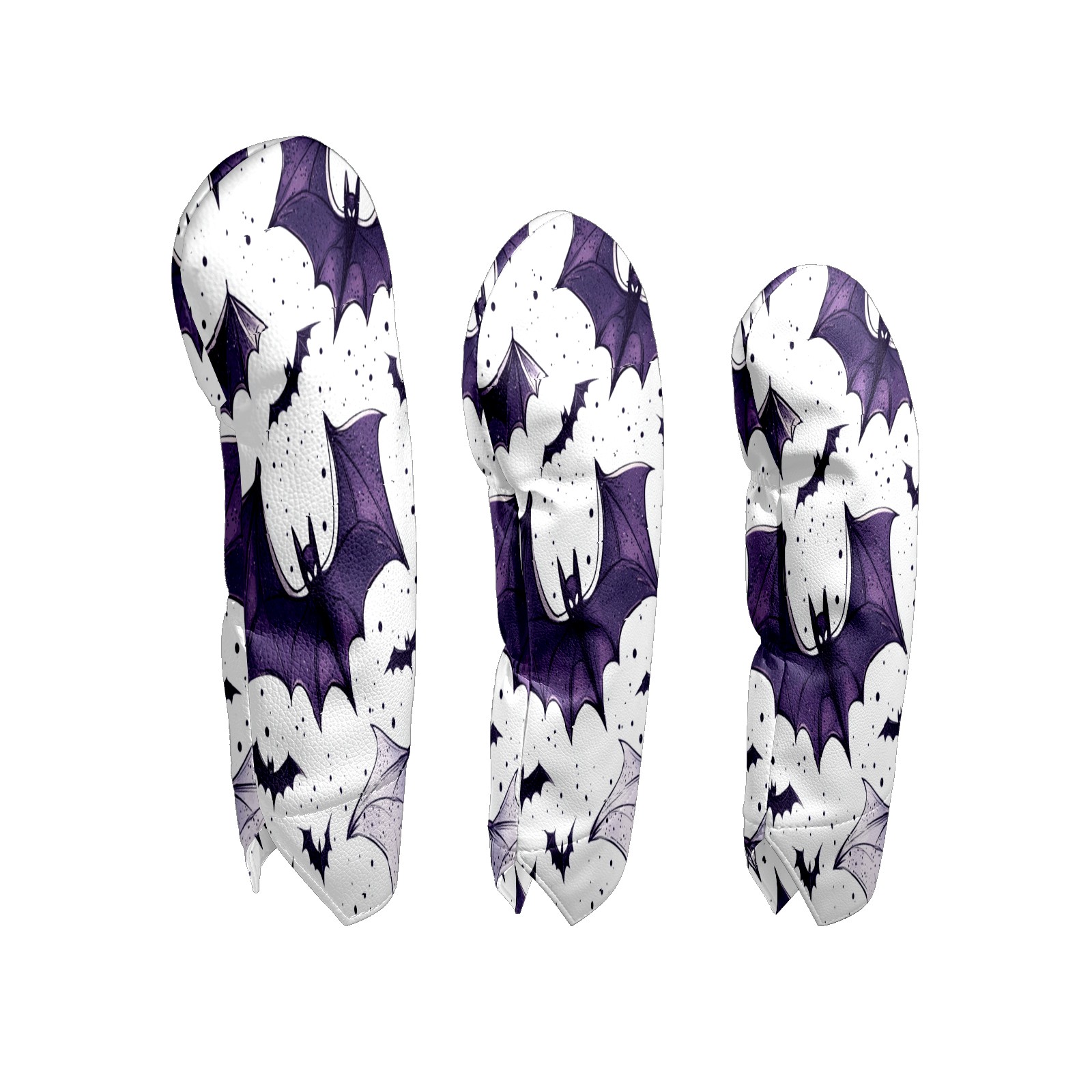Golf Club Cover, Velvet Lining, High-Quality Leather, Suitable for the First Wood, Fairway Wood and Hybrid Club Head Cover, Suitable for Men and Women Golf Enthusiasts Purple Bat Pattern