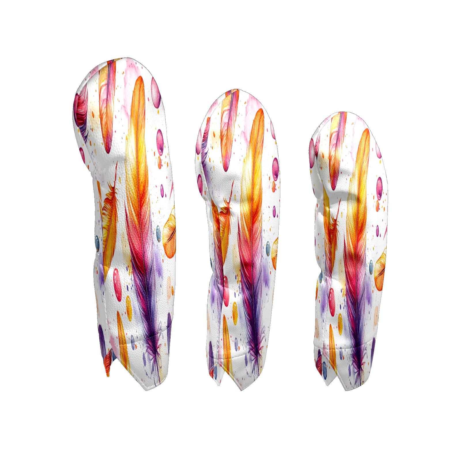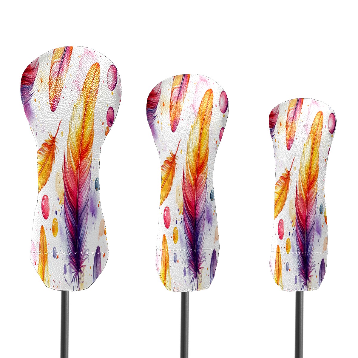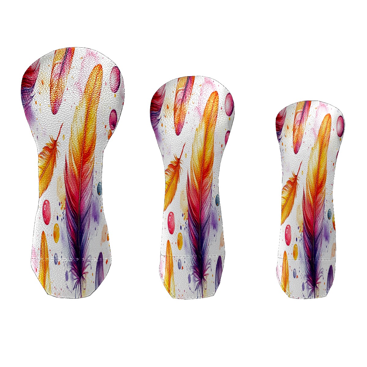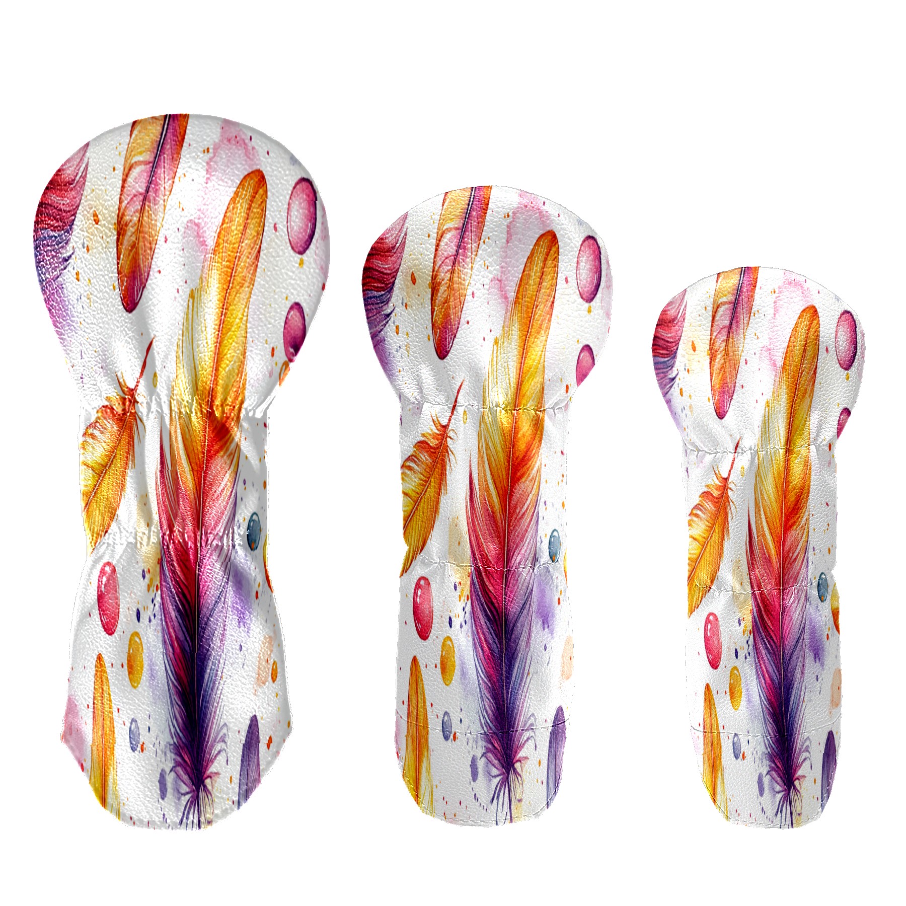 Golf Club Cover, Velvet Lining, High-Quality Leather, Suitable for the First Wood, Fairway Wood and Hybrid Club Head Cover, Suitable for Men and Women Golf Enthusiasts Orange Feathers