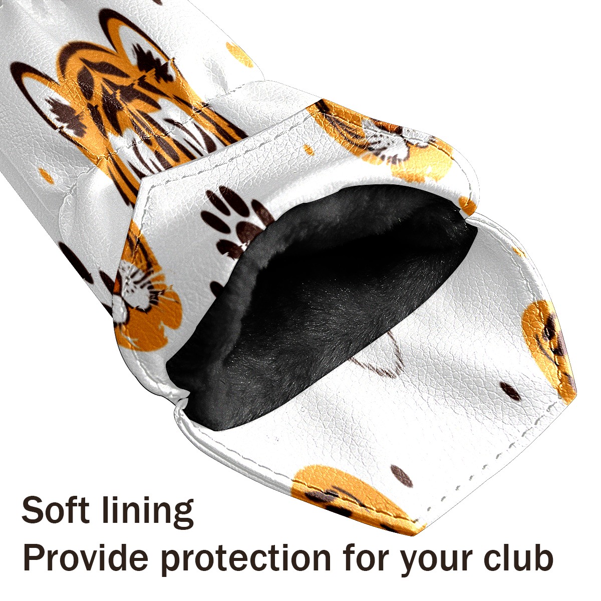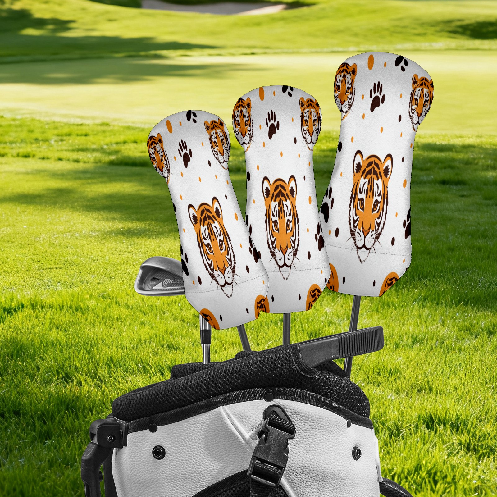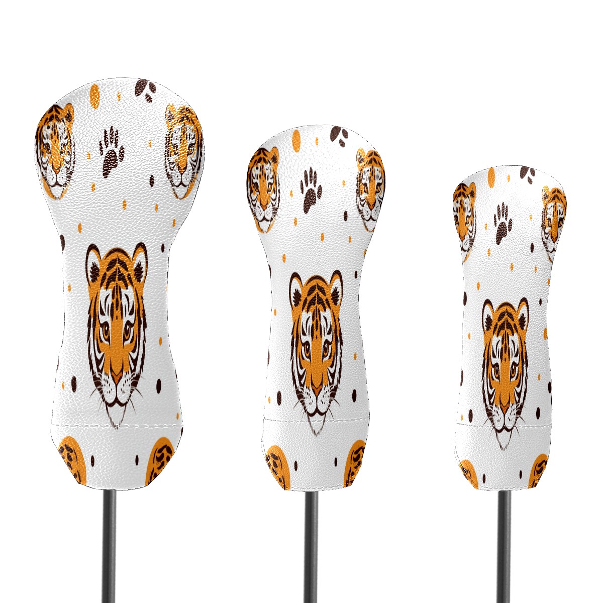 Golf Club Cover, Velvet Lining, High-Quality Leather, Suitable for the First Wood, Fairway Wood and Hybrid Club Head Cover, Suitable for Men and Women Golf Enthusiasts Cartoon Tiger