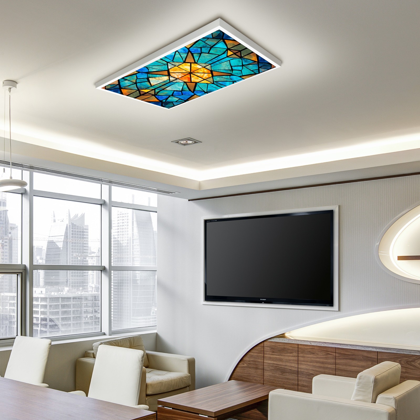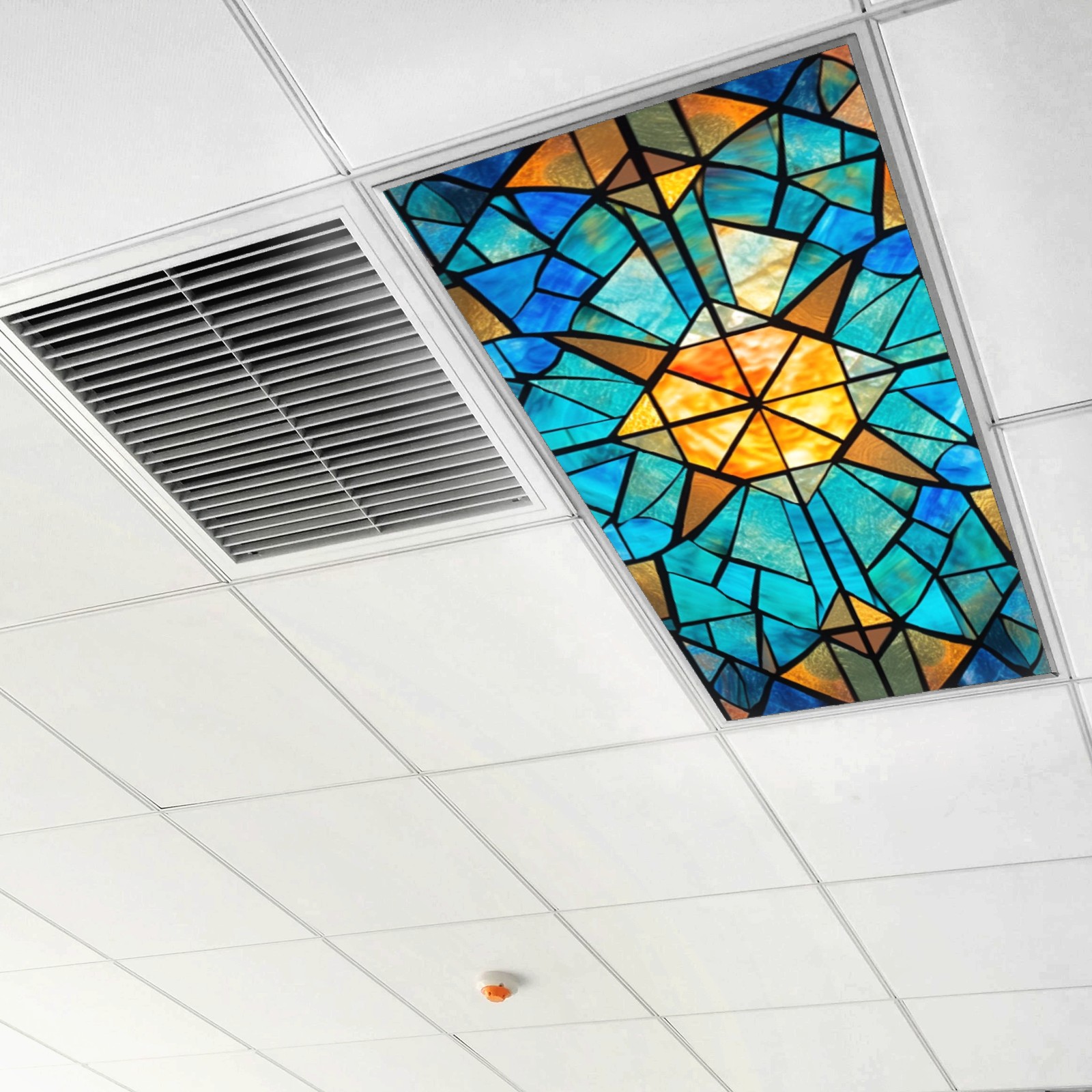 4 Pack Fluorescent Light Covers Green Blue Stained Glass Floral Pattern Light Filters 2ft x 4ft Office Classroom Hospital Home Kindergarten Clinics Decorations Drop Ceiling Light Covering Insert--Reduce Glare Flicker